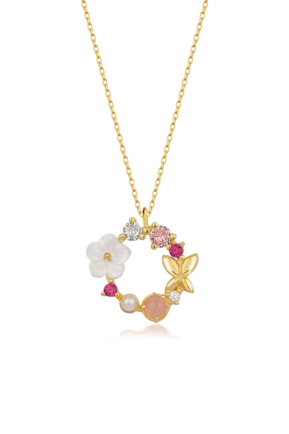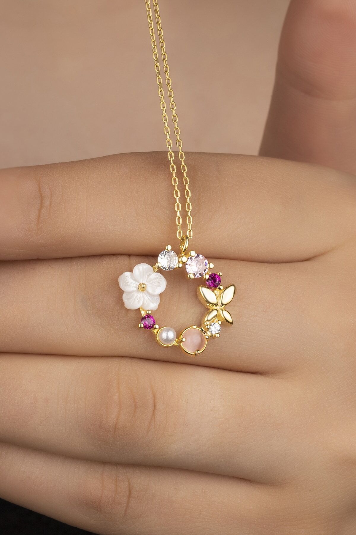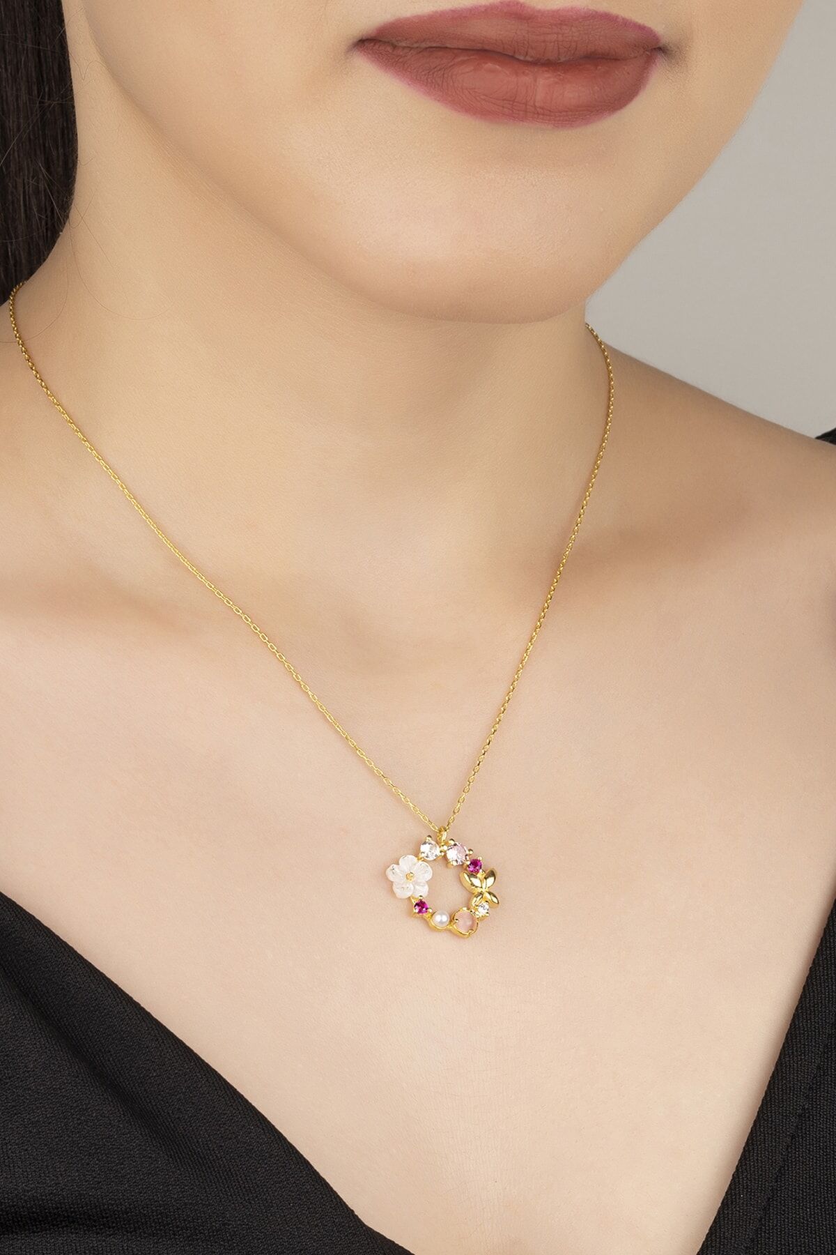 925 Ayar Gümüş Gold Sedefli Güllü Kolye