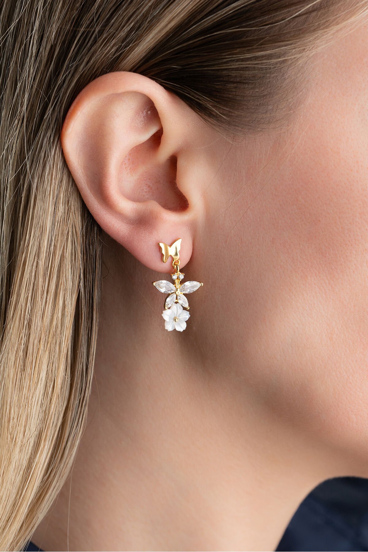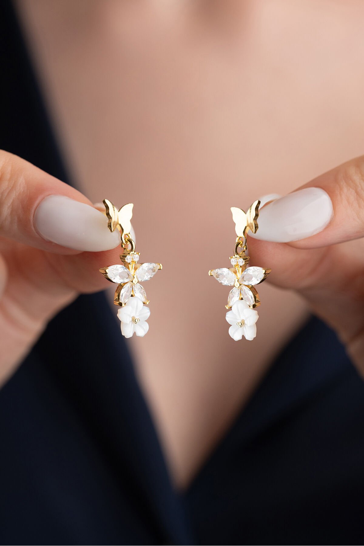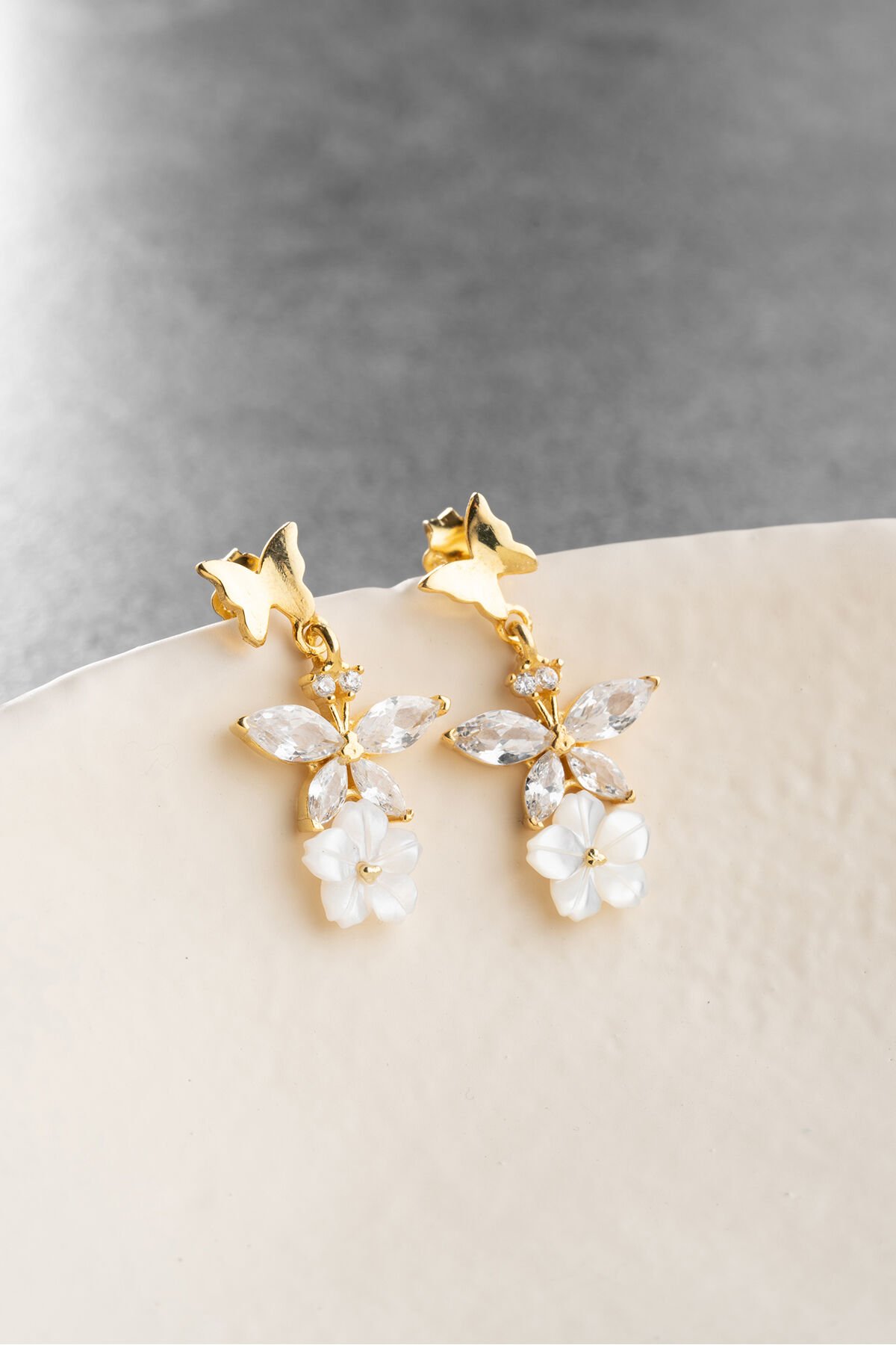 925 Ayar Gümüş Gold Sedefli Taşlı Küpe
