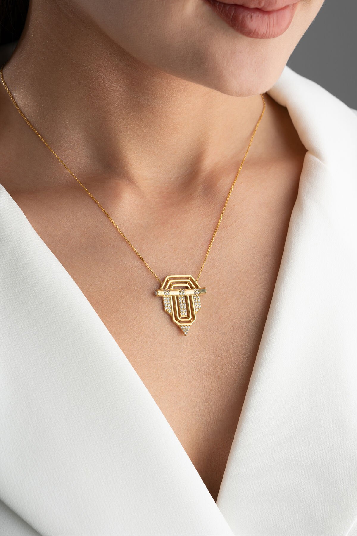 925 ayar gümüş malzeme ile üretilmiş, uzun ömürlü ve kaliteli bir aksesuar deneyimi sunar; Göz alıcı zirkon taşlarla süslenmiş, her türlü özel gününüzde ışıltınızı ön plana çıkarır; Gold serenay kolye, modern ve şık tasarımıyla dikkat çekerken, zarif detaylarıyla göz kamaştırır;