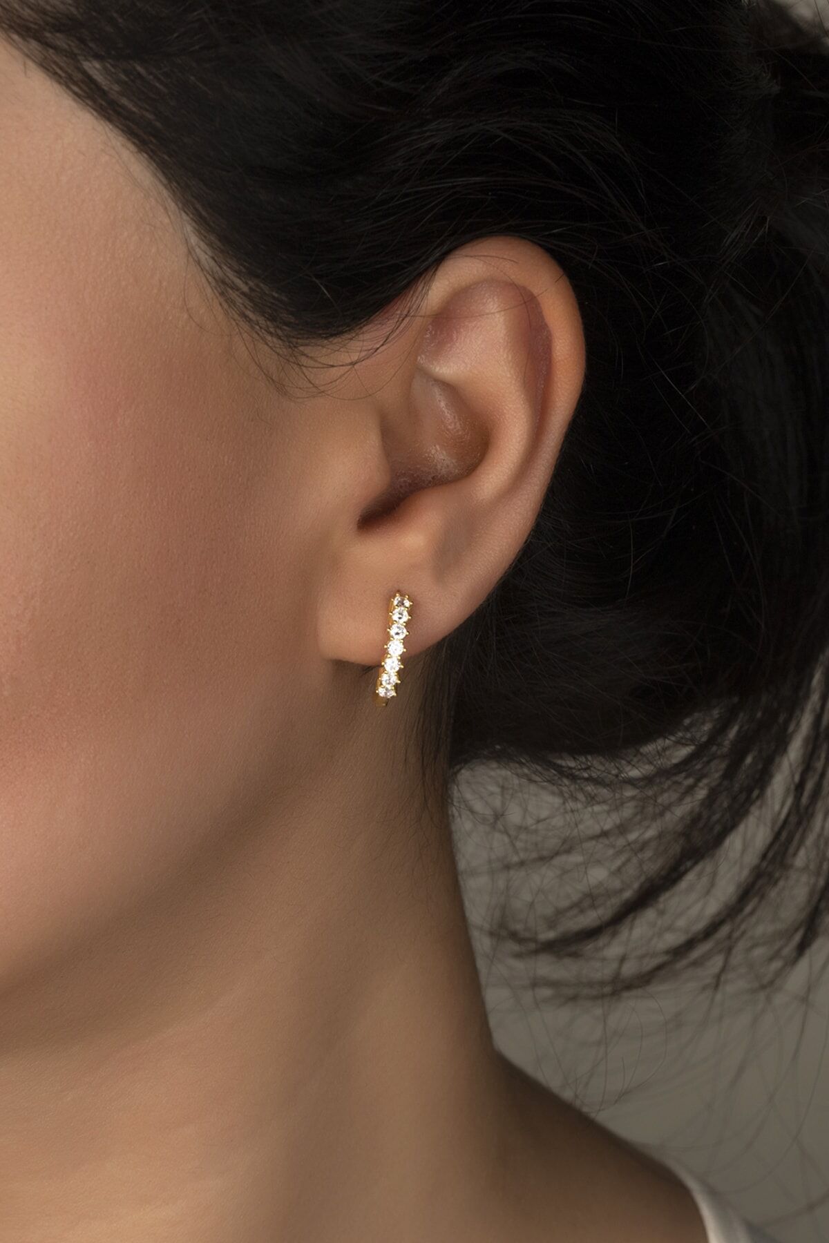 925 Ayar Gümüş Gold Sıra Taşlı Gümüş Küpe