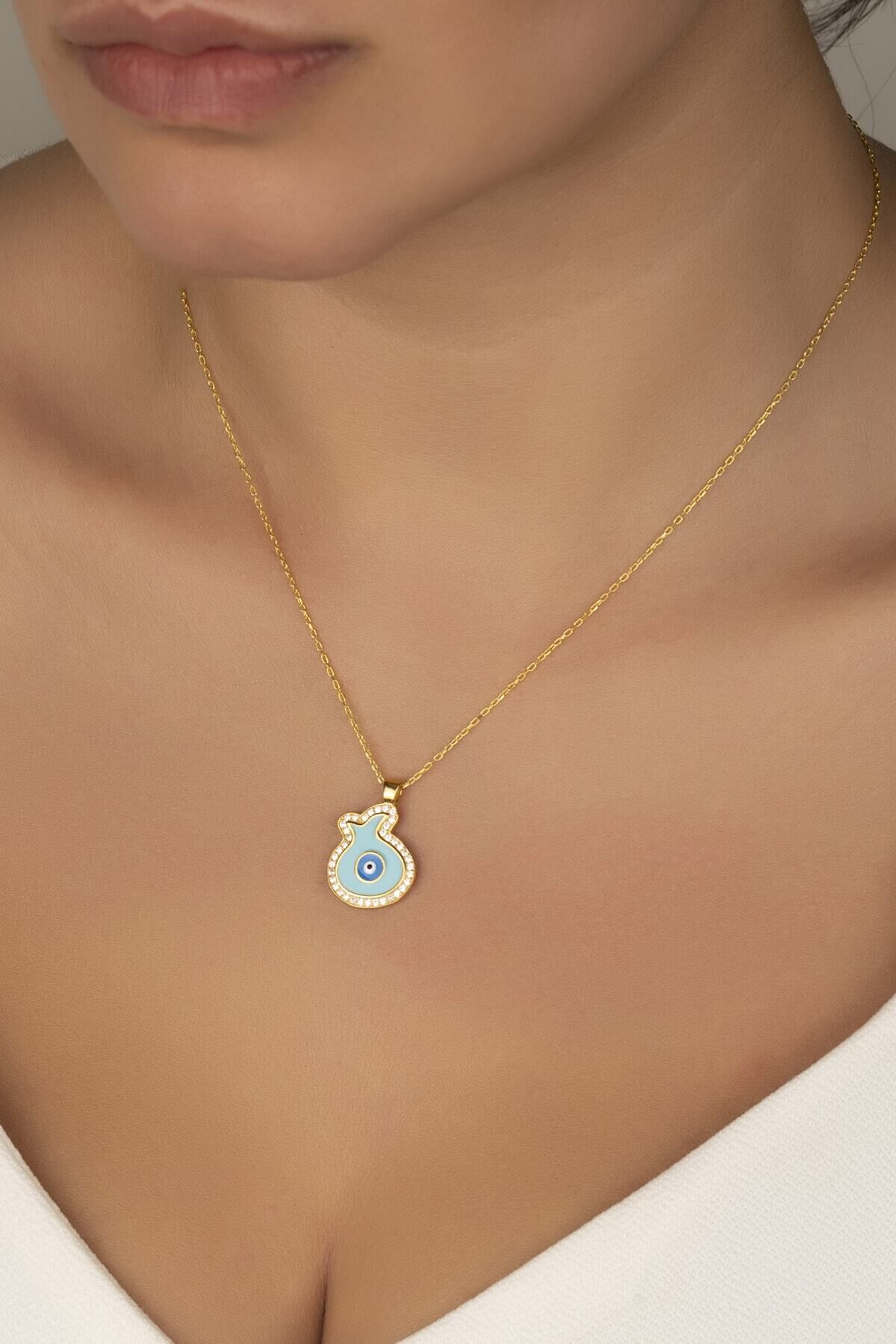 925 Ayar Gümüş Gold Taşlı Mineli Lale Kolye