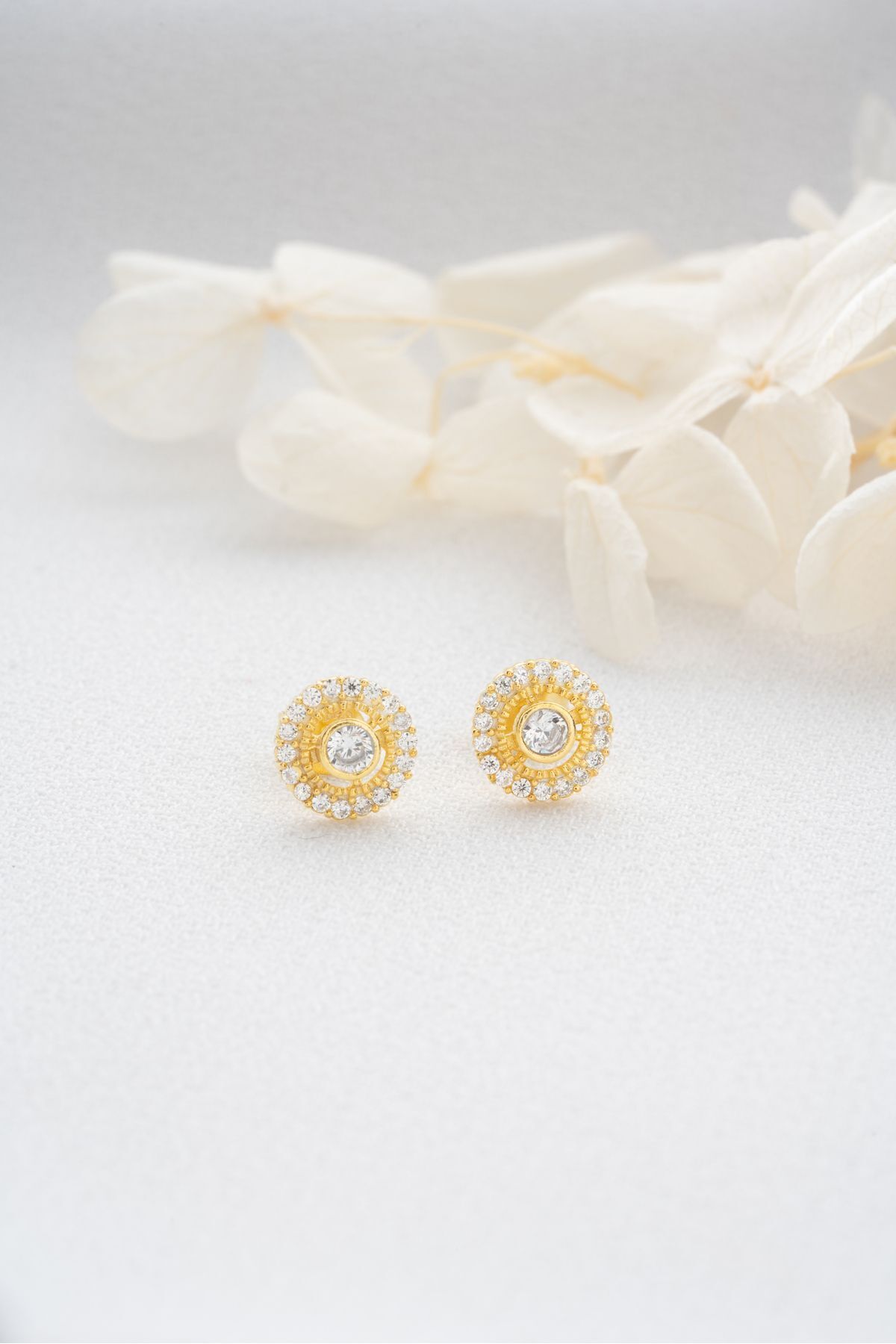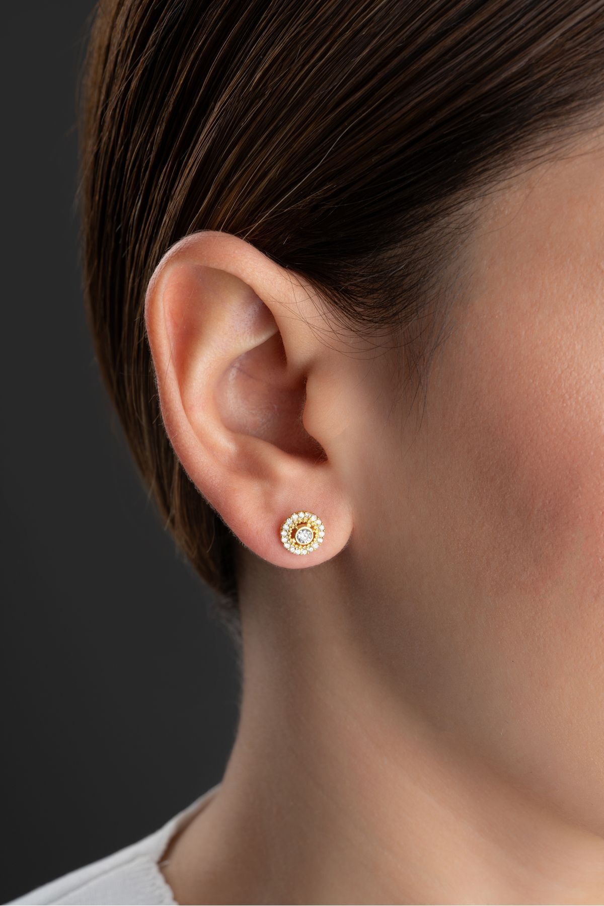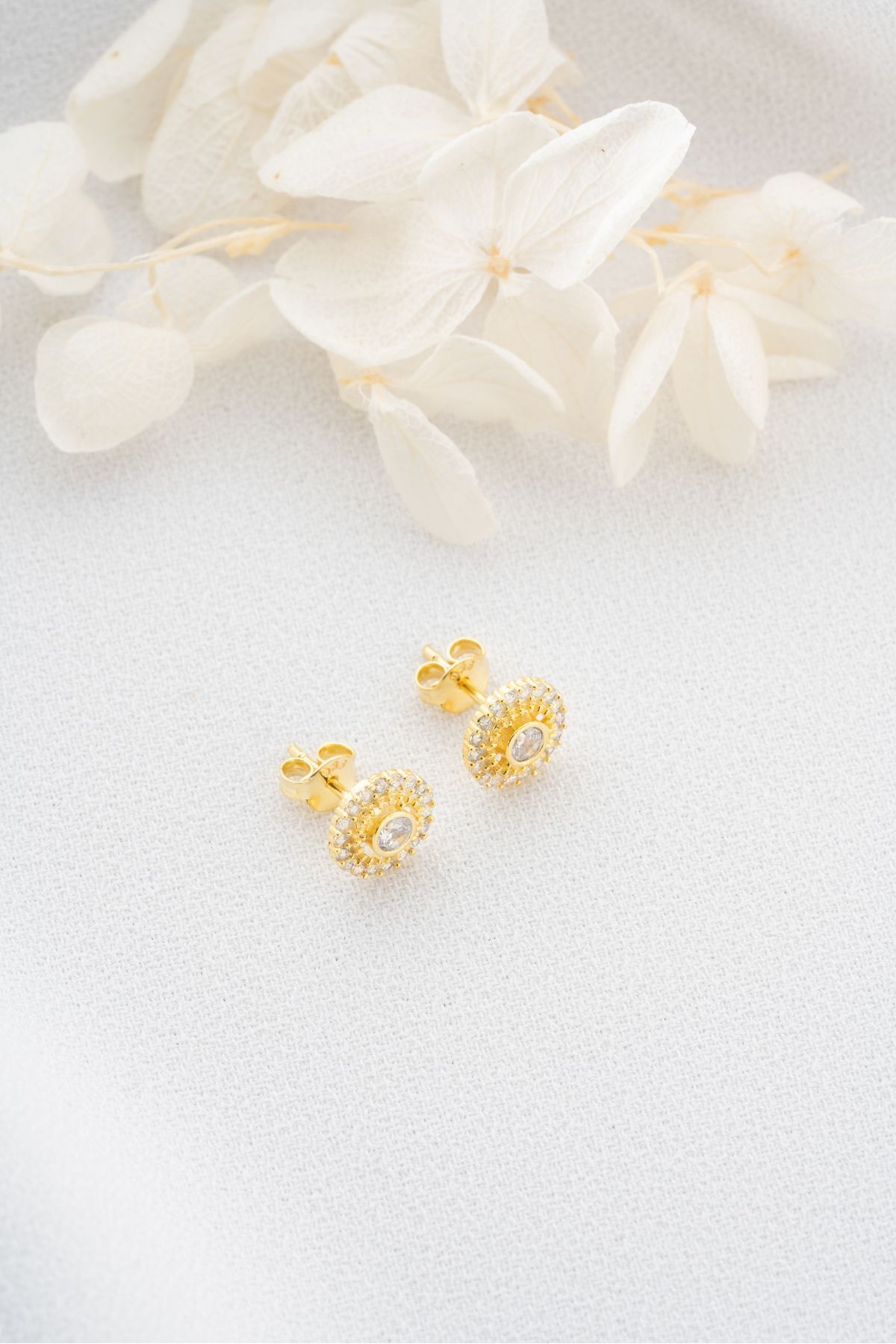 925 Ayar Gümüş Gold Taşlı Minik Çivili Küpe