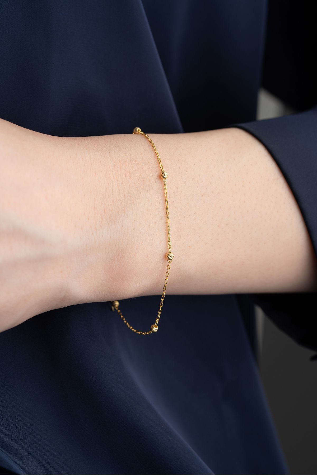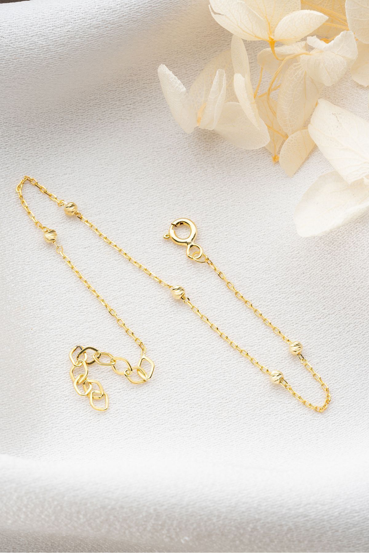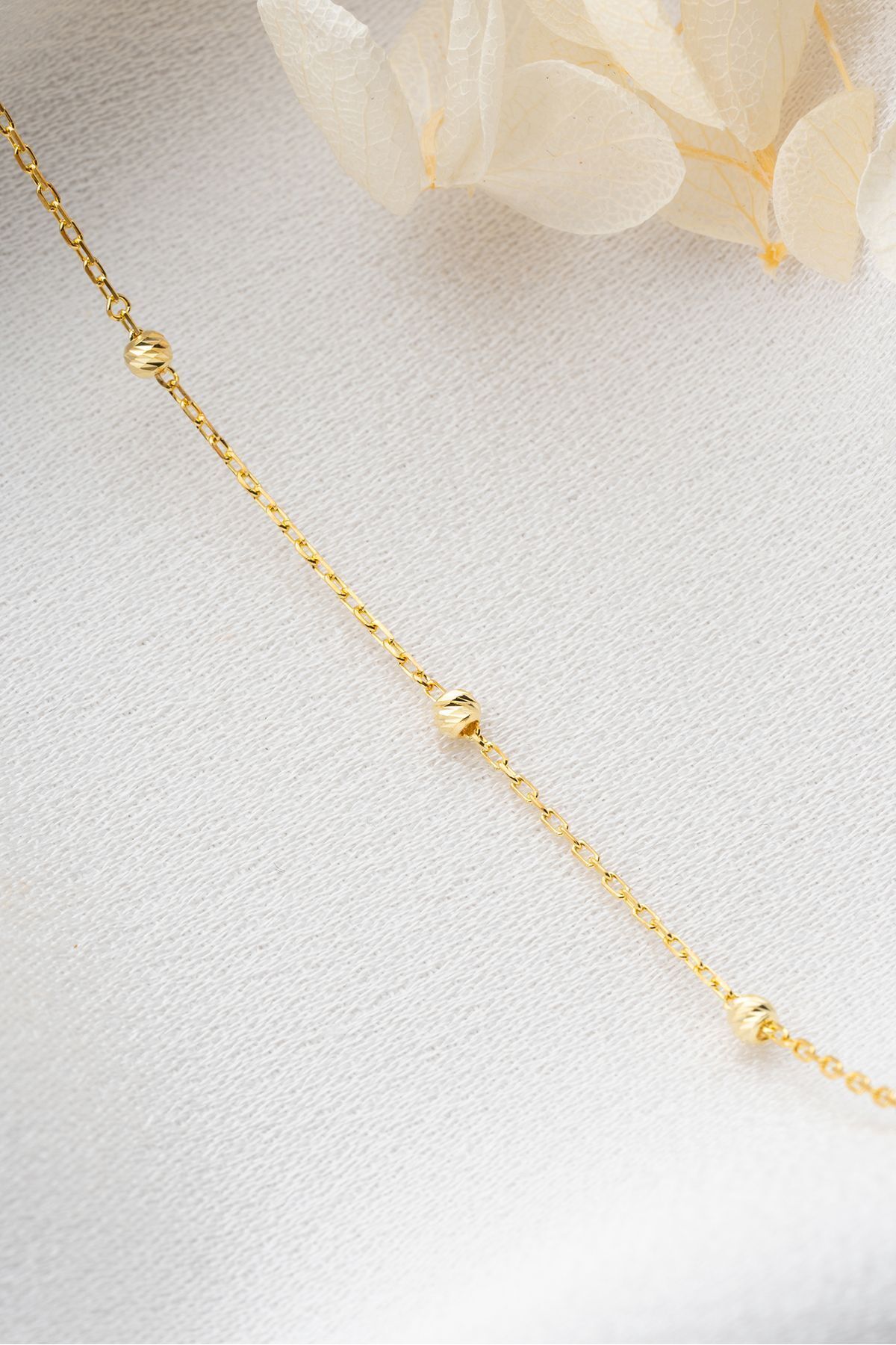 925 Ayar Gümüş Gold Top Detaylı Bileklik