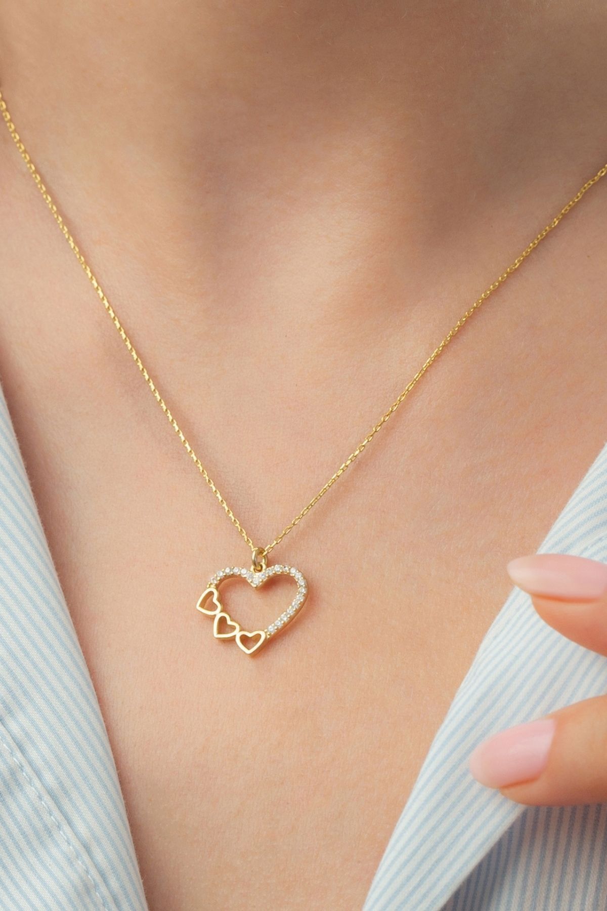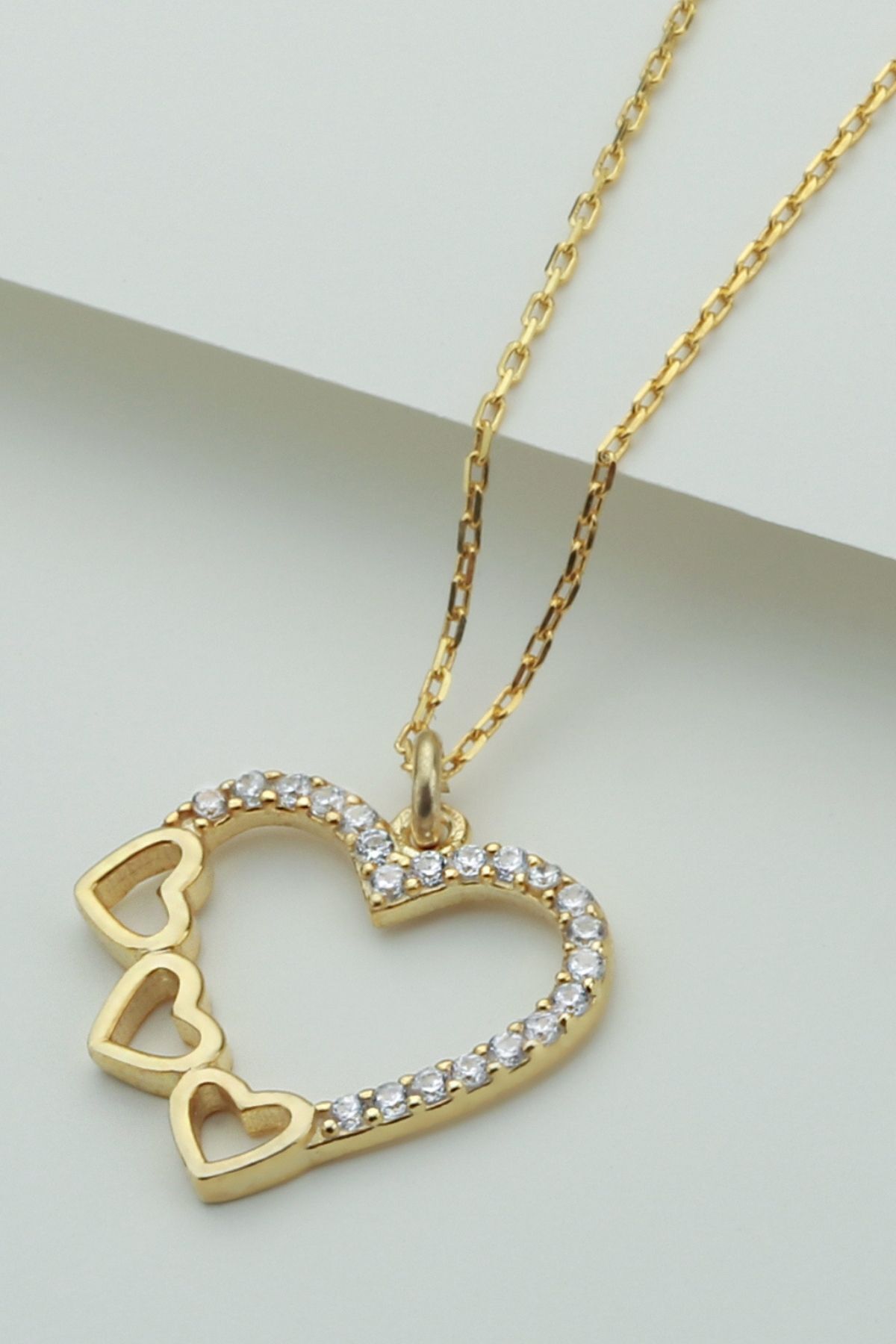 925 Ayar Gümüş Gold Üçlü Kalp Kolye