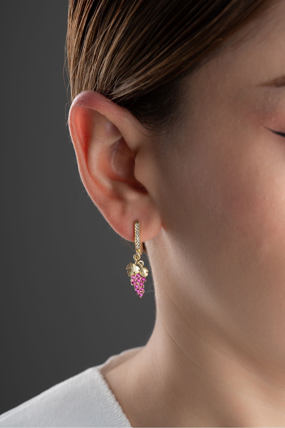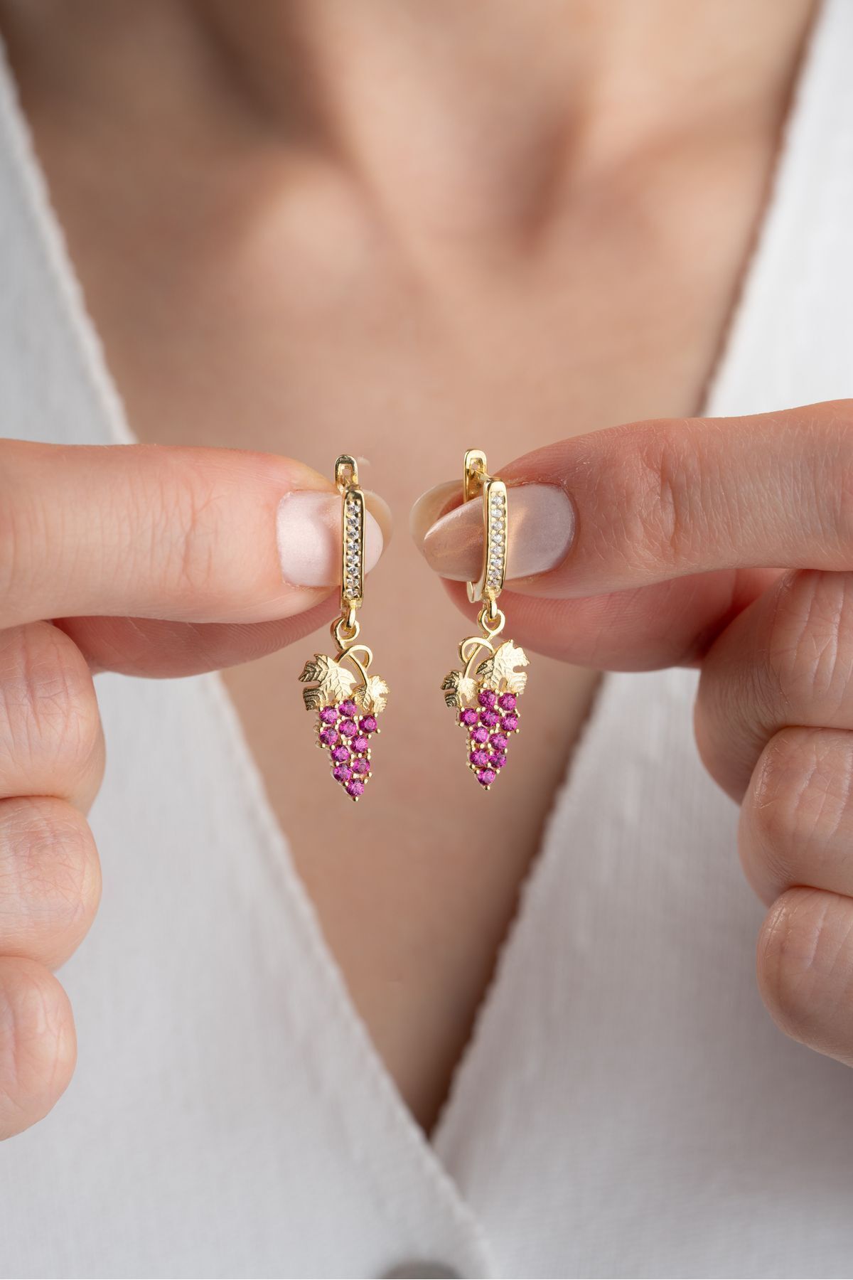 925 Ayar Gümüş Gold Üzüm Küpe