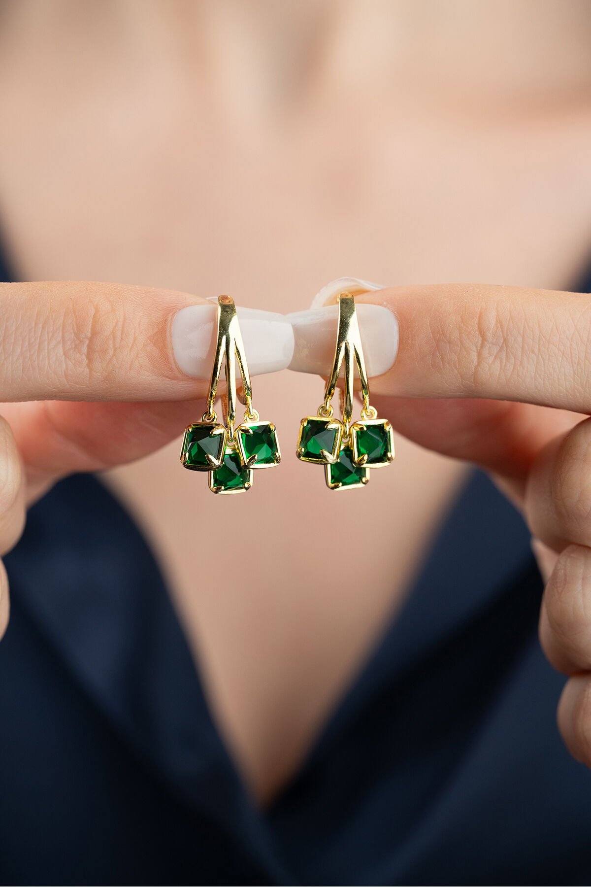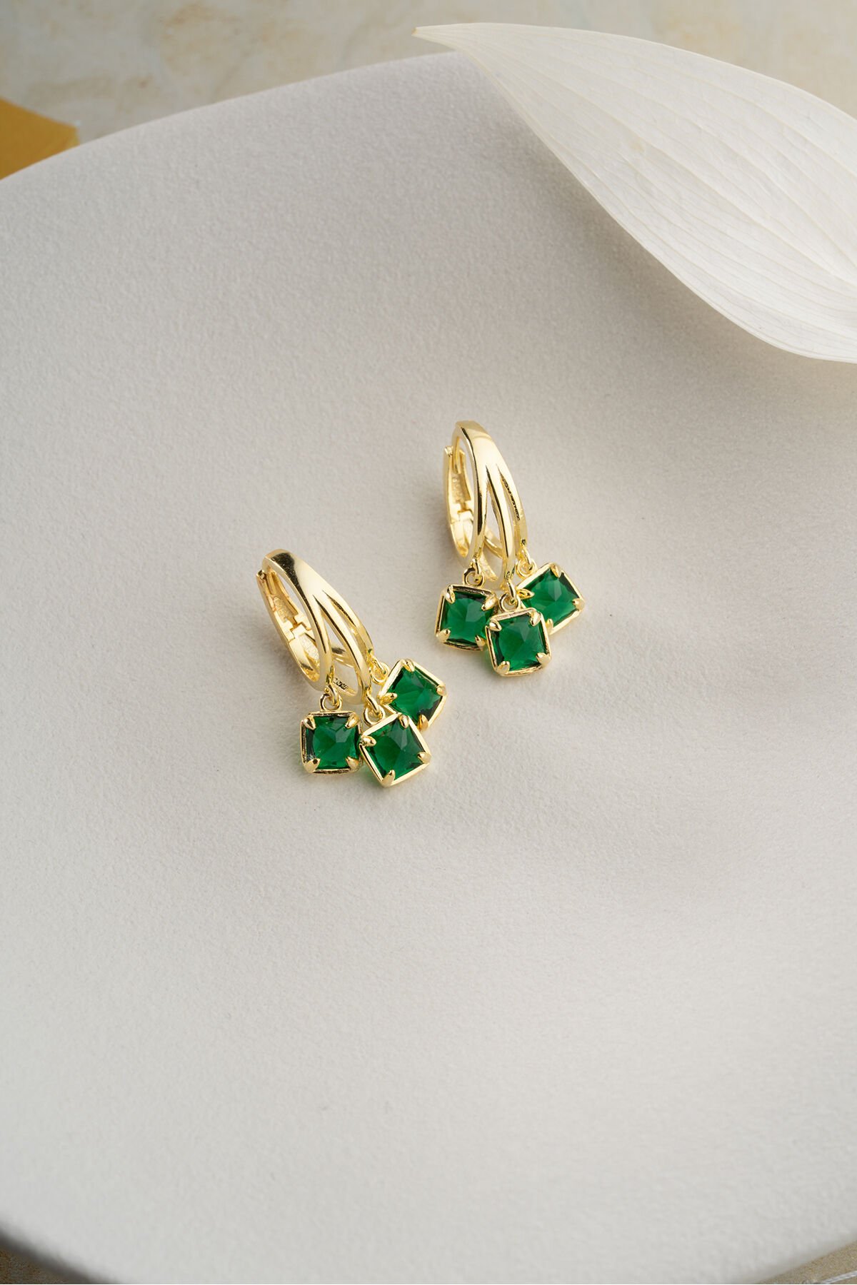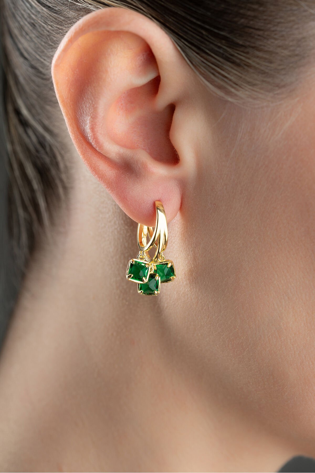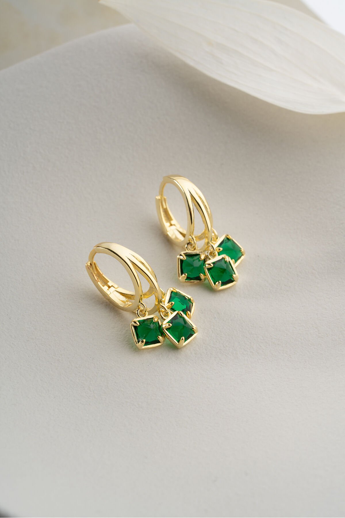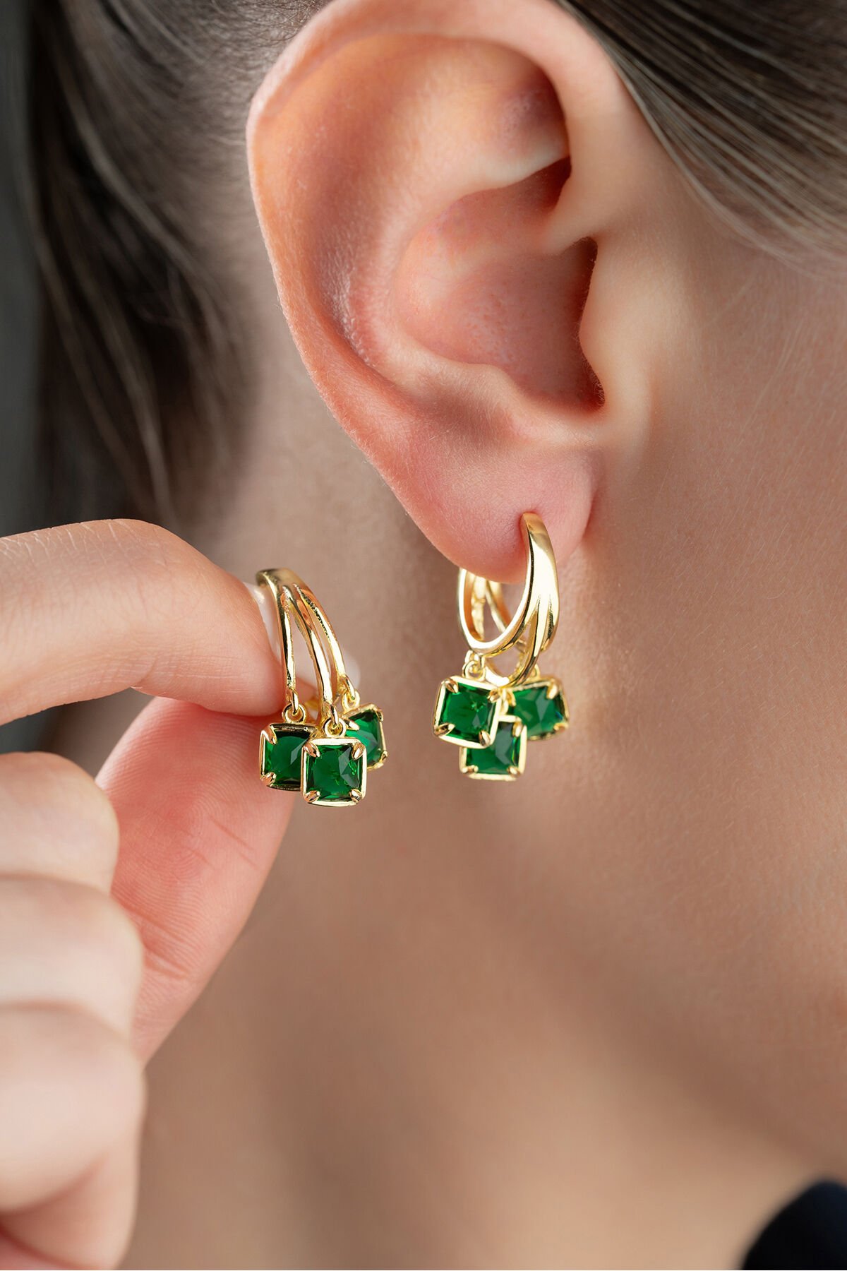 925 Ayar Gümüş Gold Yeşil Taşlı Küpe