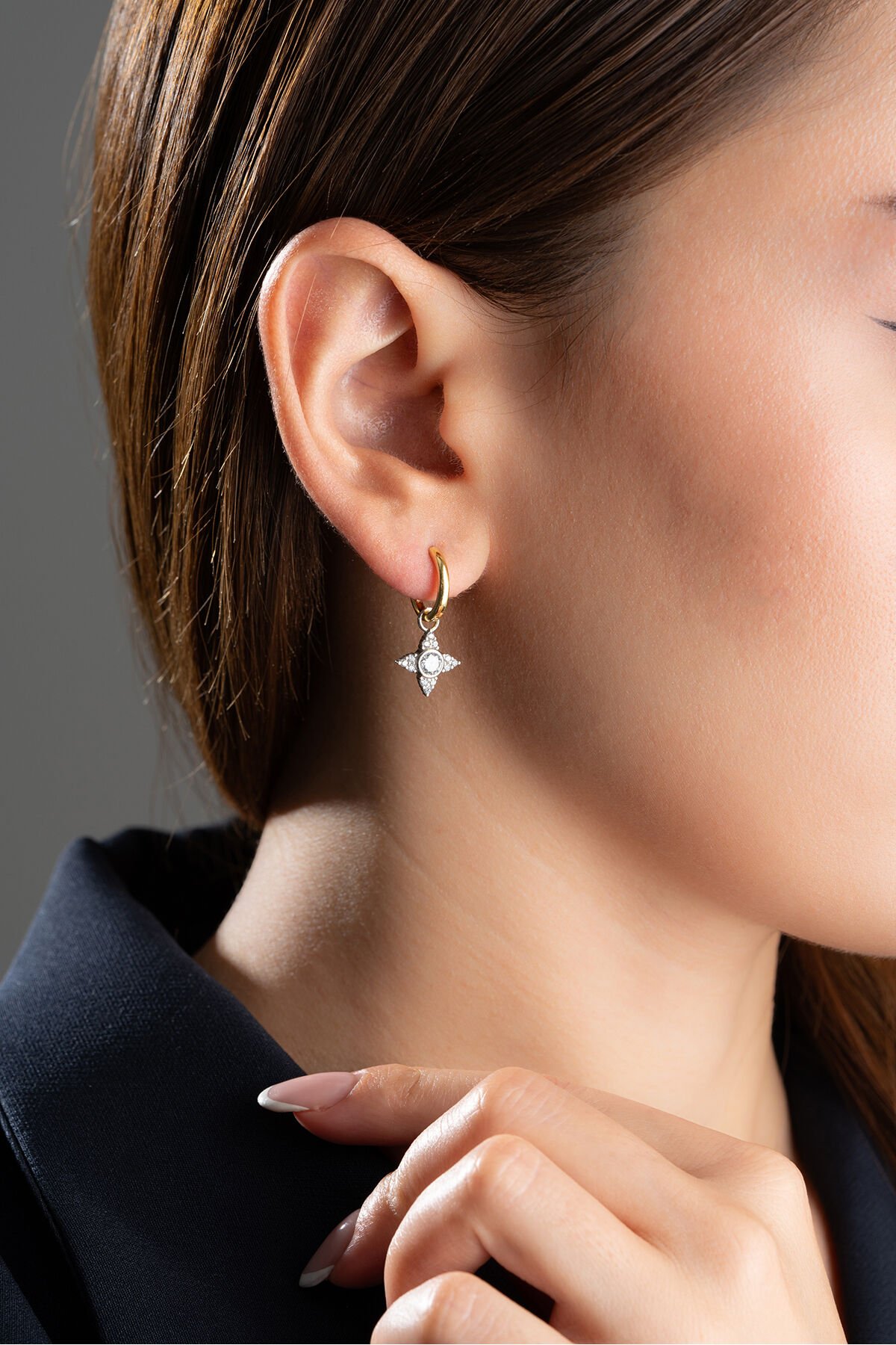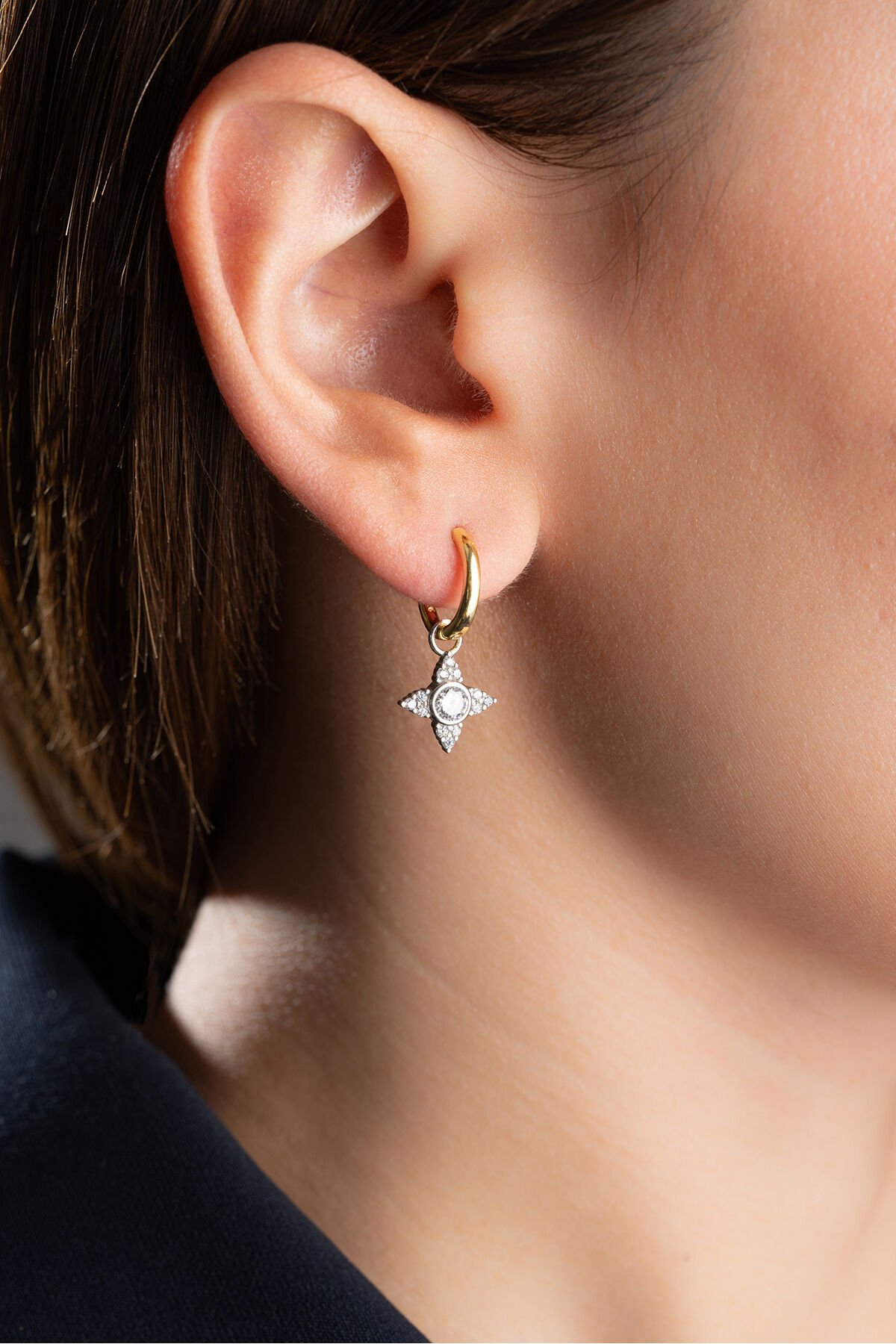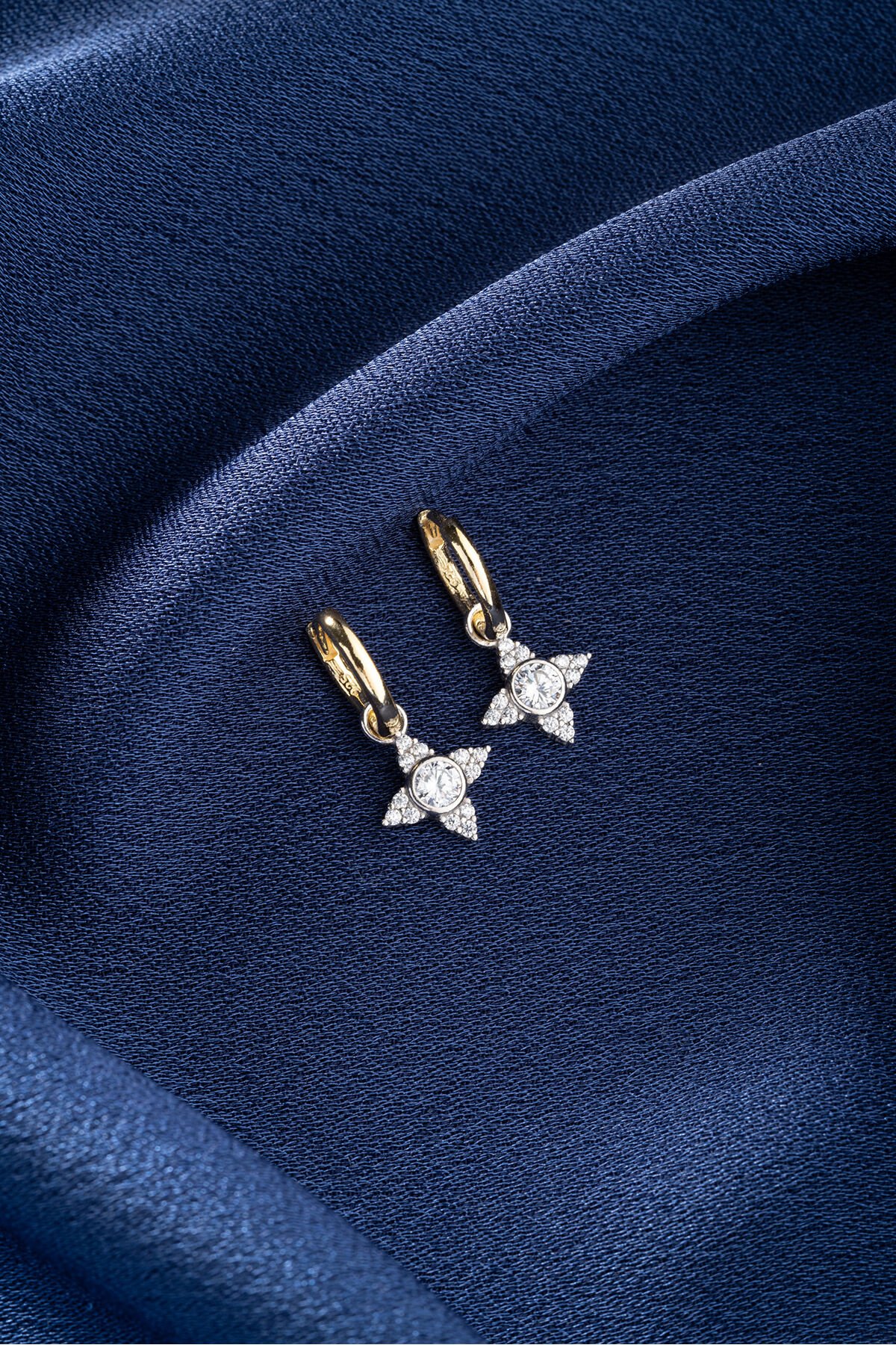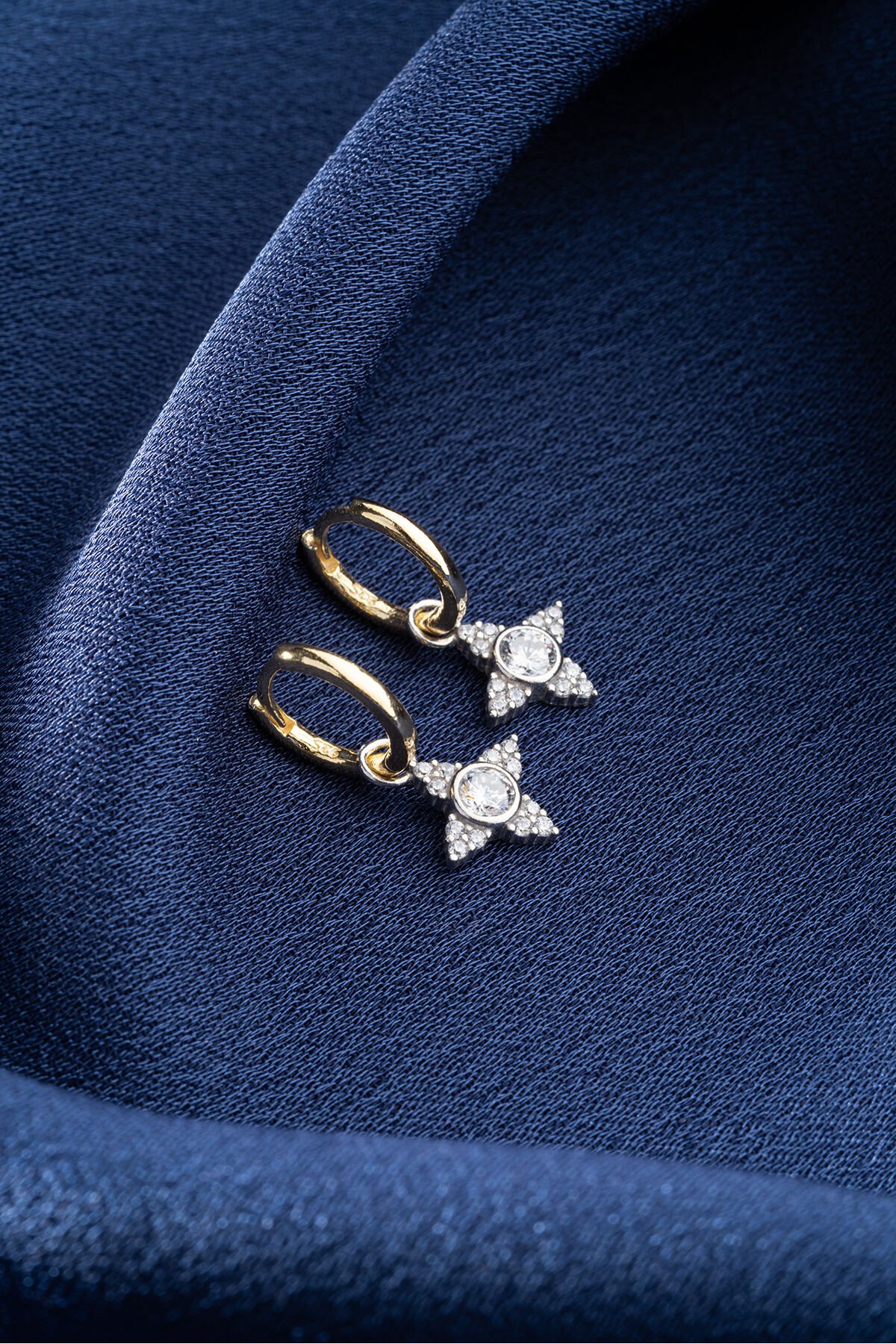 925 Ayar Gümüş Gold Yıldız Küpe