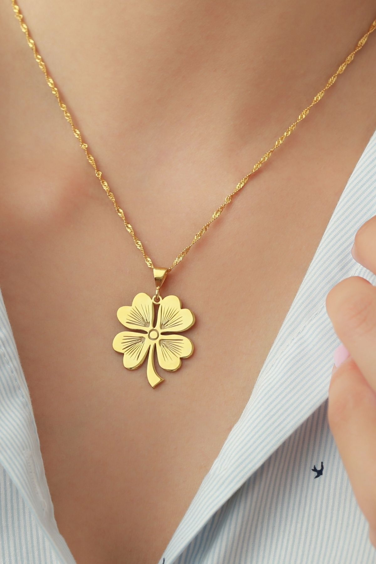 925 Ayar Gümüş Gold Yonca Kolye