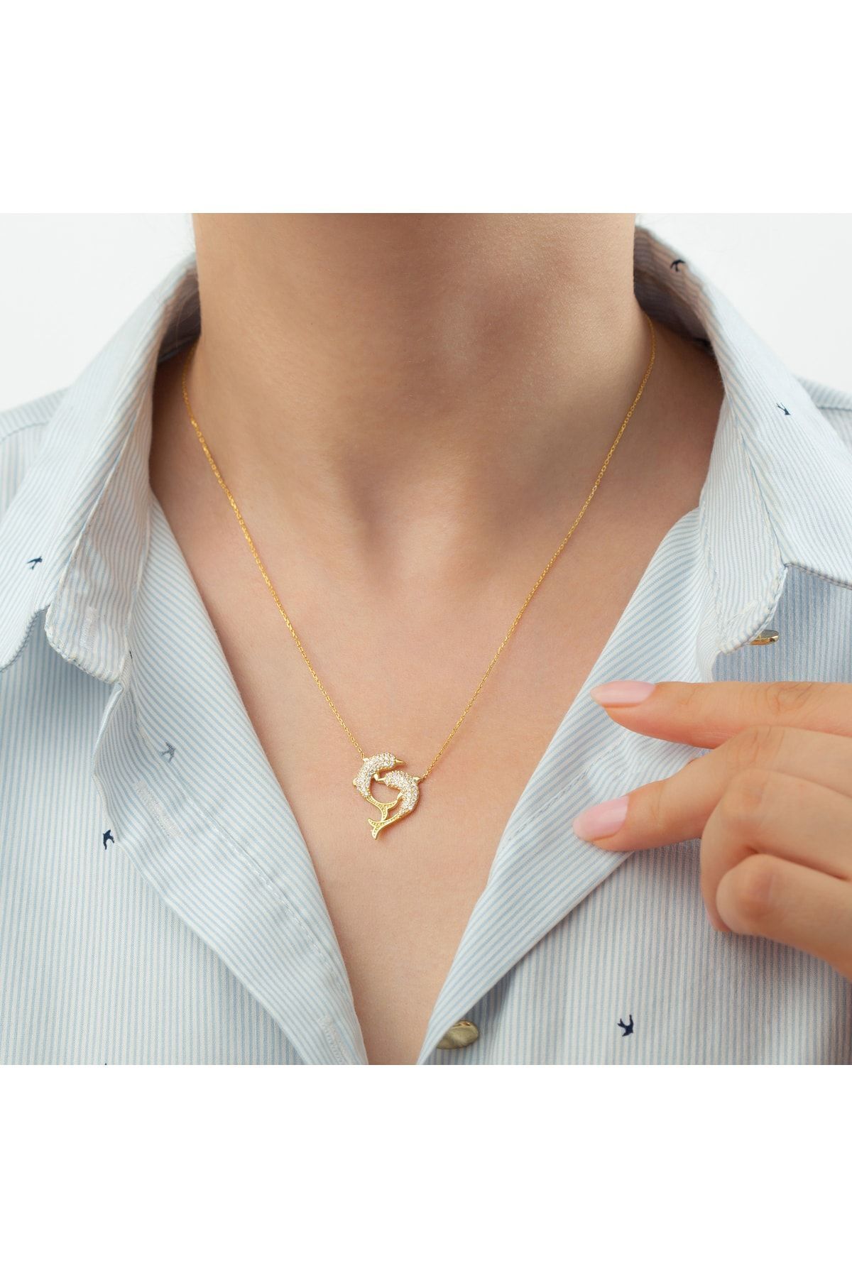 925 Ayar Gümüş Gold Yunus Kolye