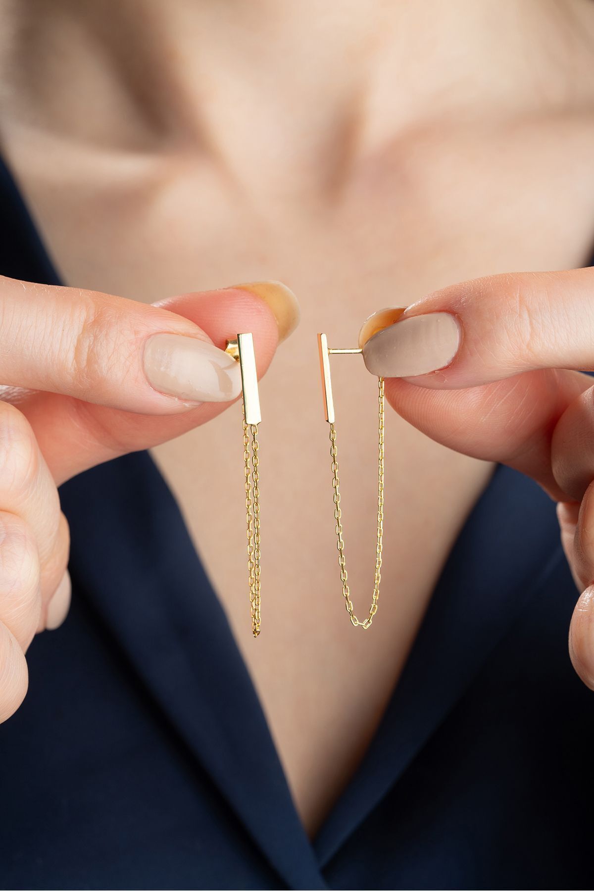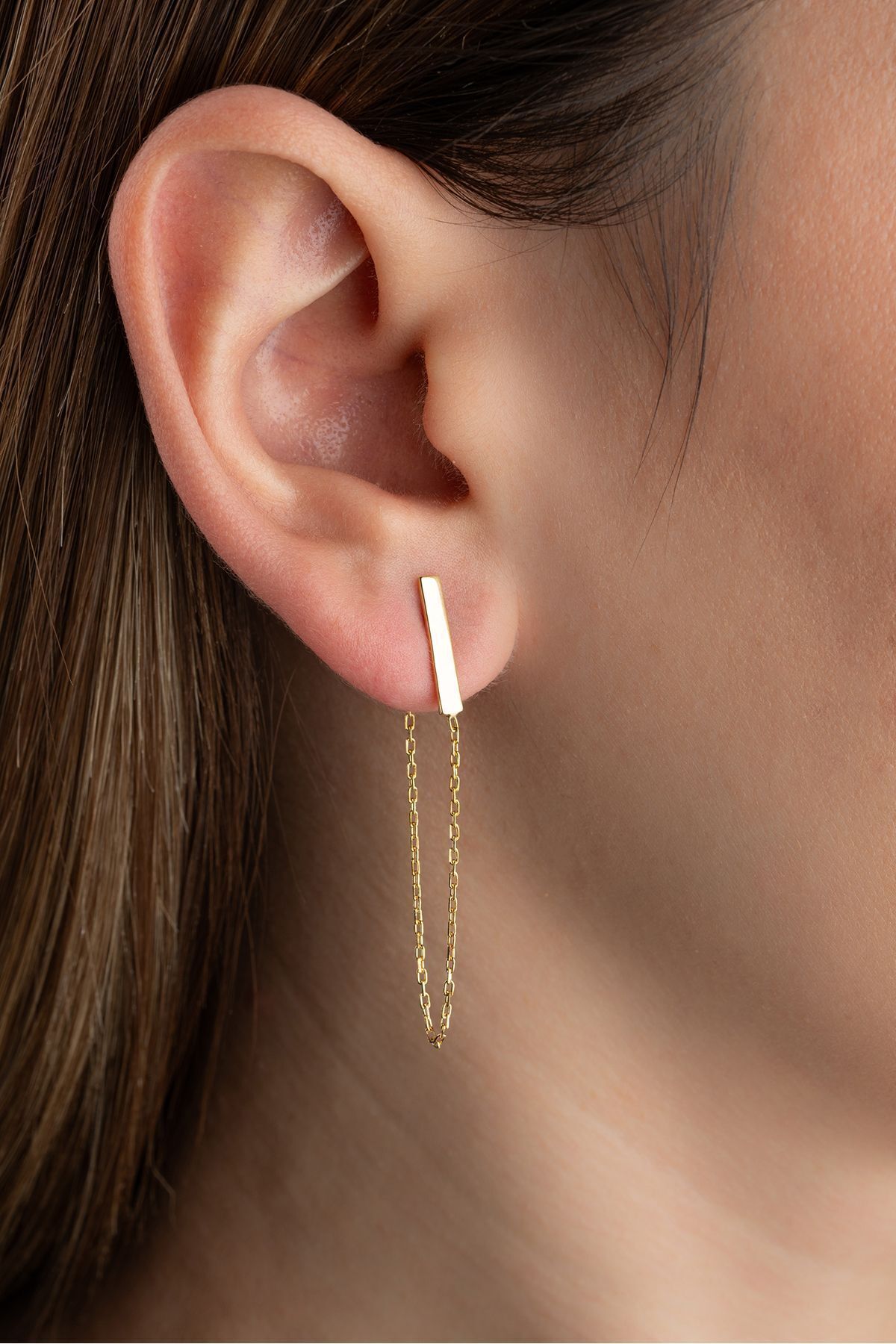 925 Ayar Gümüş Gold Zincir Küpe