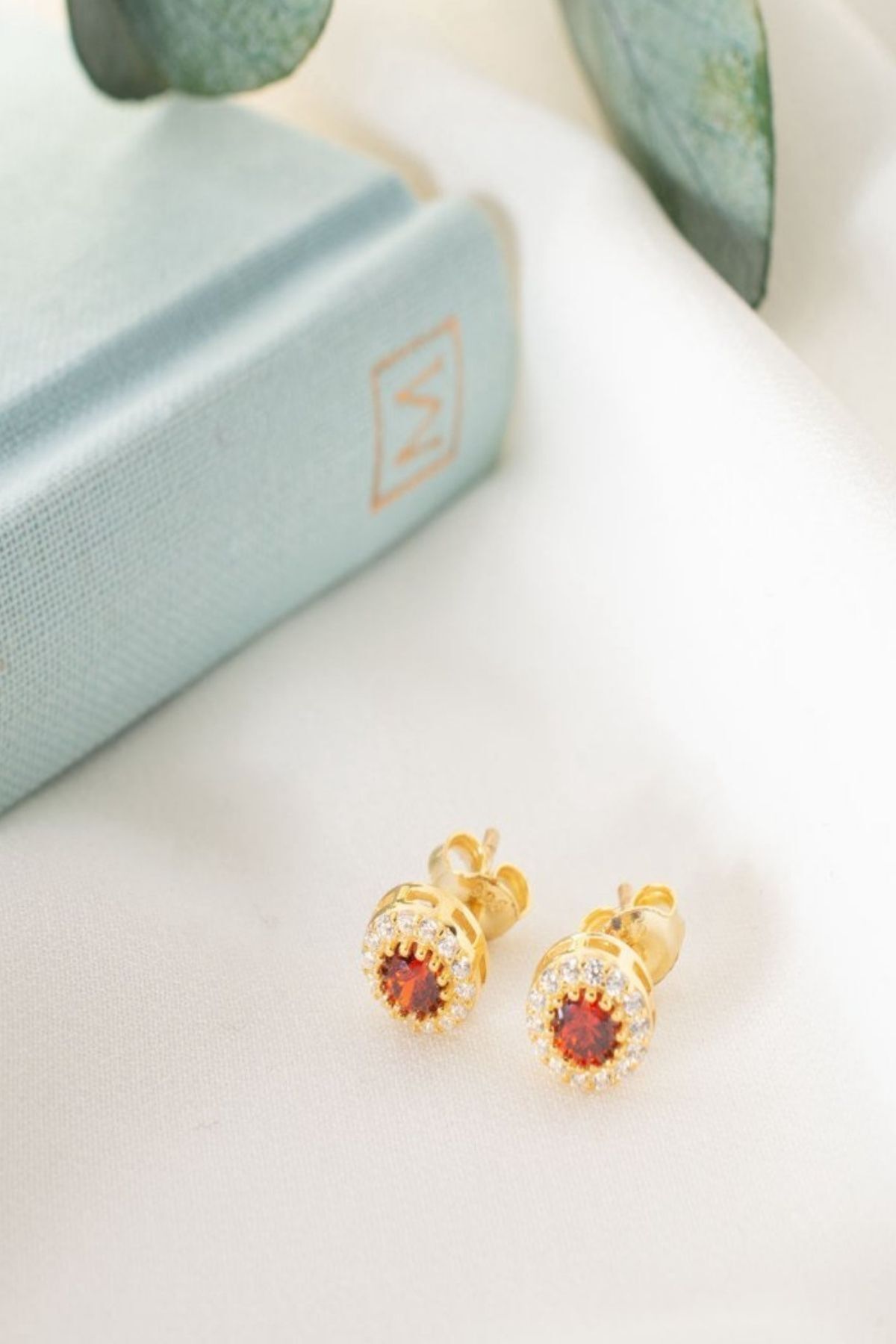 925 Ayar Gümüş Gold Zirkon Ocak Ayı Garnet Doğum Taşı Küpe