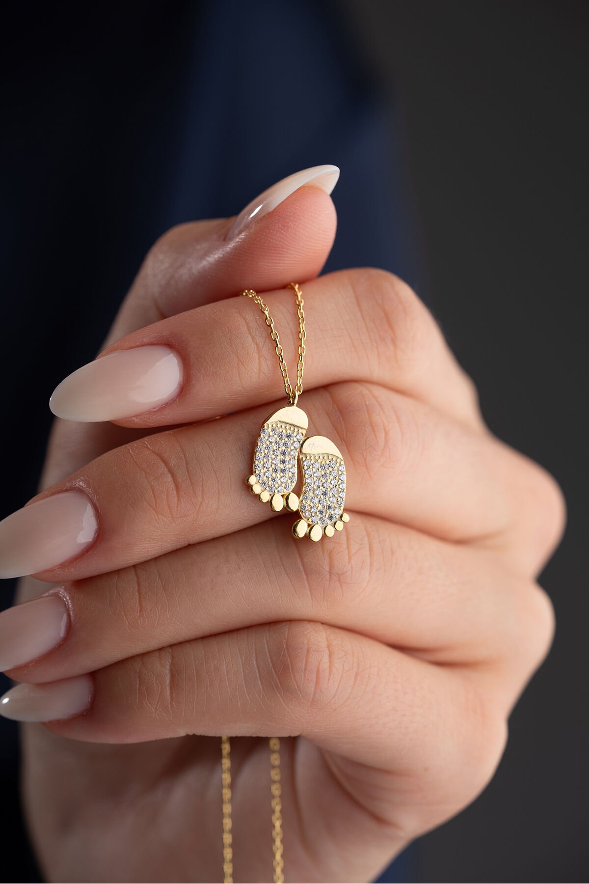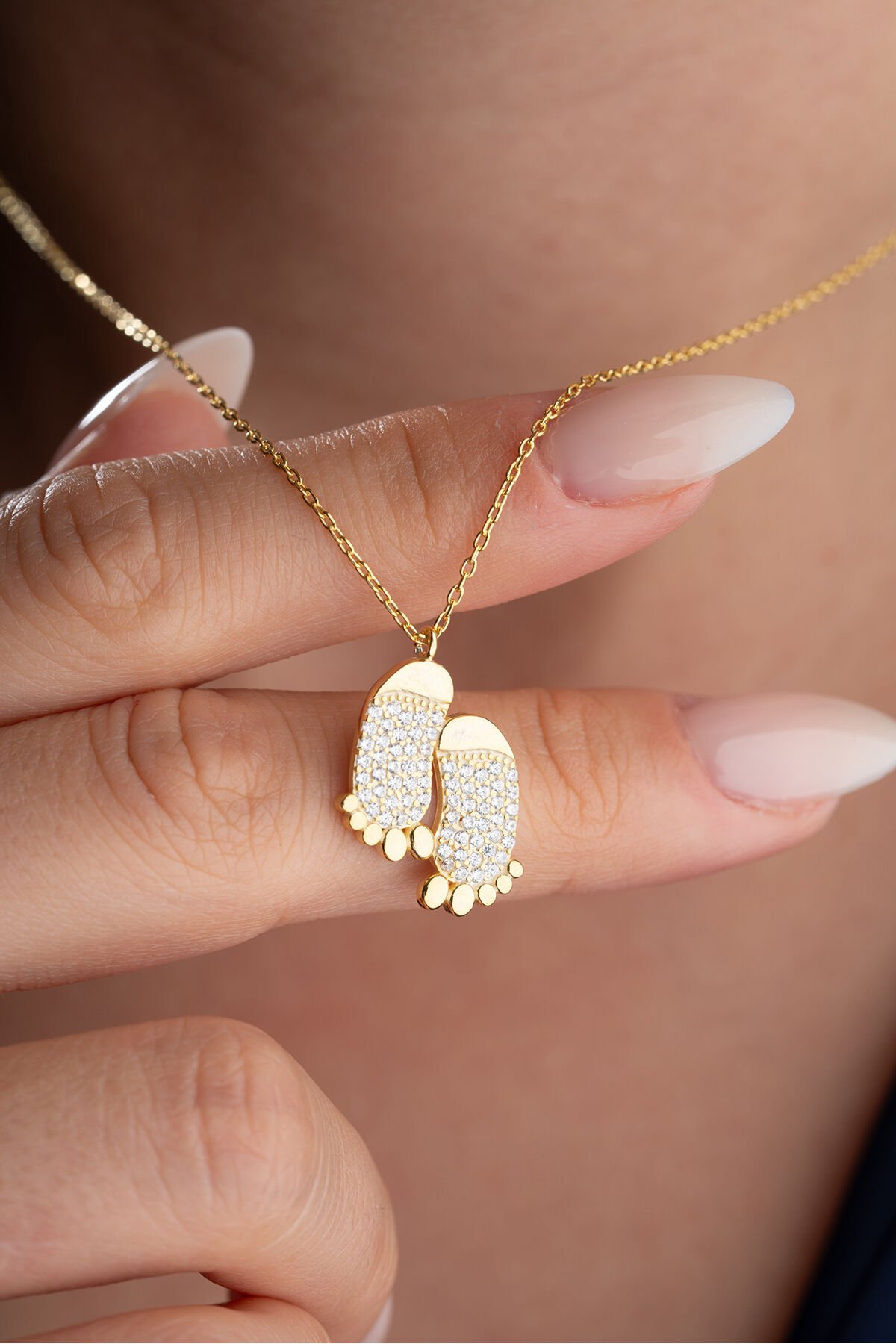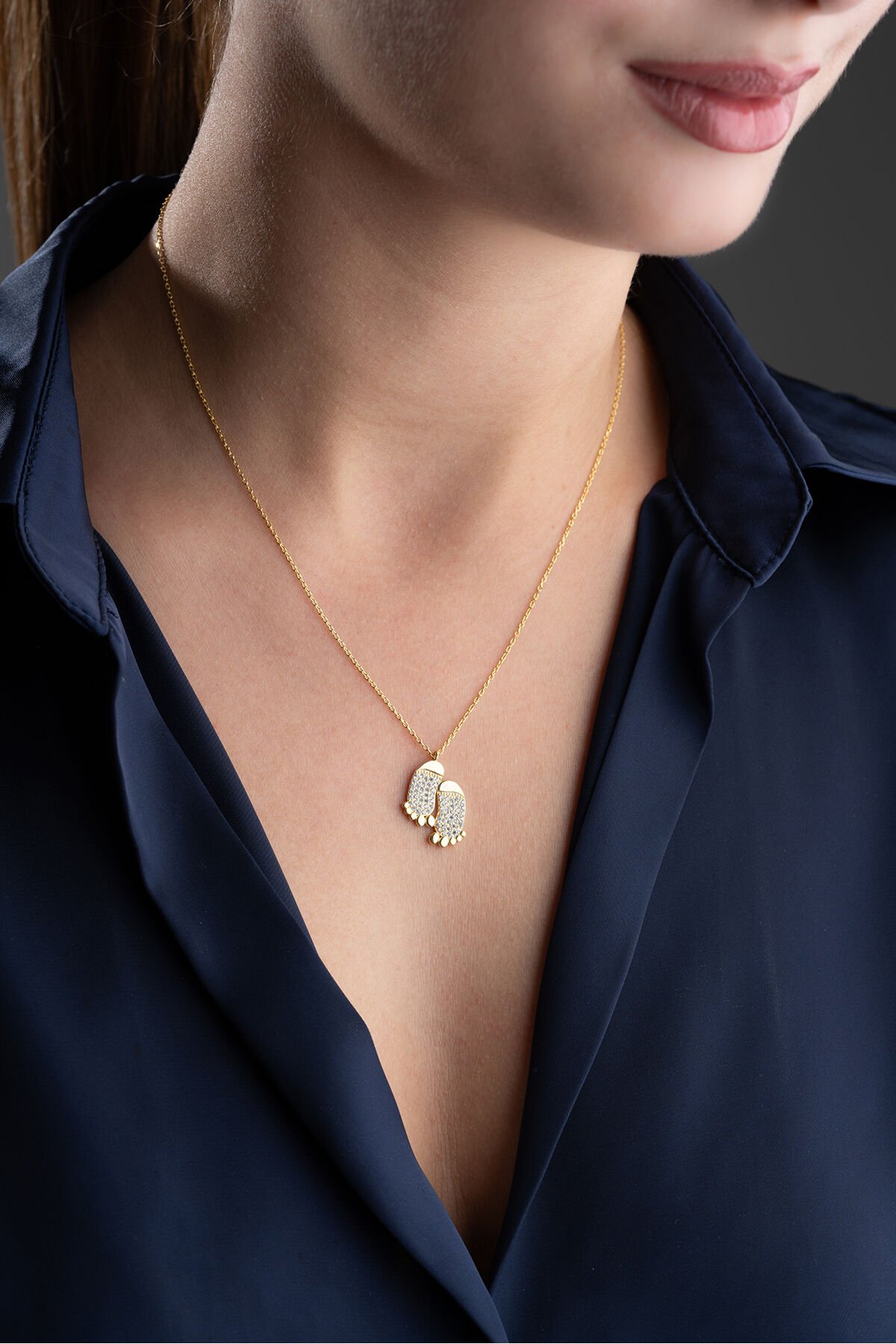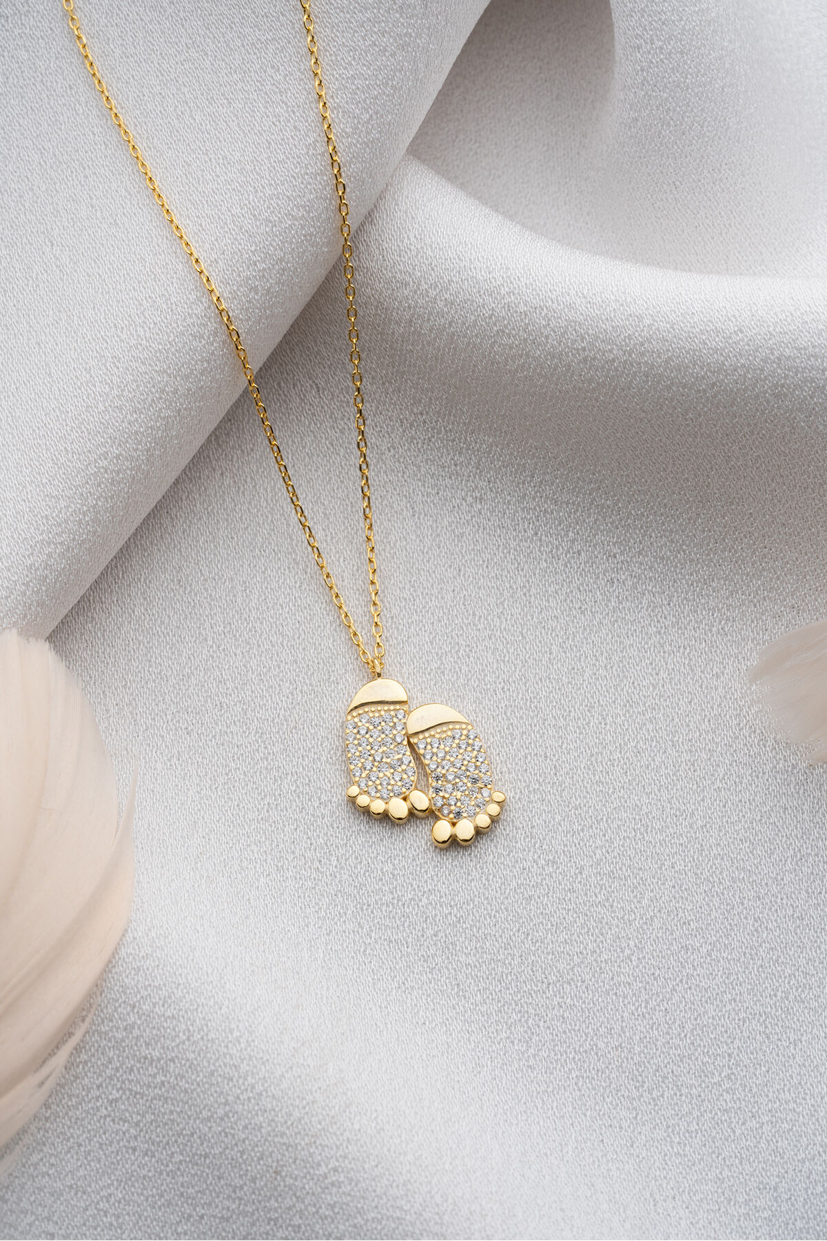 925 Ayar Gümüş Gold Zirkon Taşlı Ayak Kolye