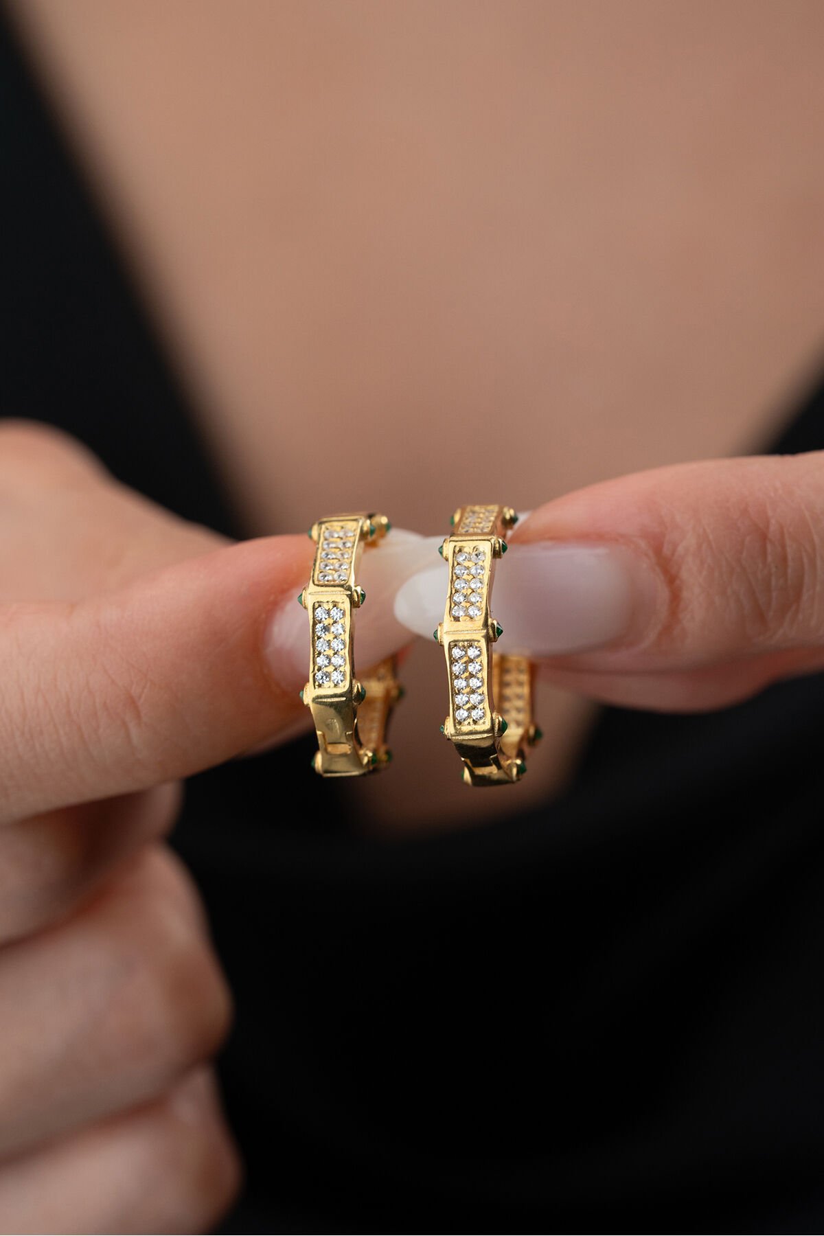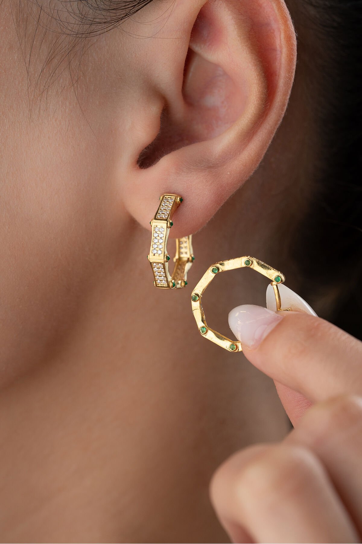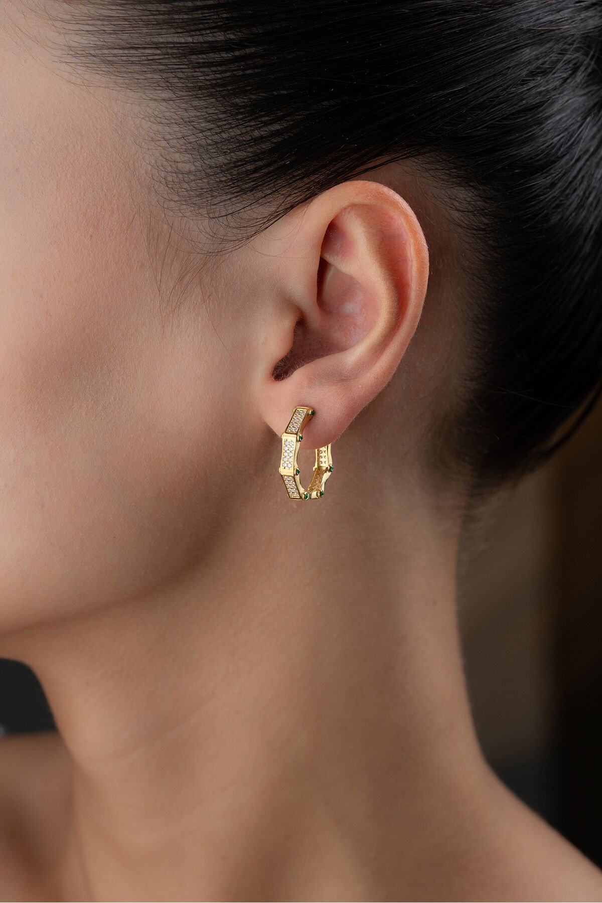 925 Ayar Gümüş Gold Zirkon Taşlı Küpe