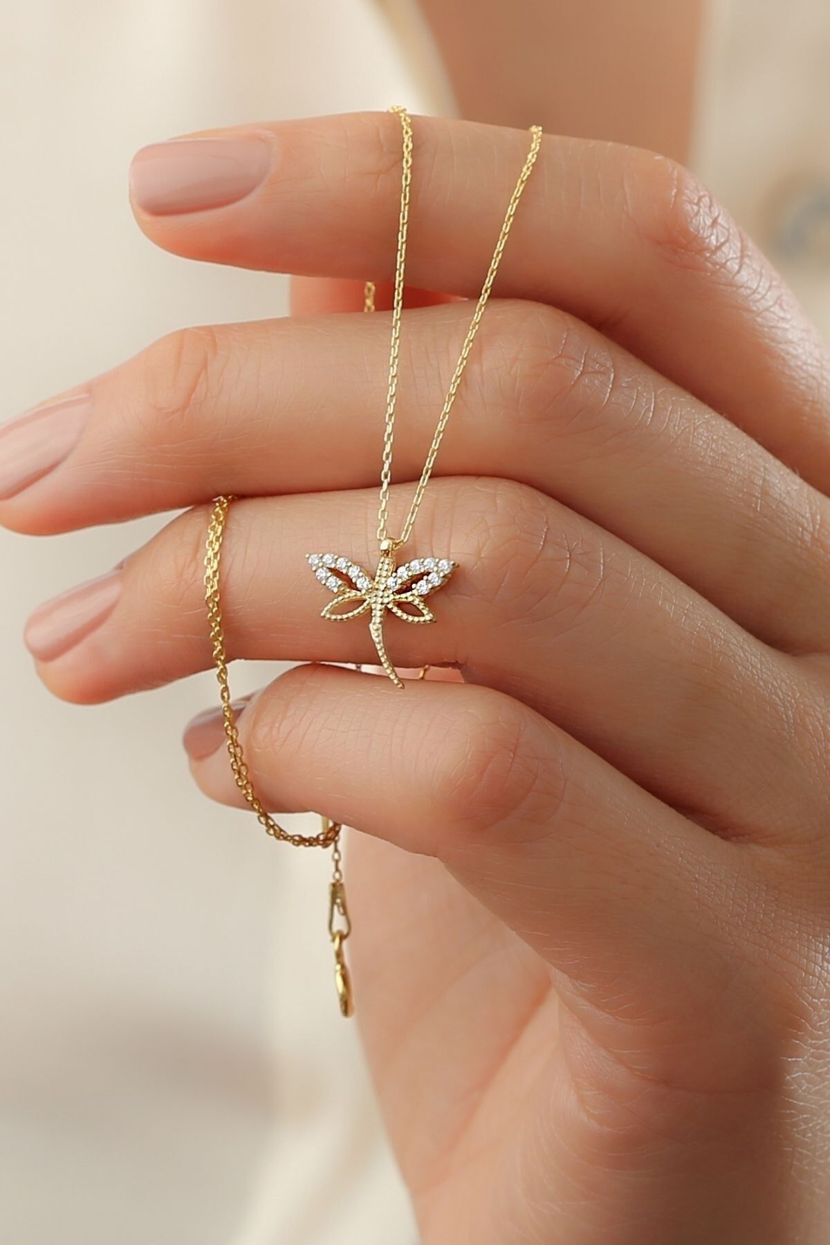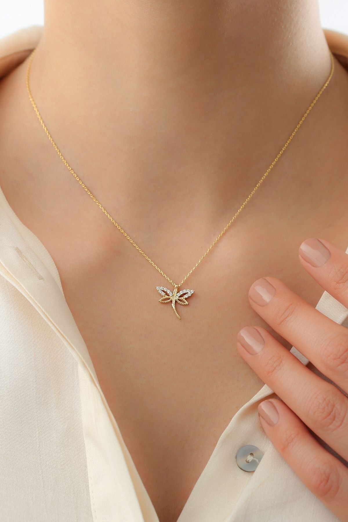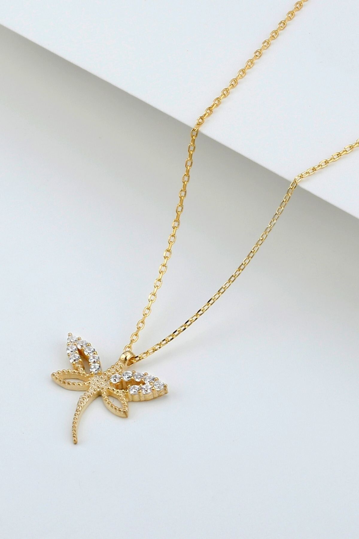 925 Ayar Gümüş Gold Zirkon Taşlı Minimal Yusufçuk Kolye