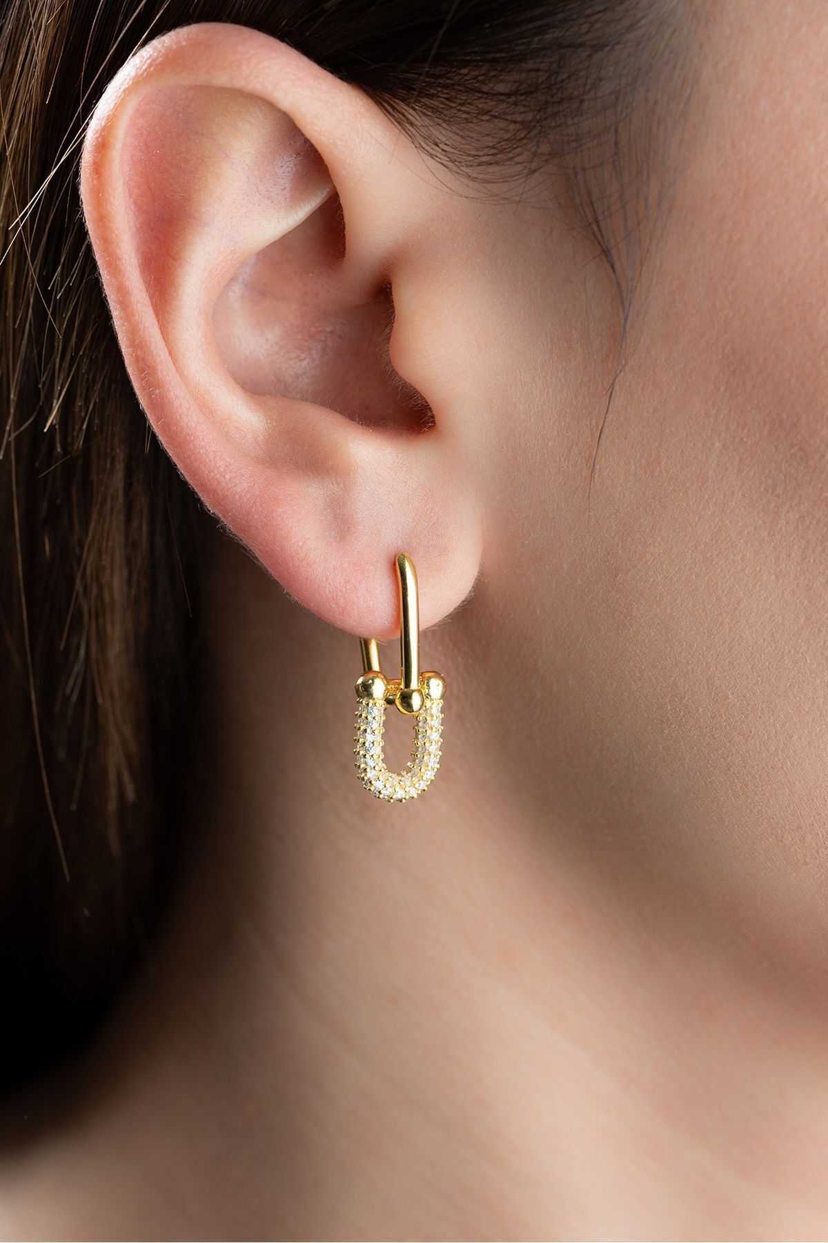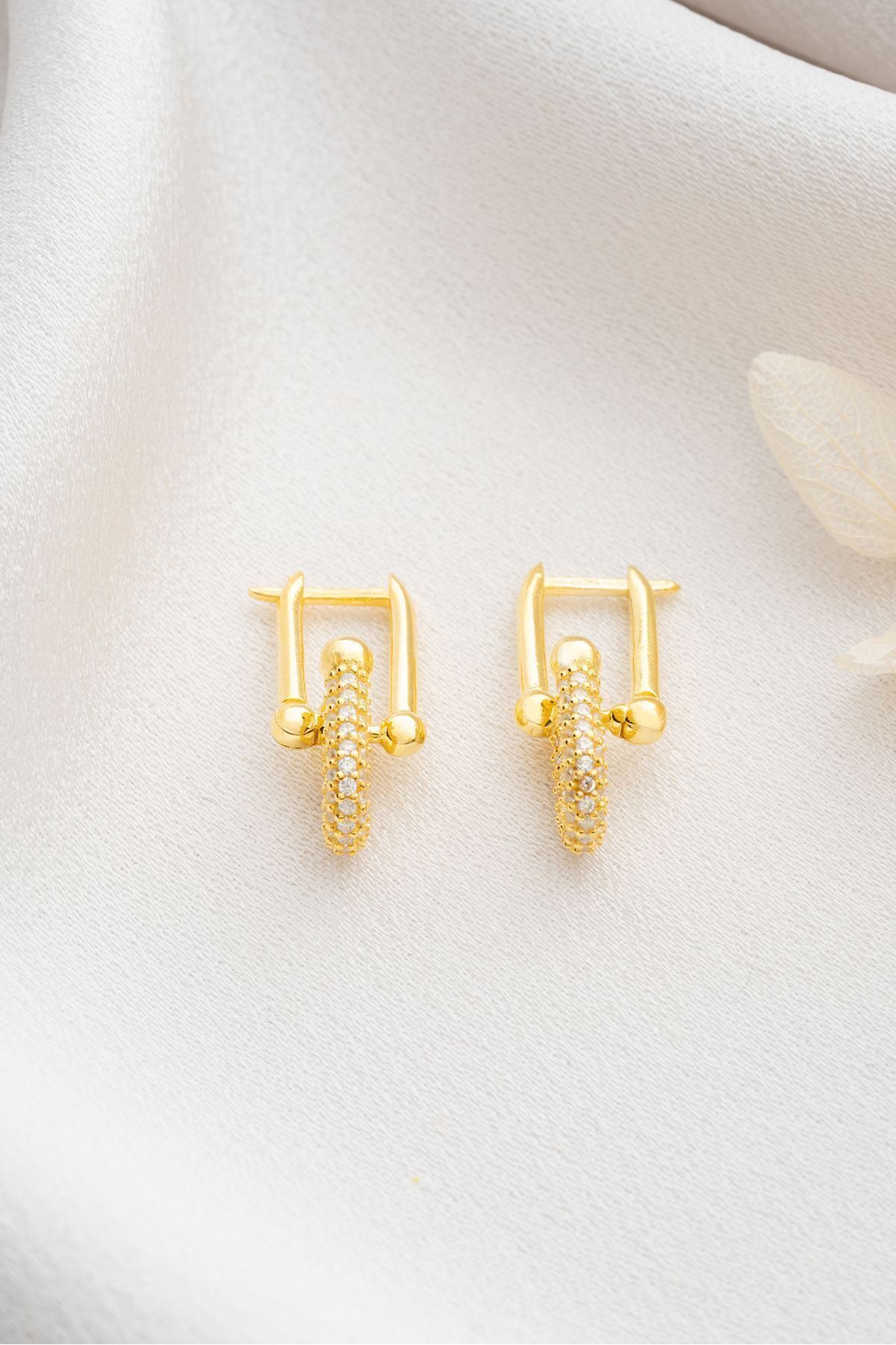 925 Ayar Gümüş Gold Zirkon Taşlı Trend Küpe