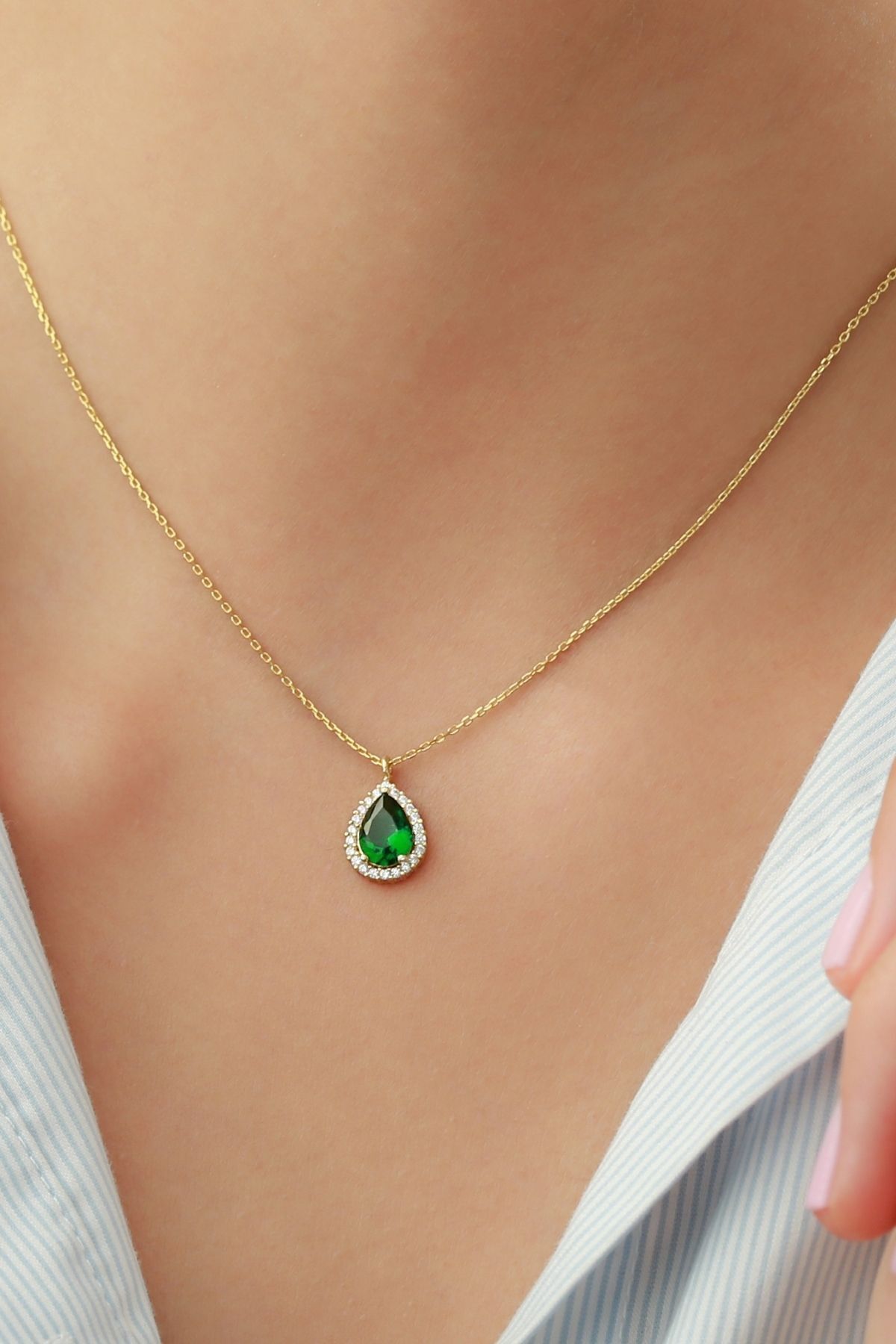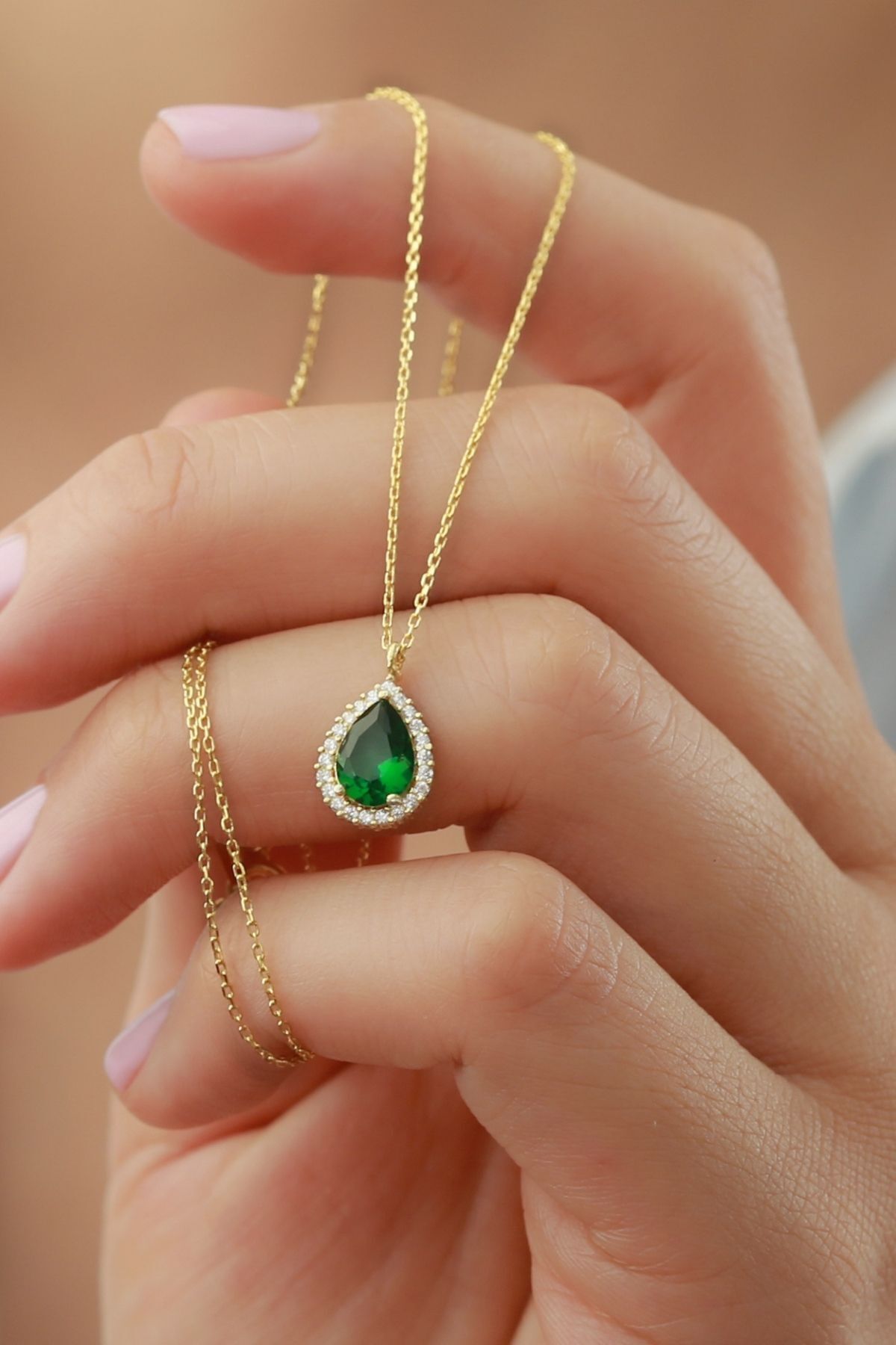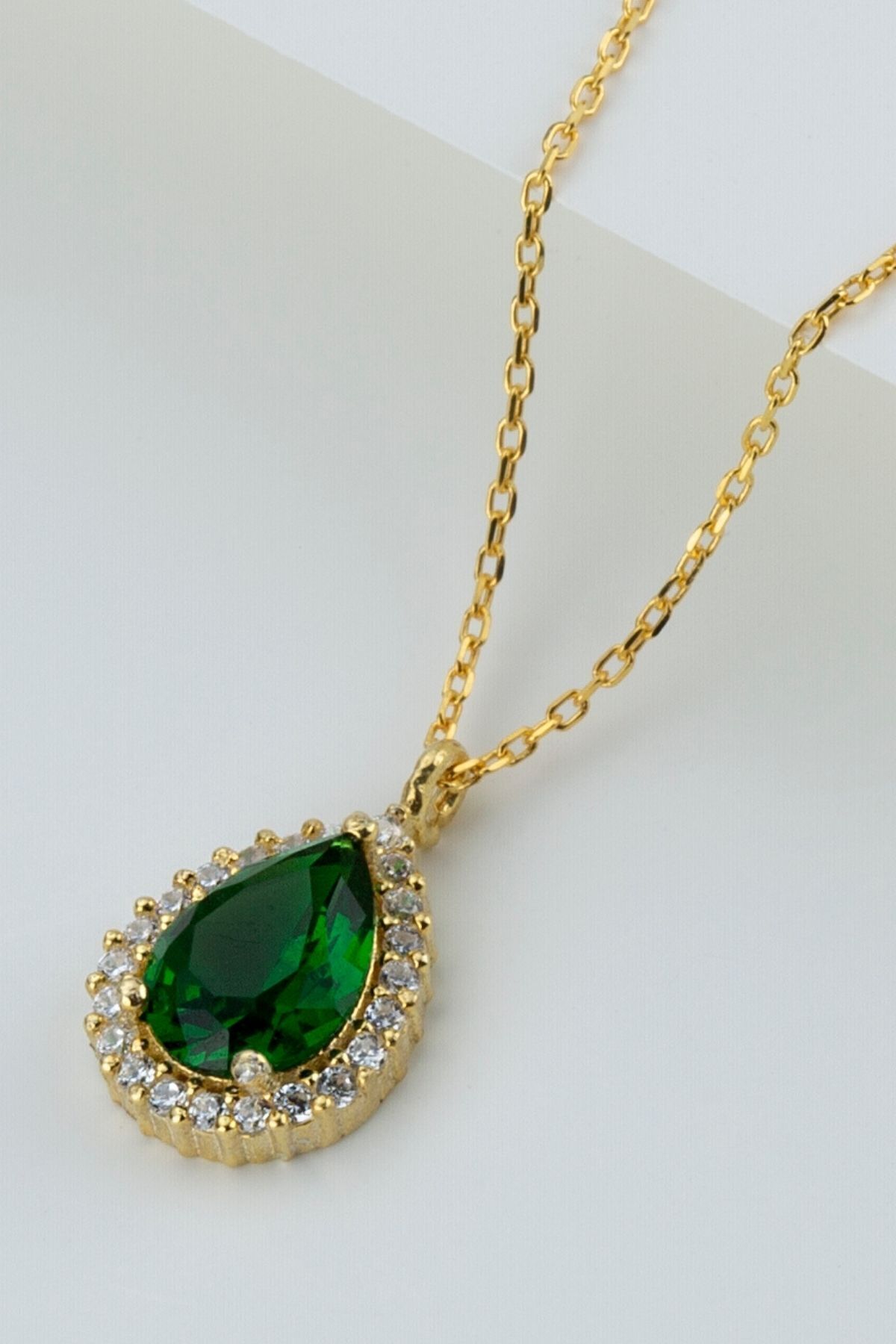 925 Ayar Gümüş Gold Zümrüt Damla Kolye
