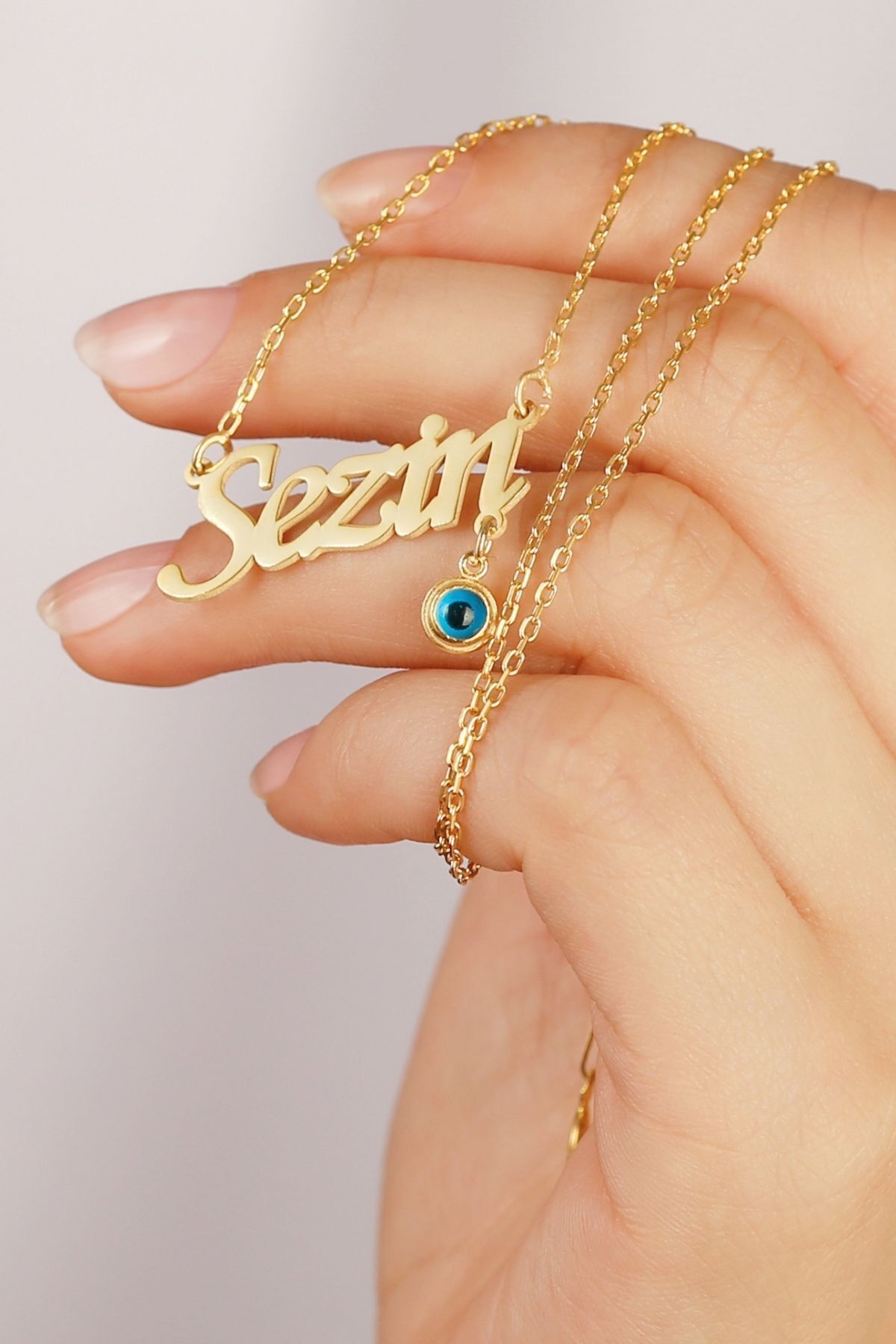 925 Ayar Gümüş Göz Nazarlı El Yazısı Isimli Kolye
