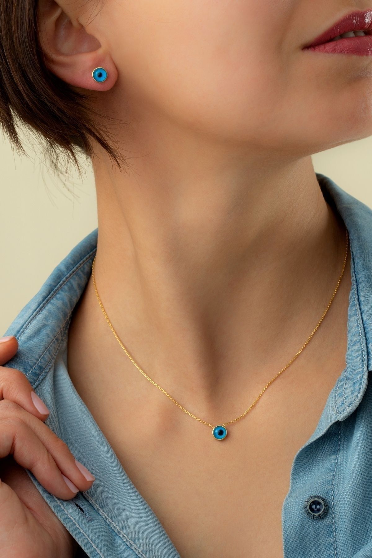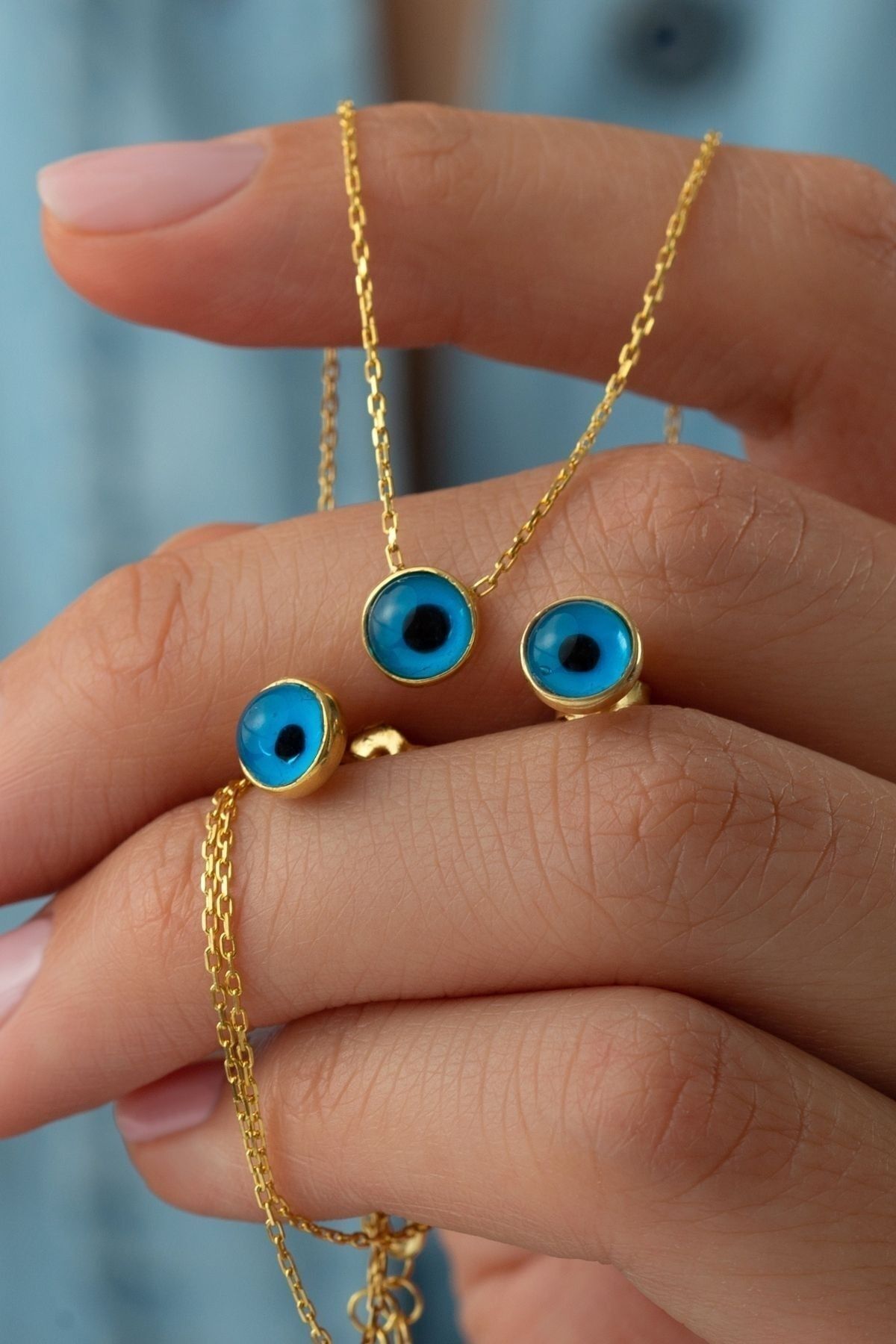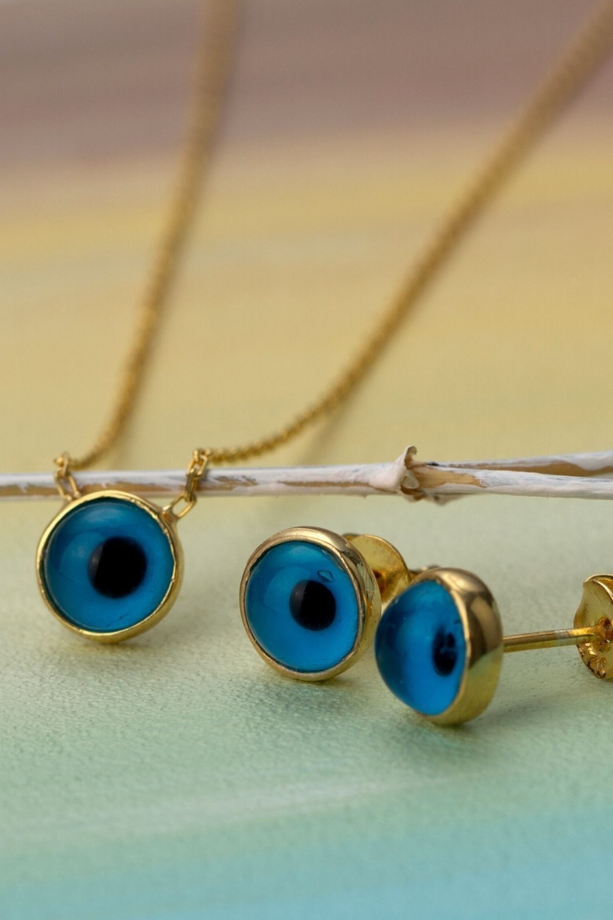 925 Ayar Gümüş Göz Nazarlı Küpe-kolye Takı Seti