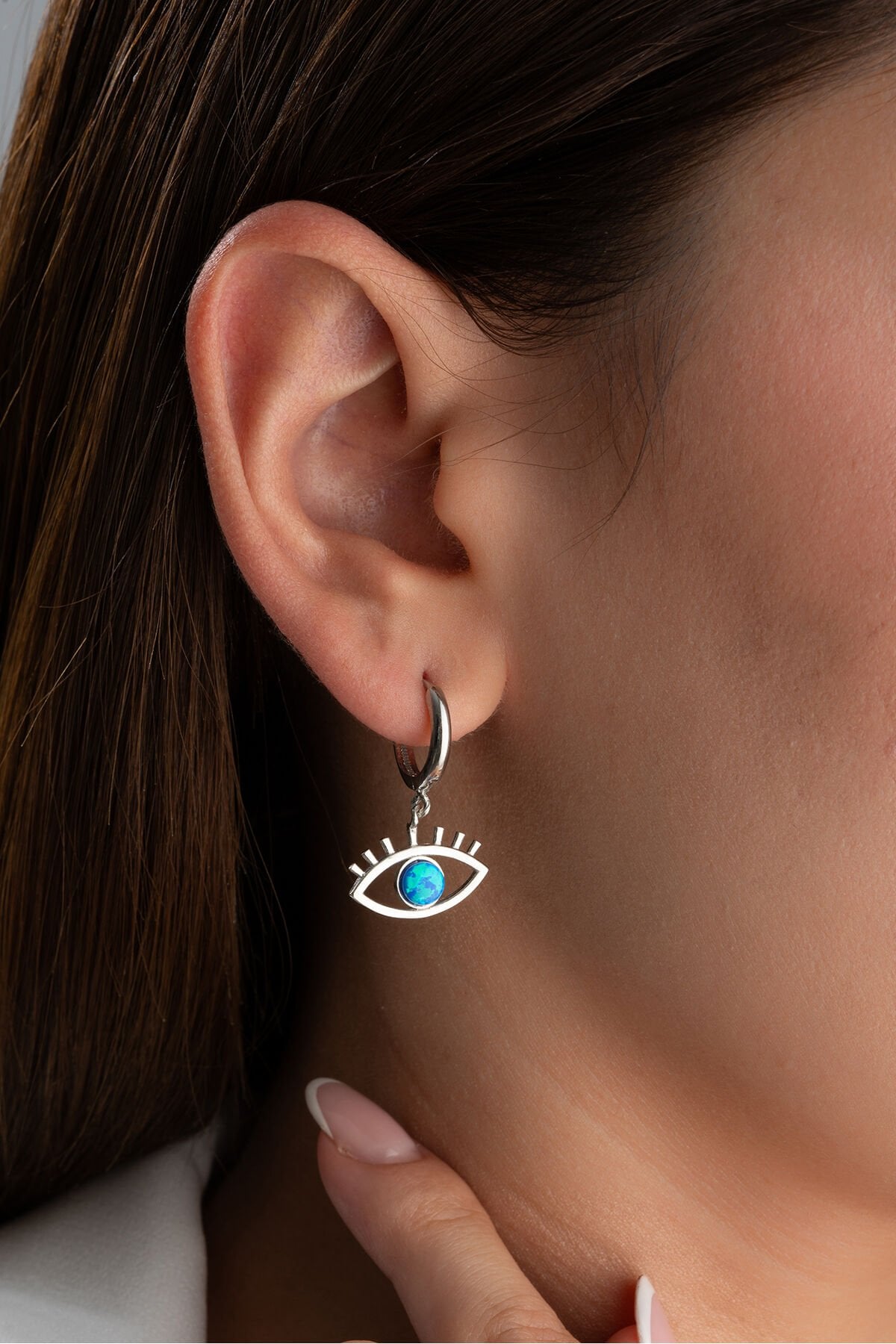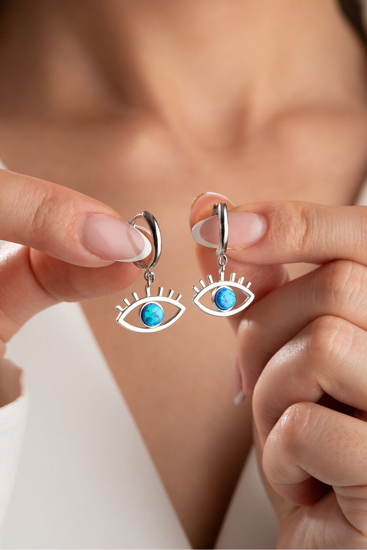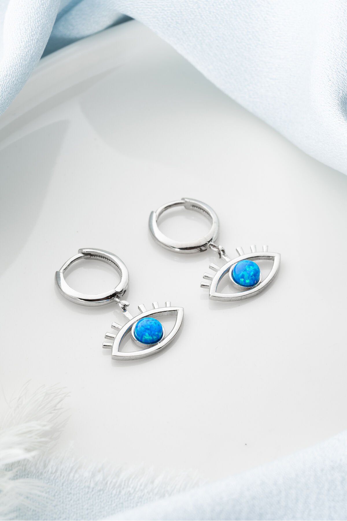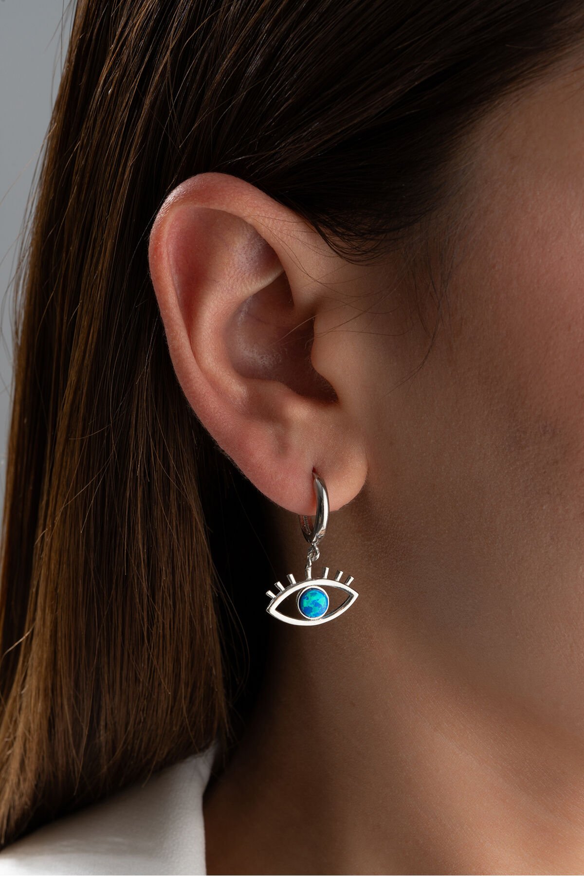 925 Ayar Gümüş Göz Opal Taşlı Küpe