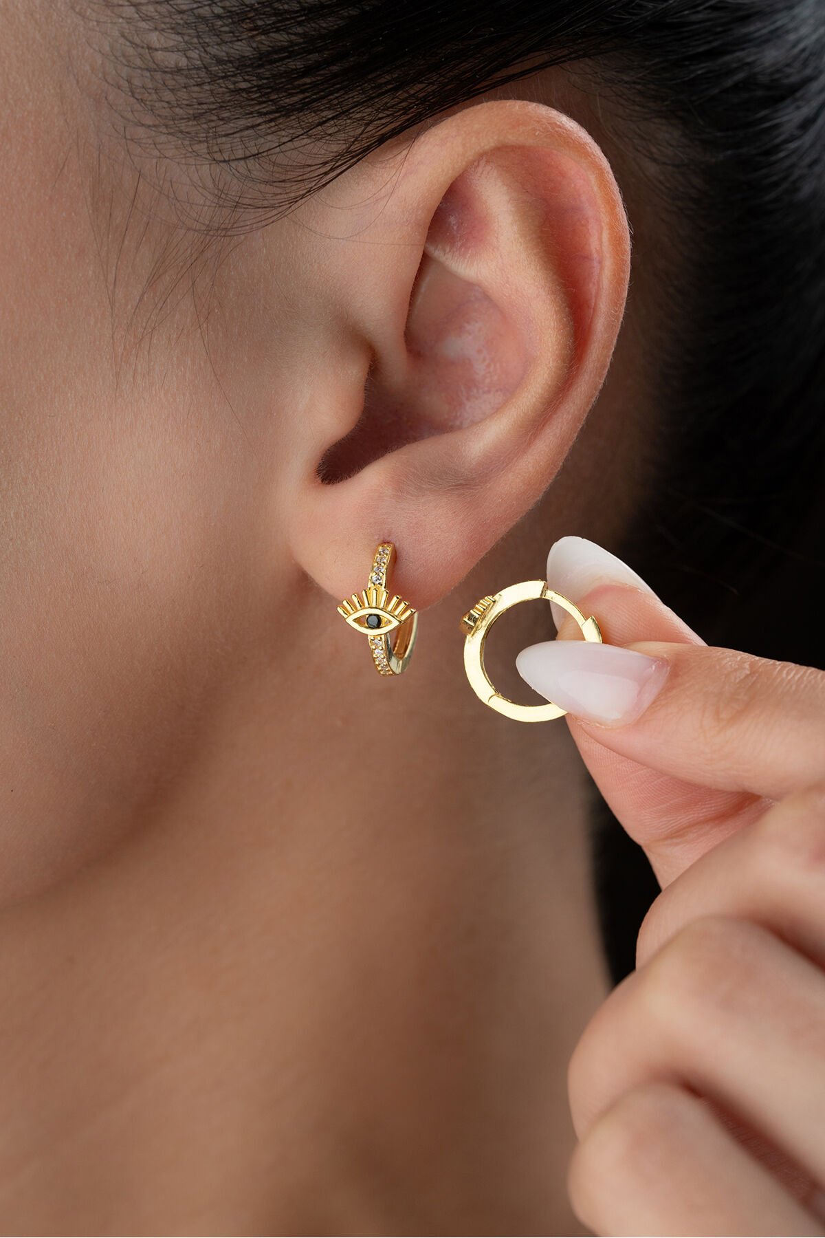 925 Ayar Gümüş Gözlü Halka Küpe