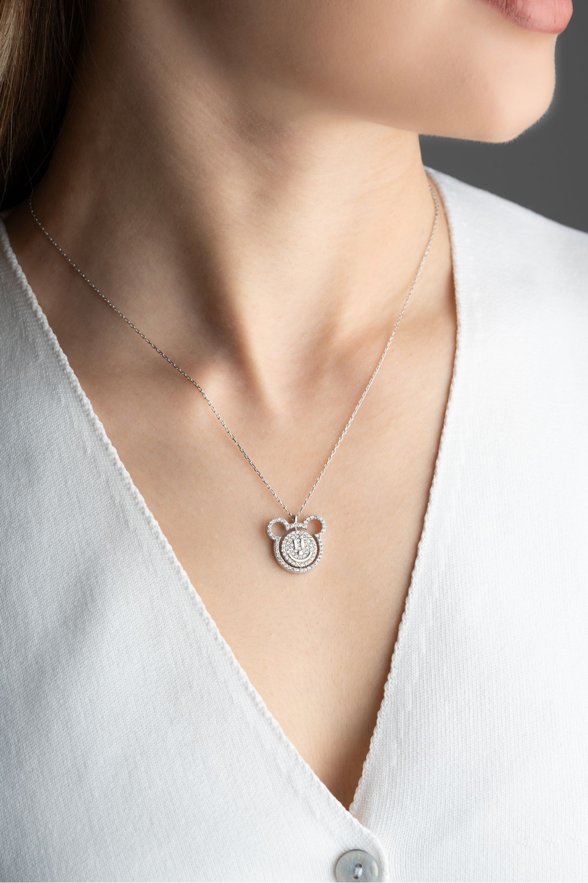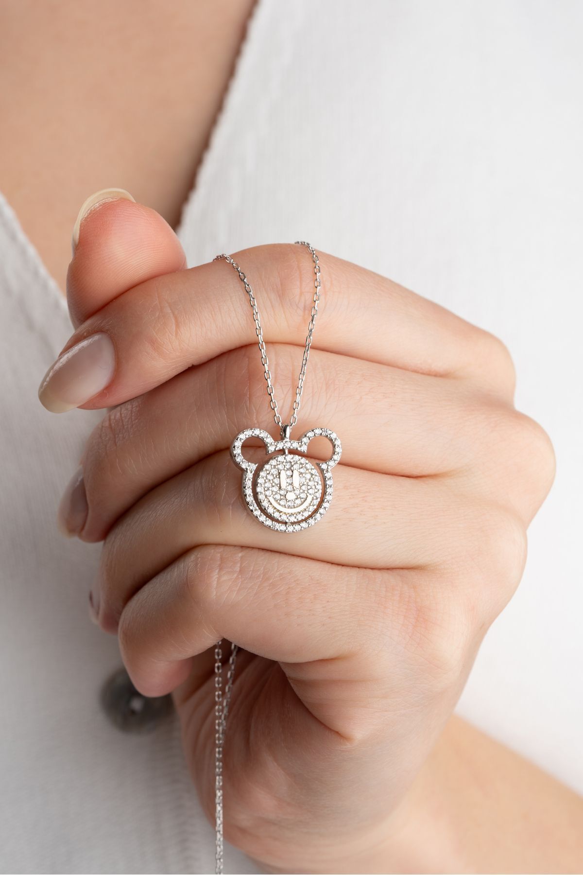 925 Ayar Gümüş Gülen Yüz Kolye