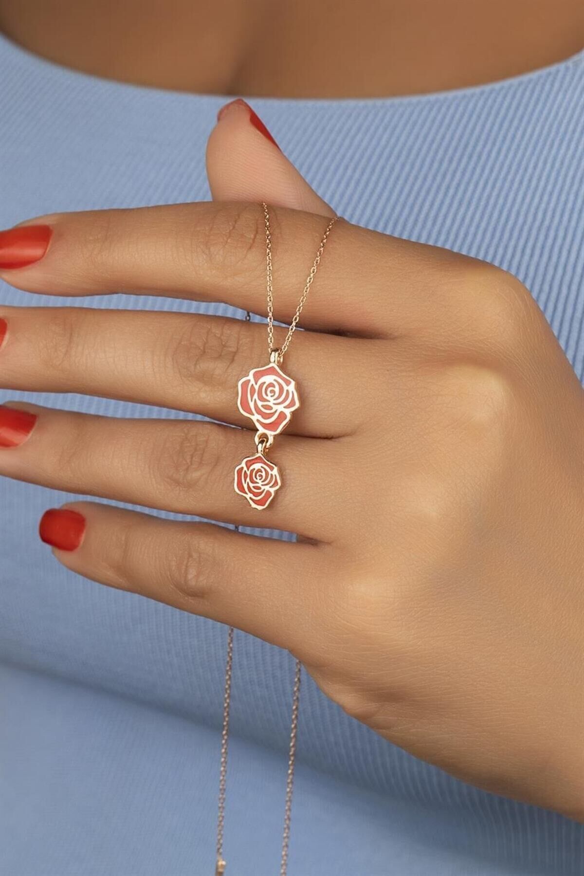 925 Ayar Gümüş Güllü Kolye