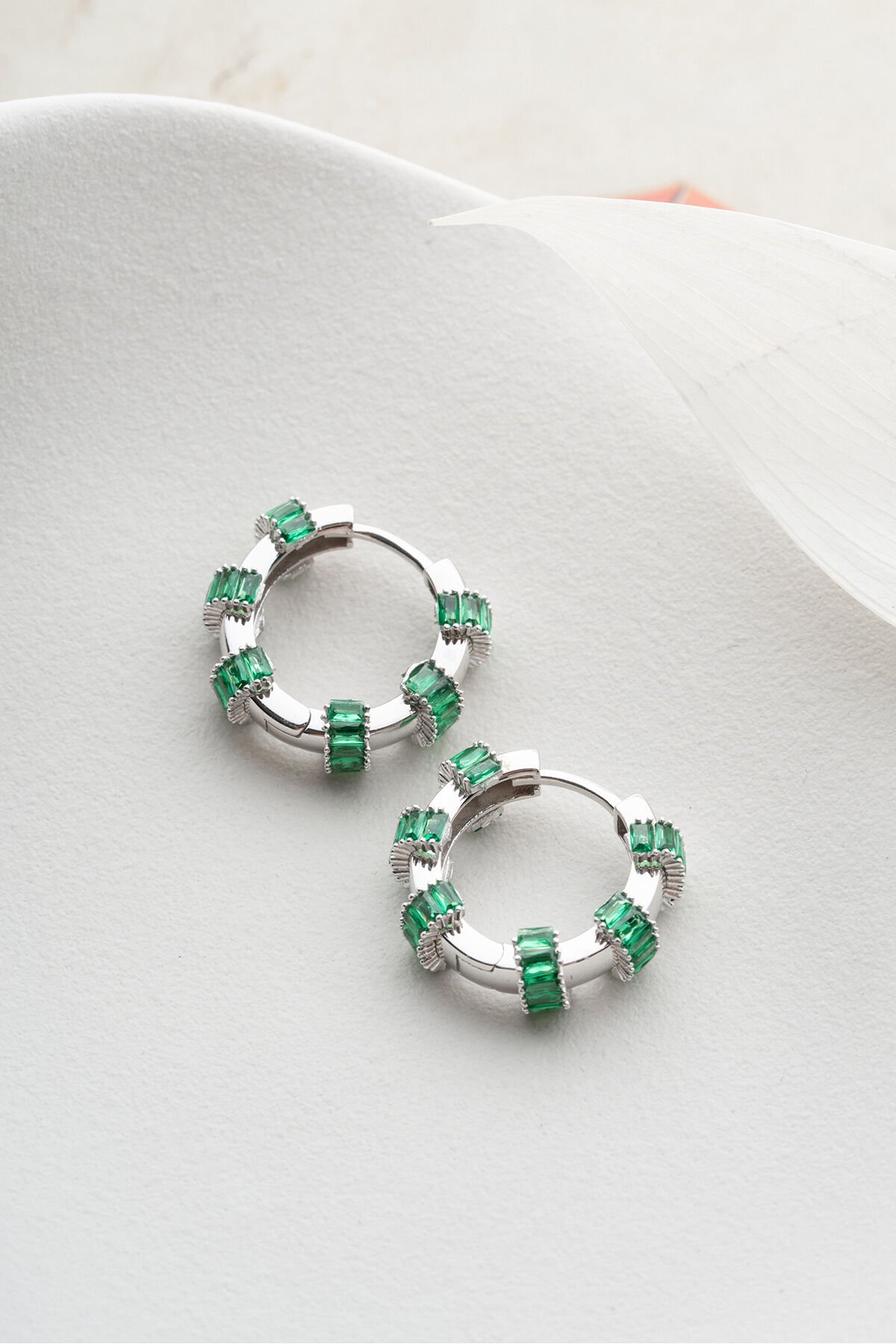 925 Ayar Gümüş Halka Baget Taşlı Küpe
