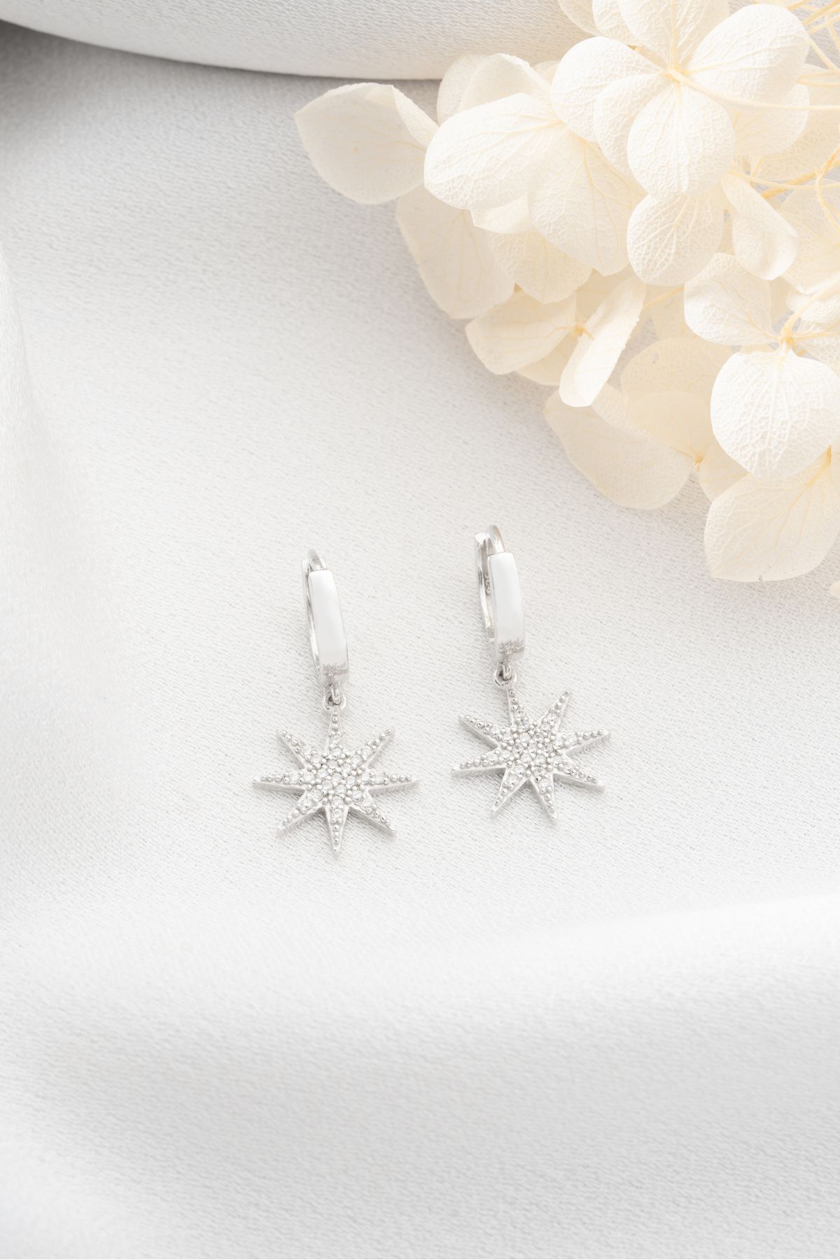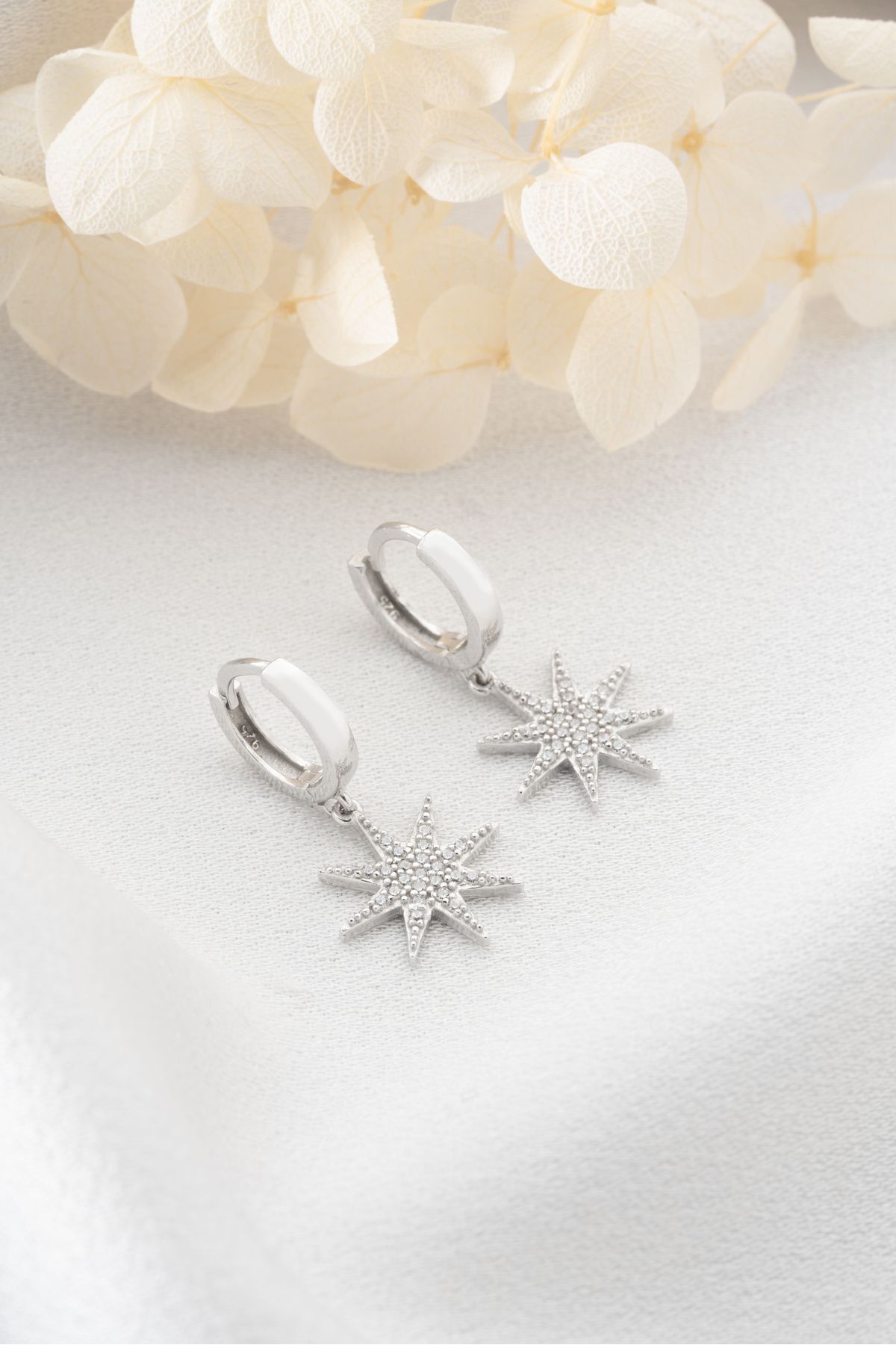 925 Ayar Gümüş Halka Kutup Yıldızı Küpe