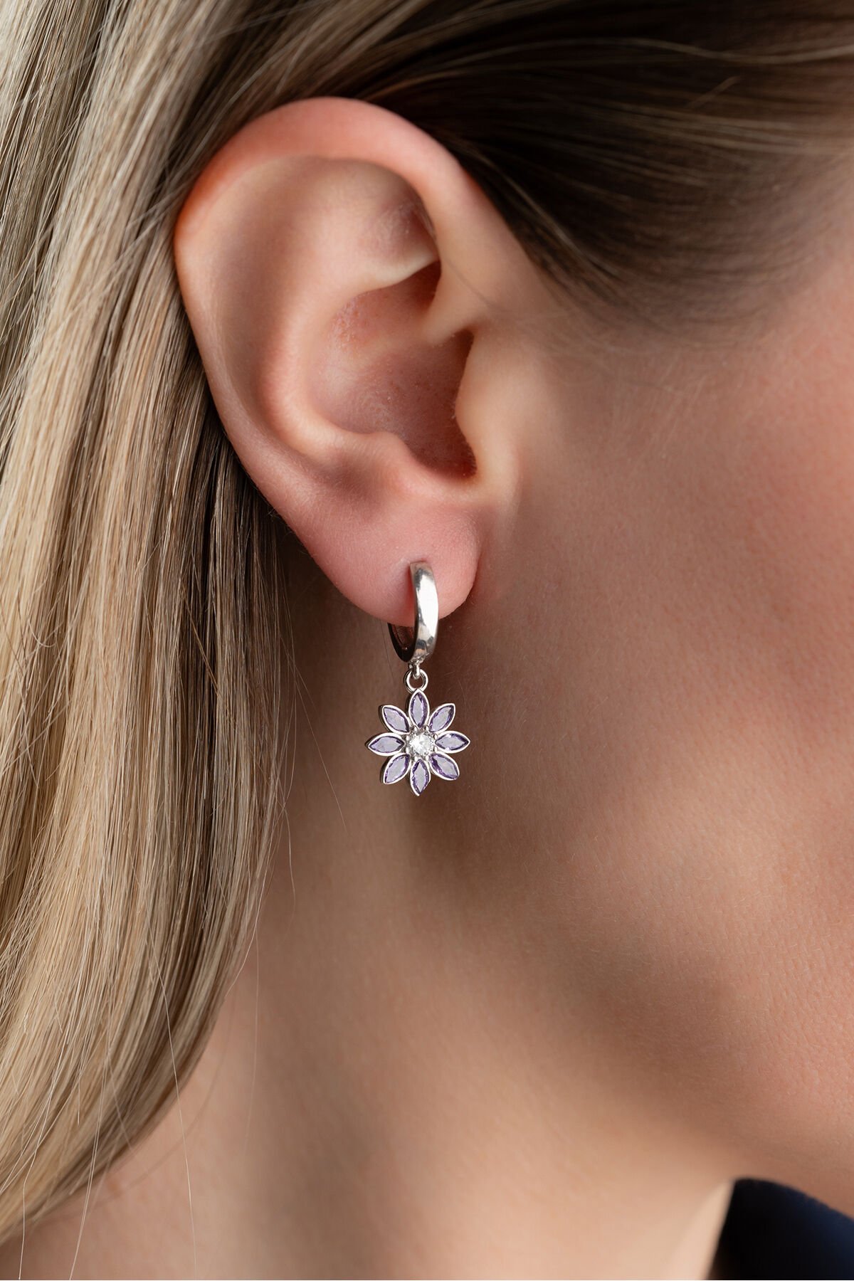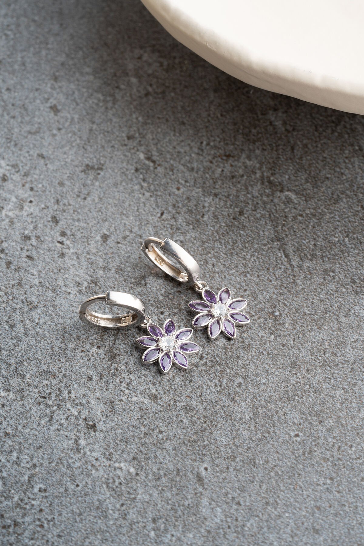 925 Ayar Gümüş Halkalı Mor Taşlı Lotus Küpe