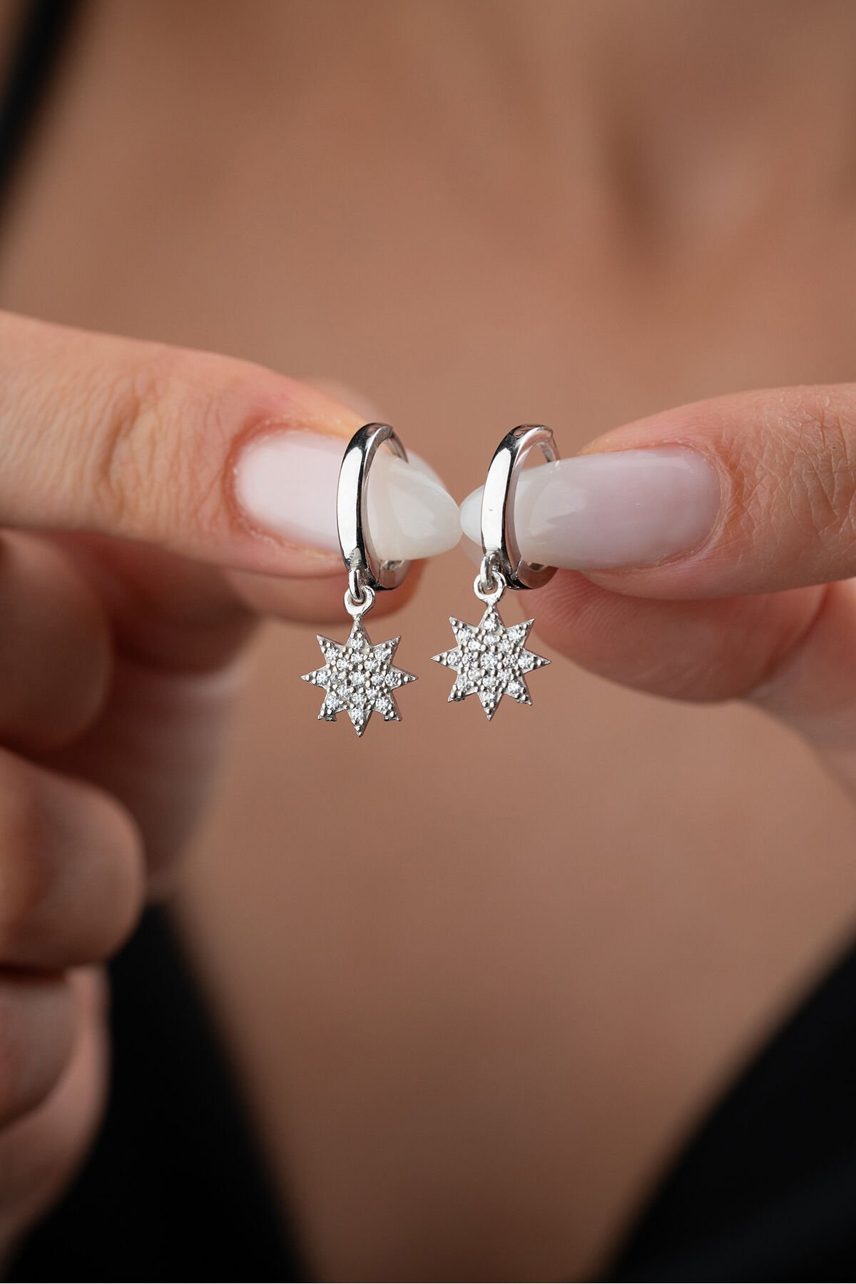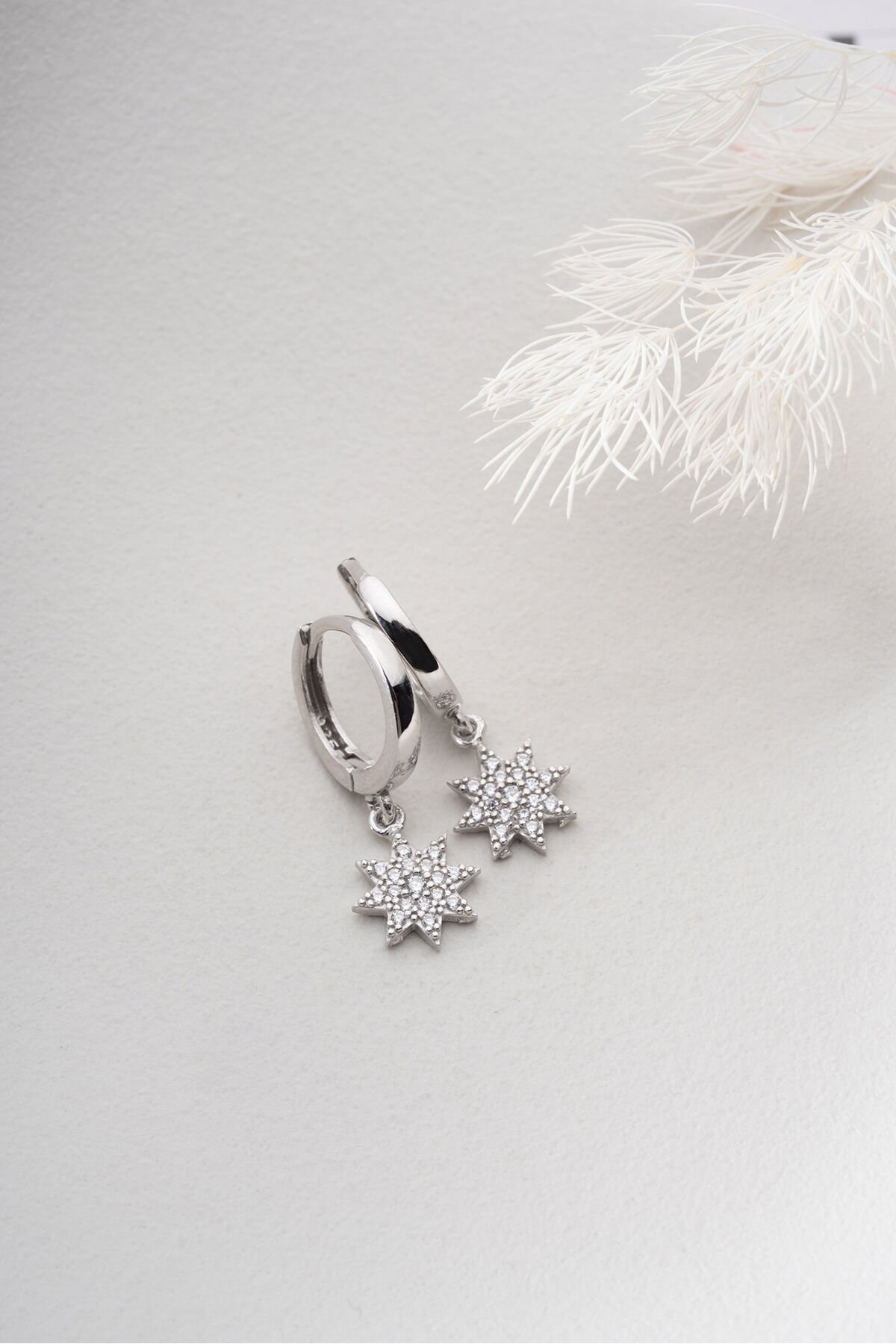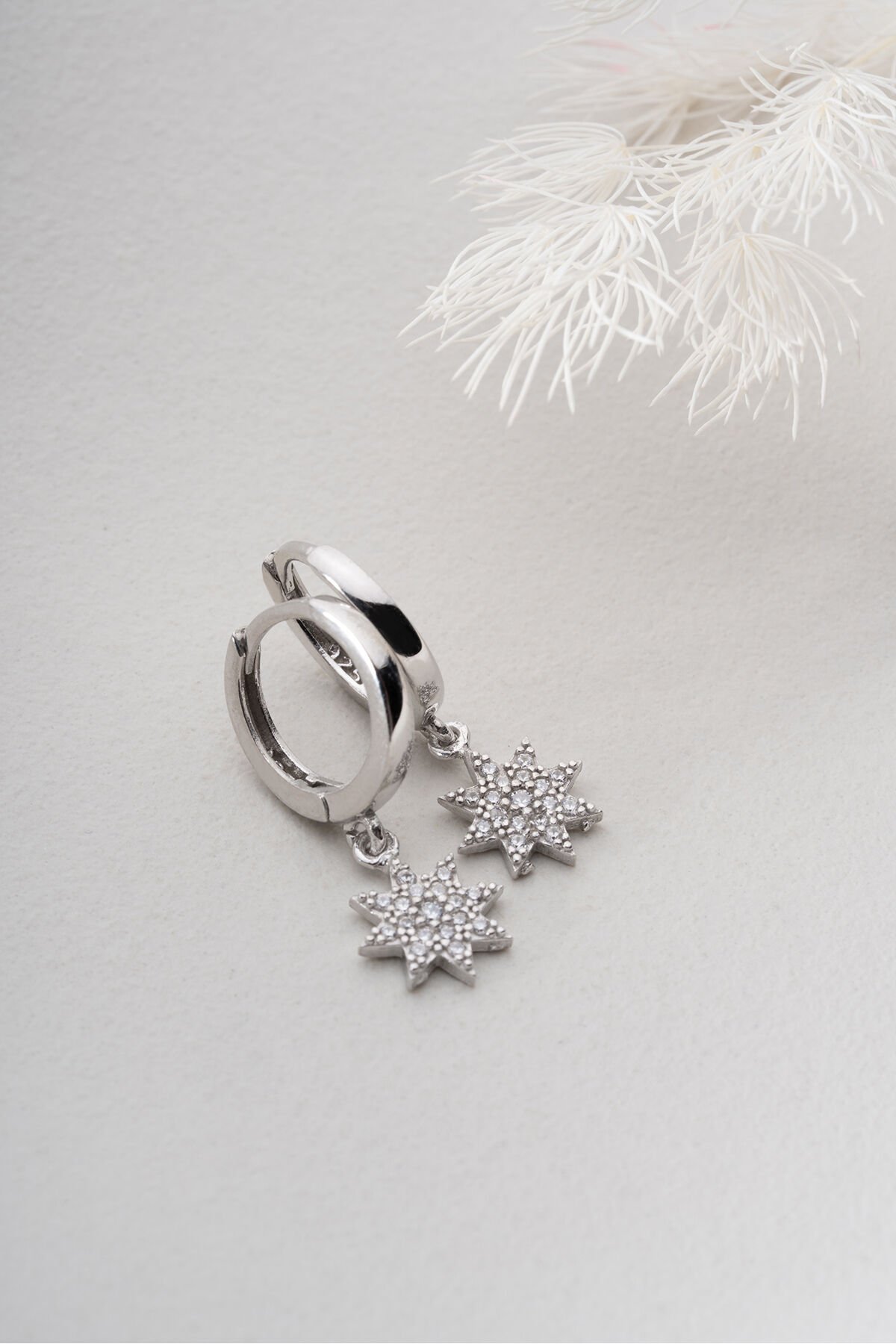 925 Ayar Gümüş Halkalı Taşlı Yıldız Küpe
