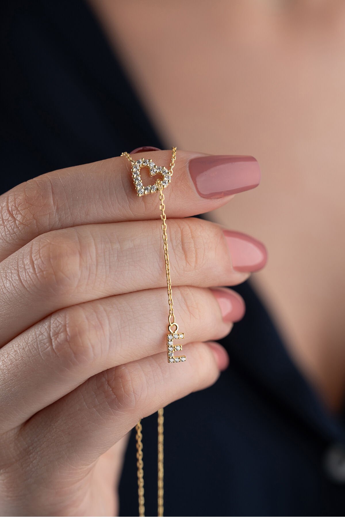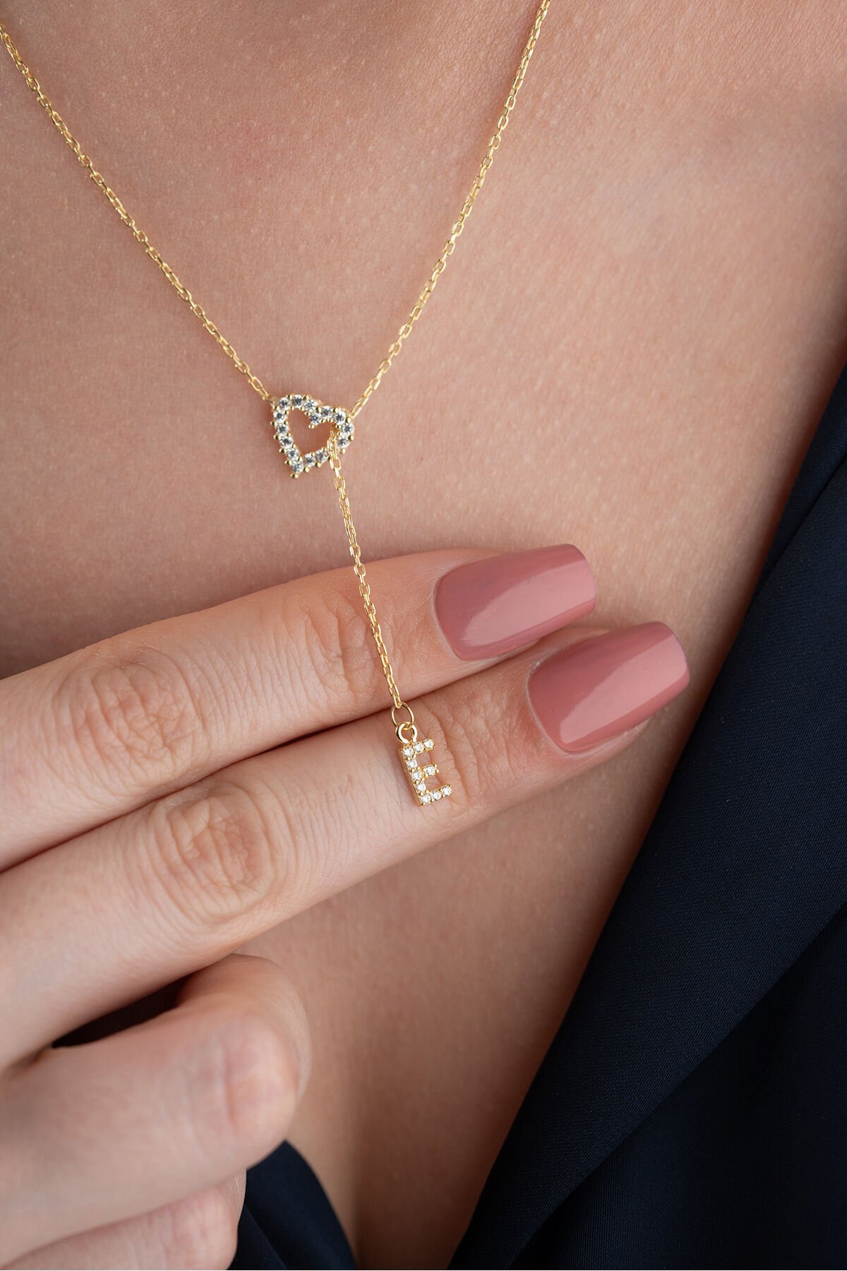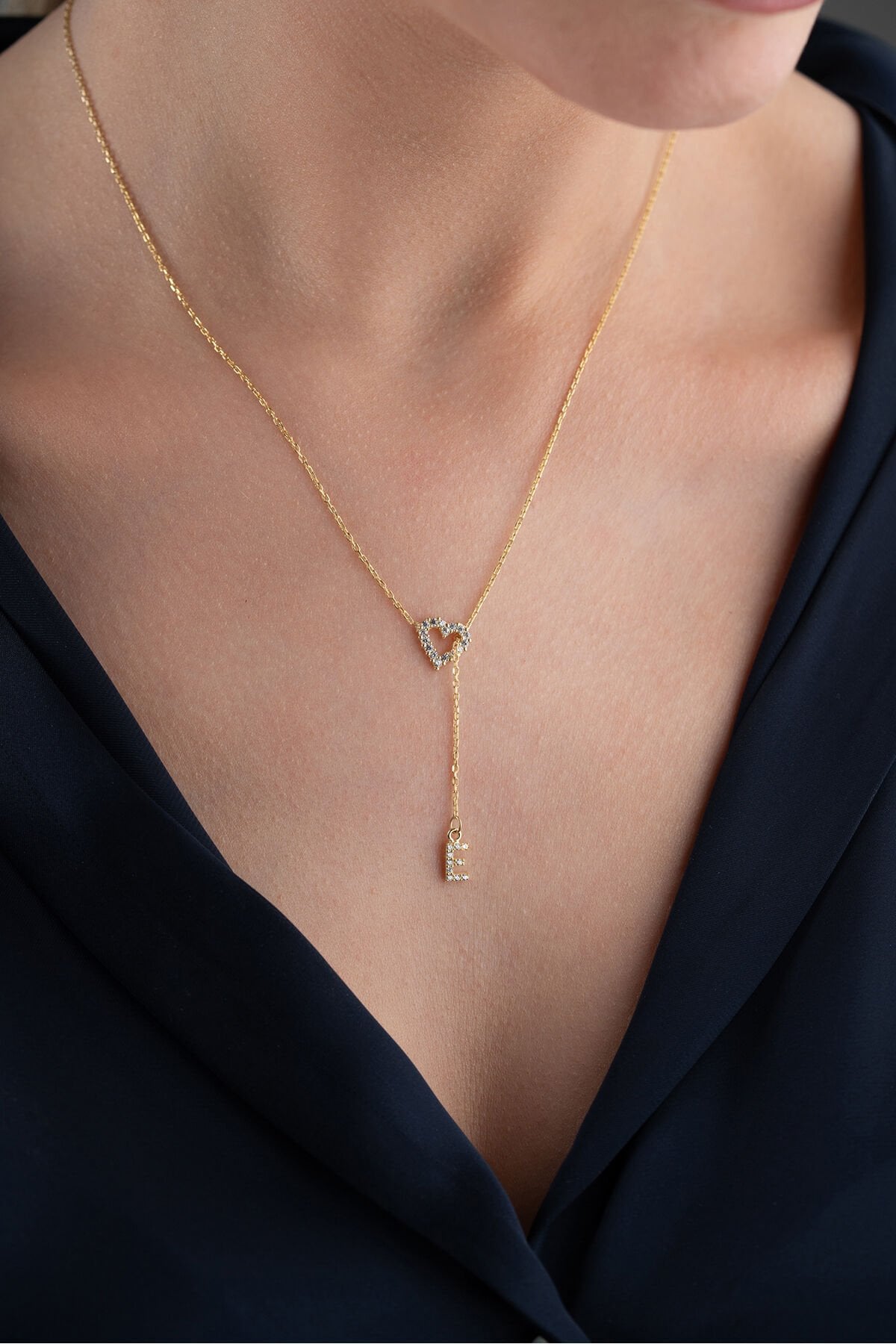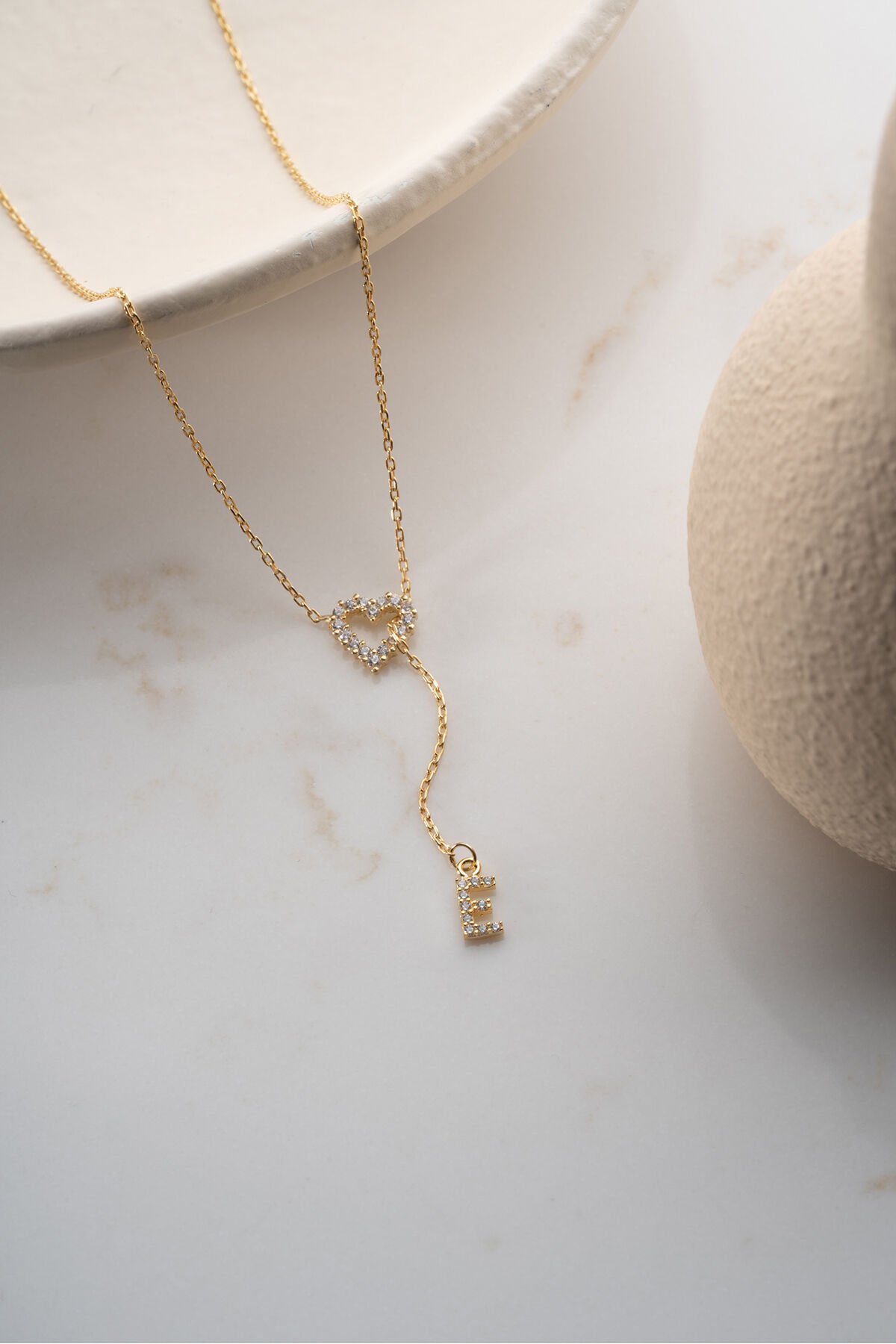 925 Ayar Gümüş Harfli Kalpli Kolye