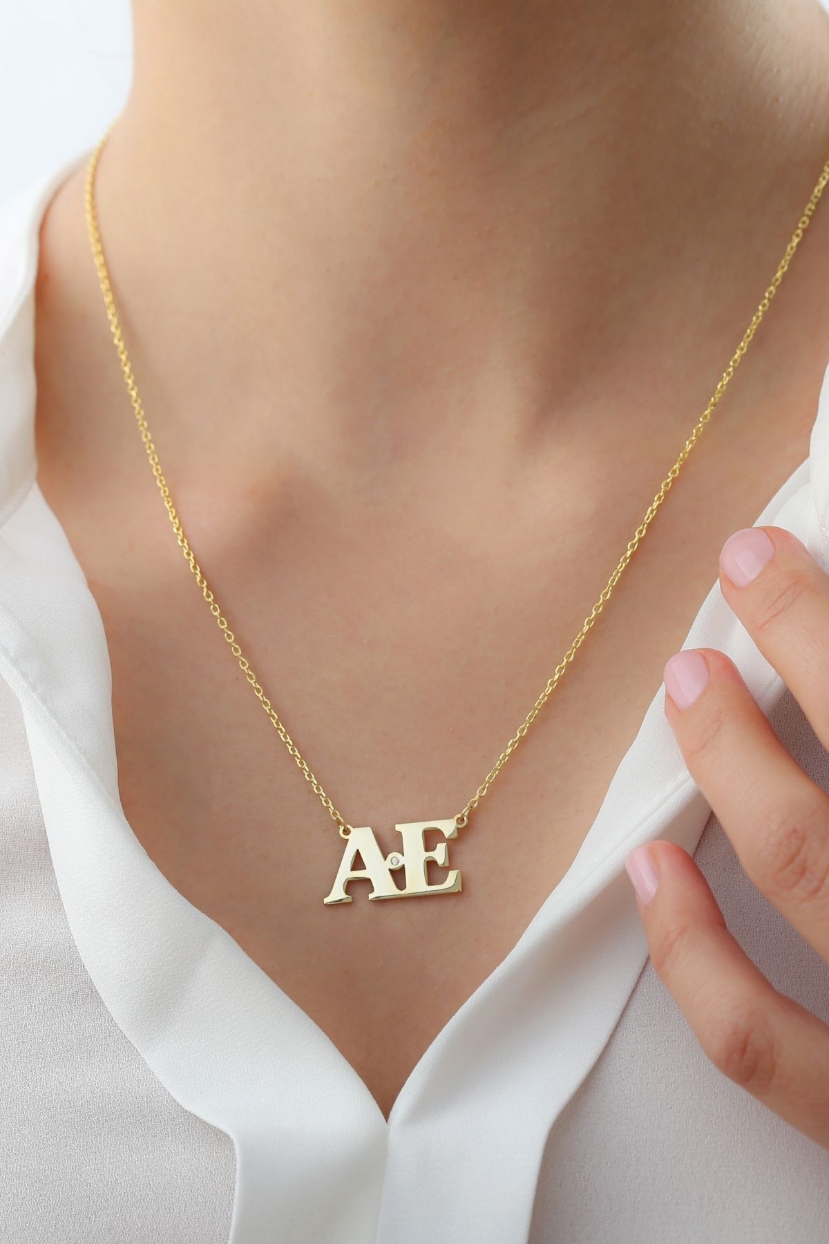 925 Ayar Gümüş Harfli Tektaş Kolye