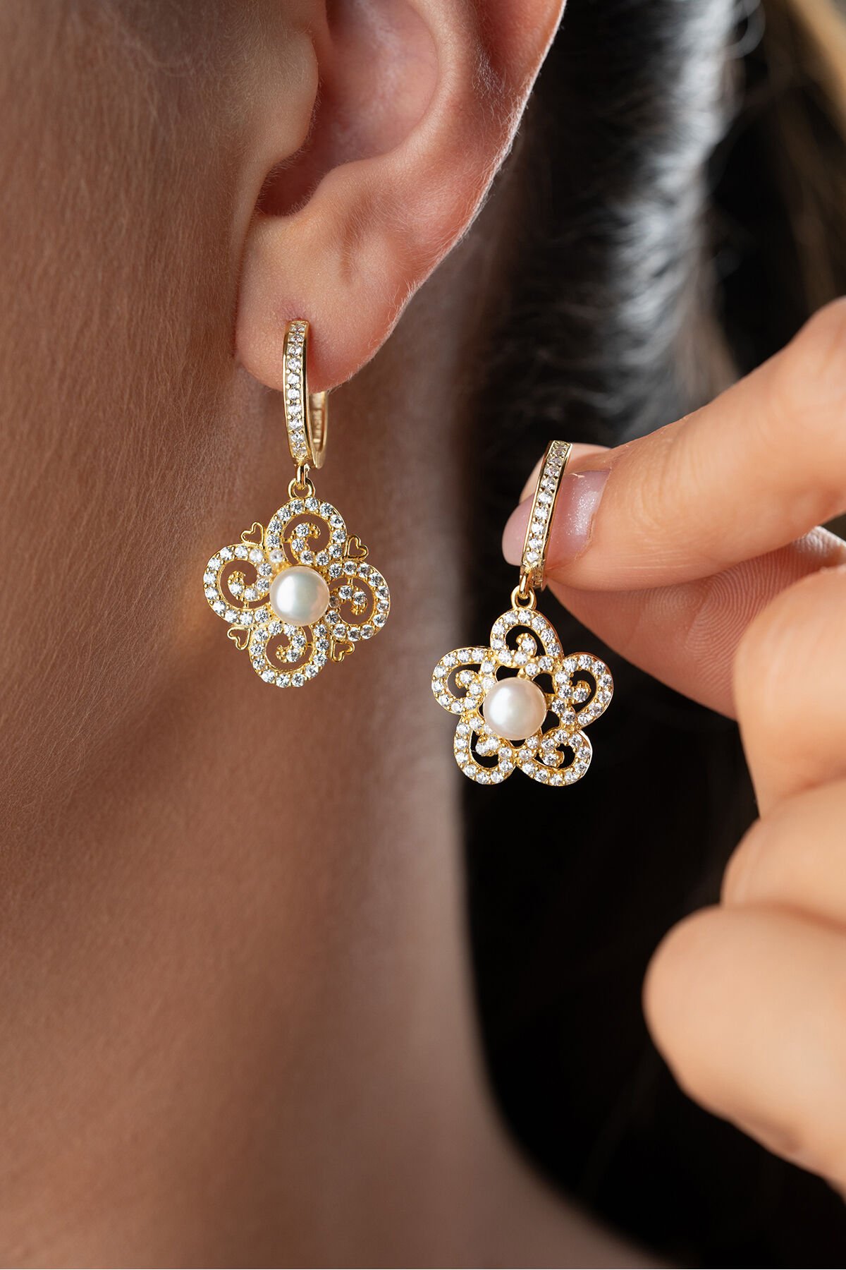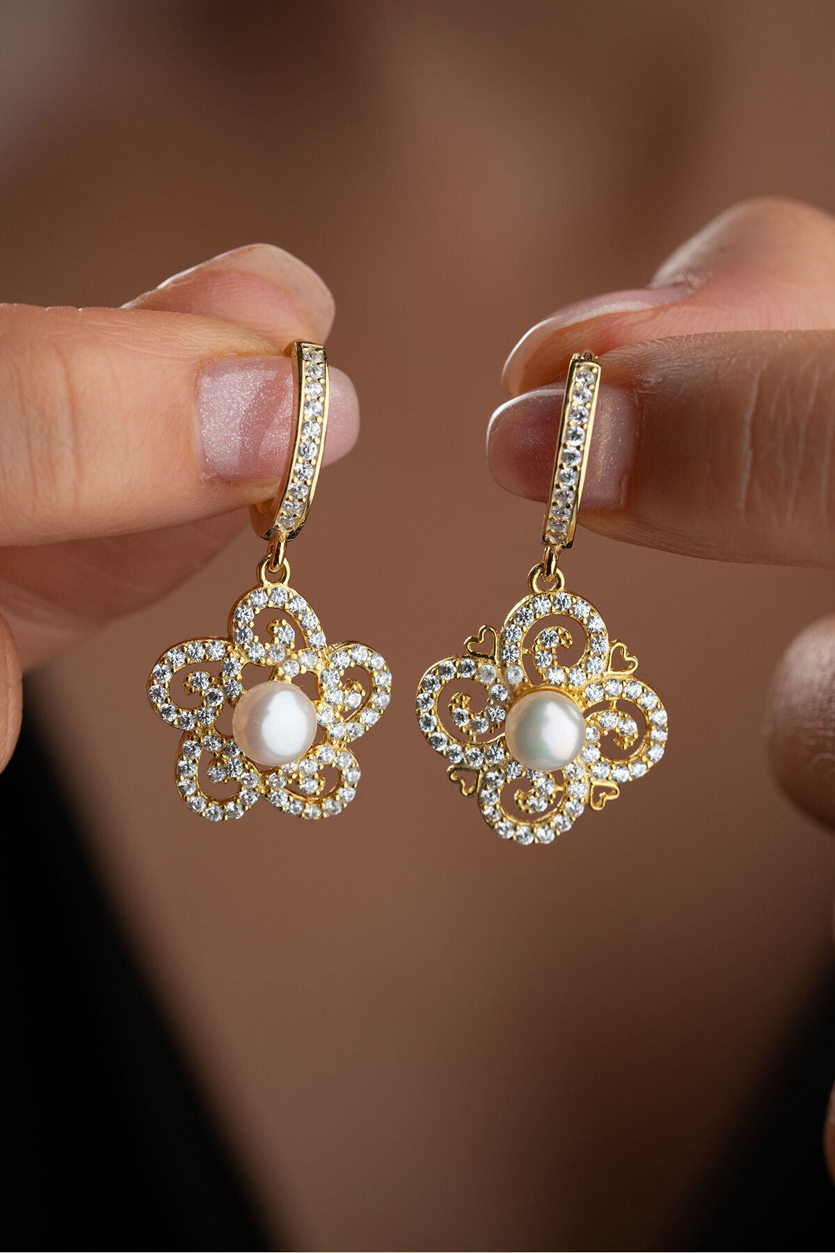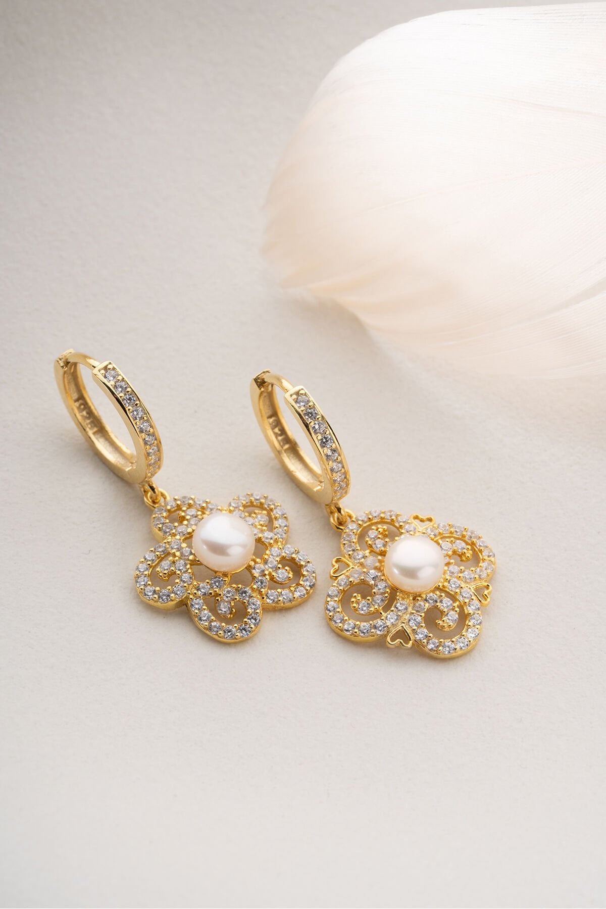 925 Ayar Gümüş İnci Model Altın Kaplama Küpe