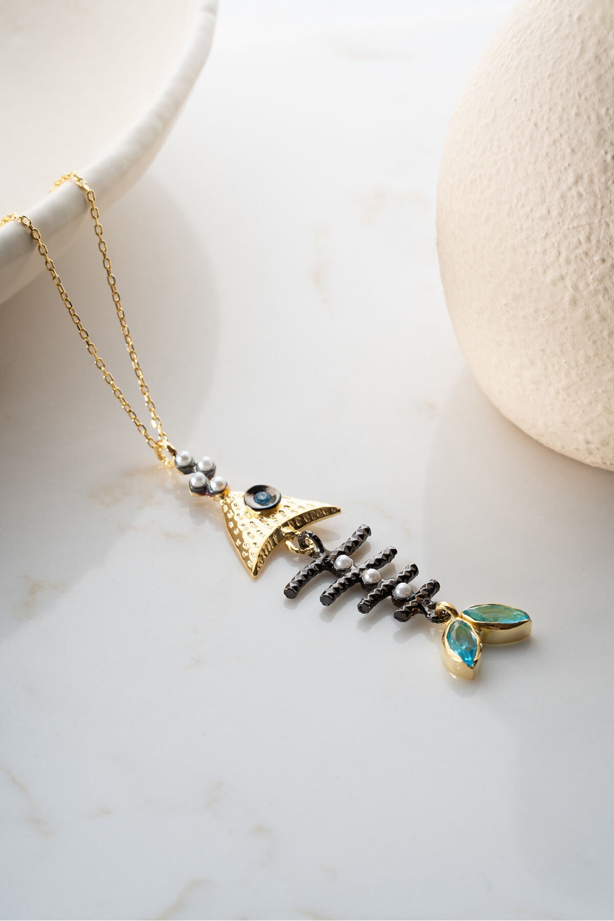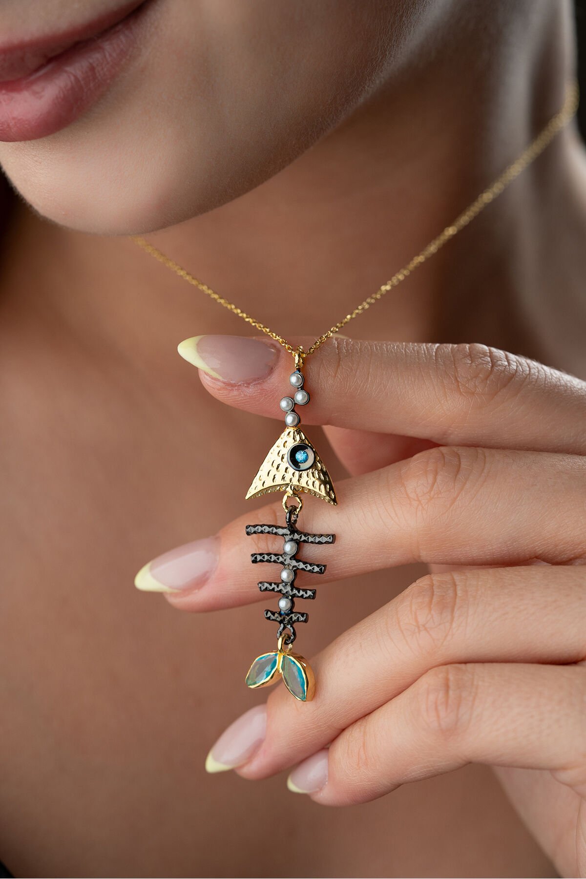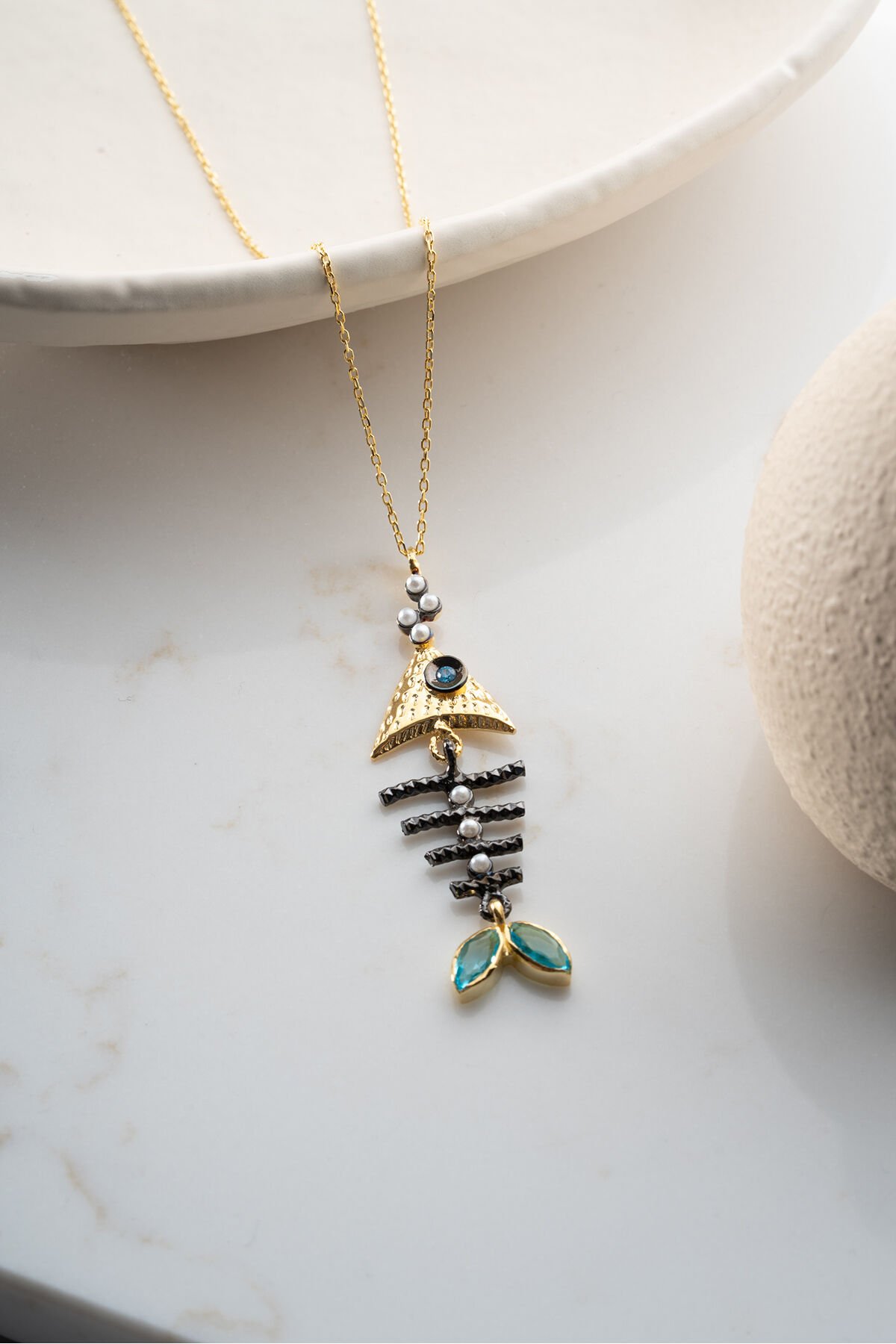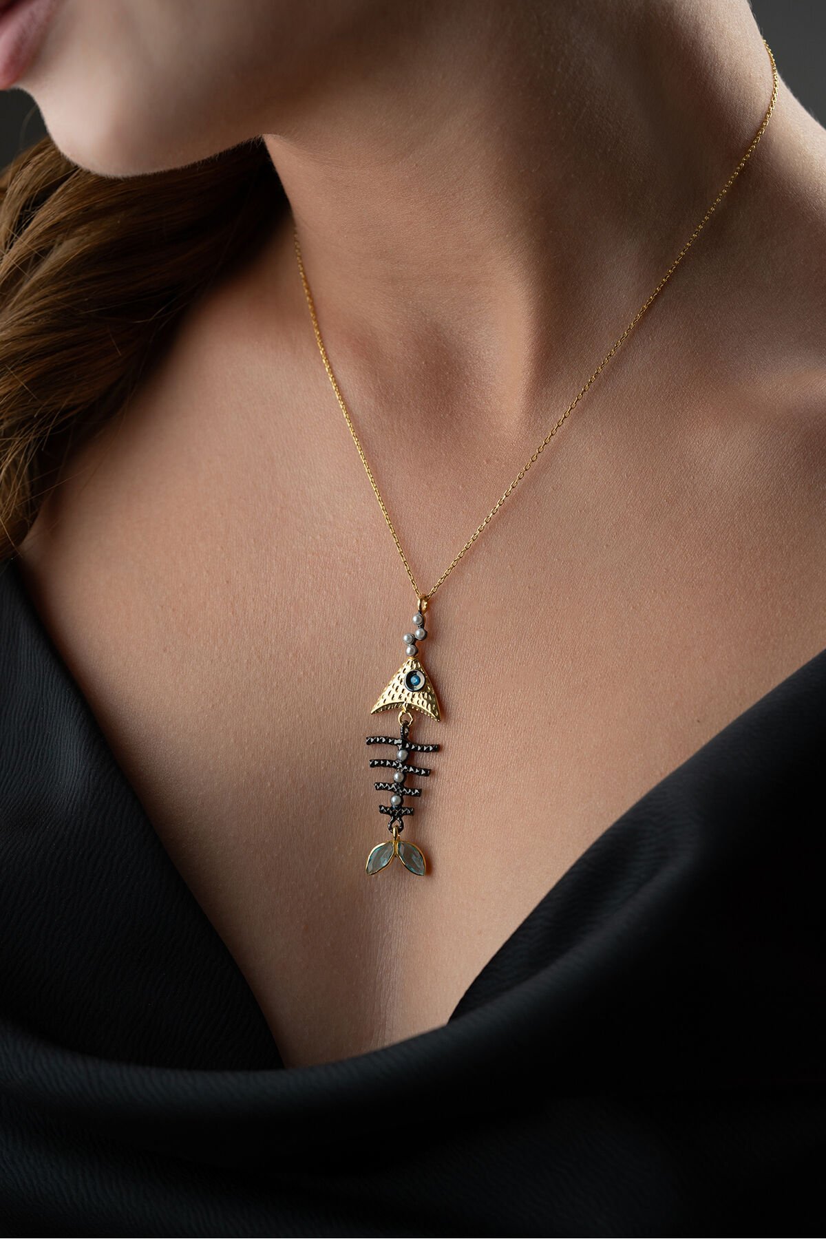 925 Ayar Gümüş İncili Balık Kılçığı Kolye