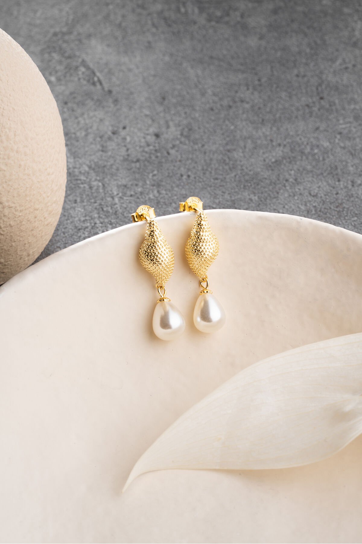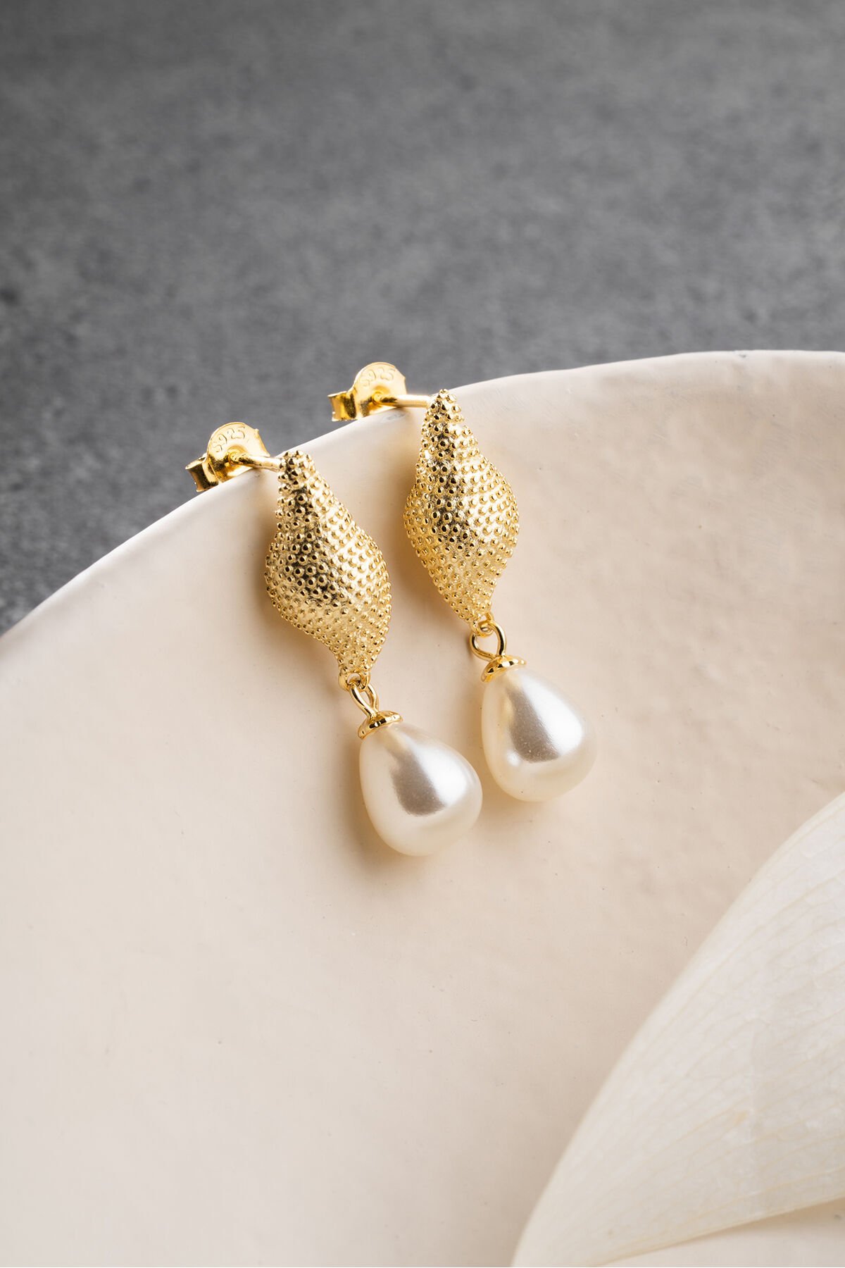 925 Ayar Gümüş İncili Deniz Kabuğu Küpe