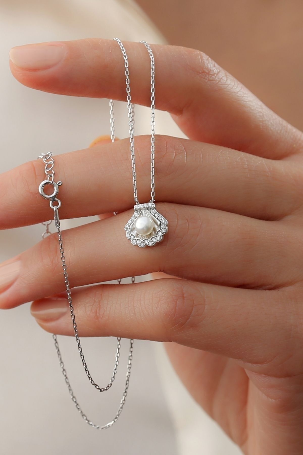 925 Ayar Gümüş Incili Kolye
