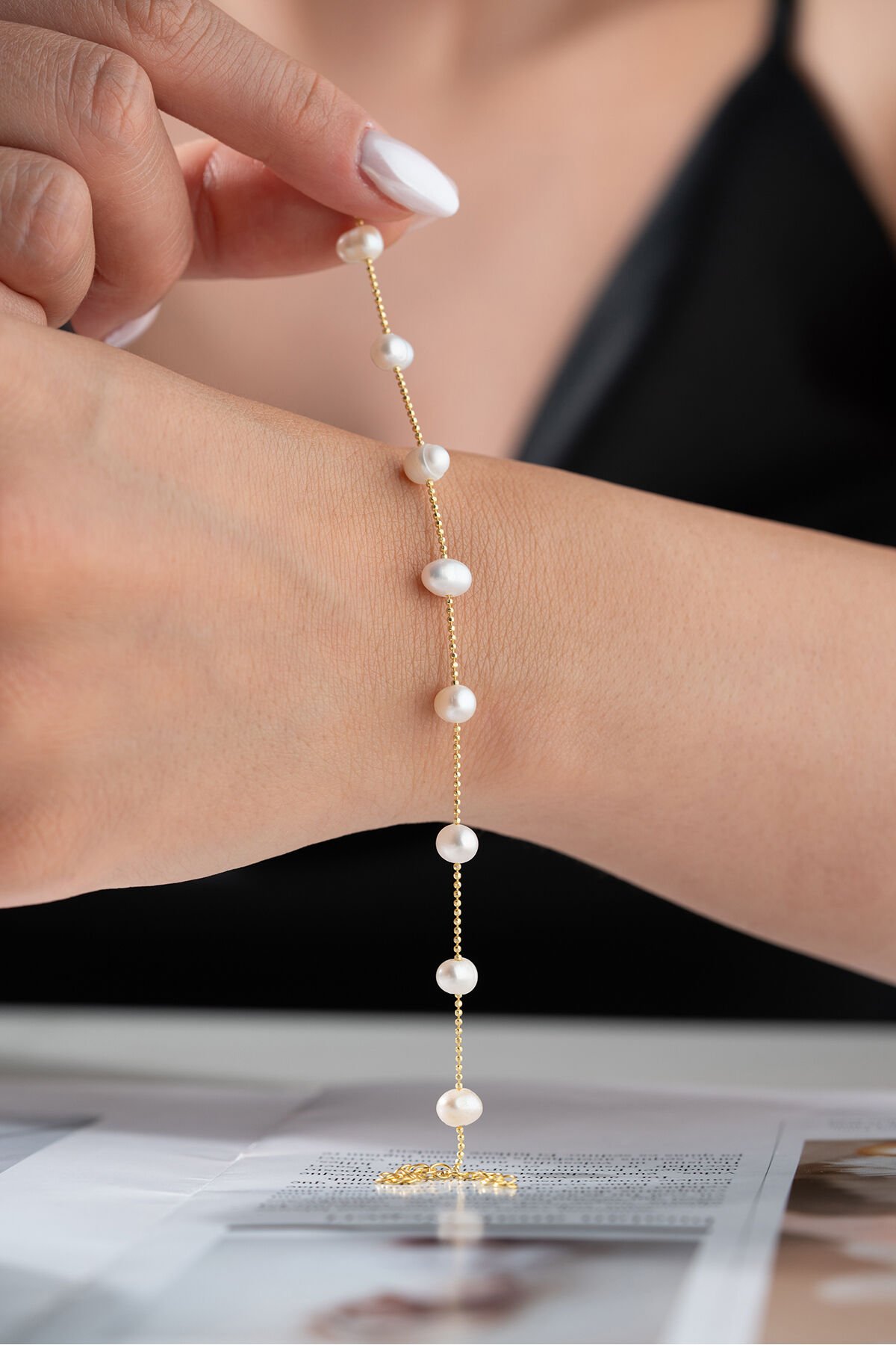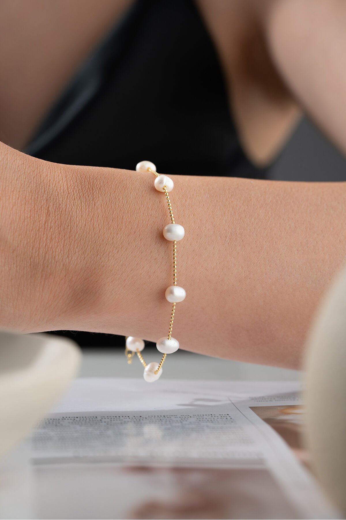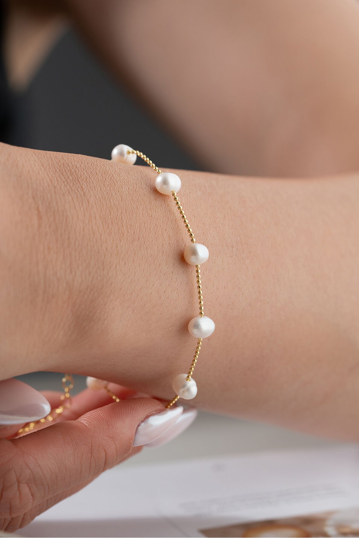 925 Ayar Gümüş İncili Zincir Bileklik