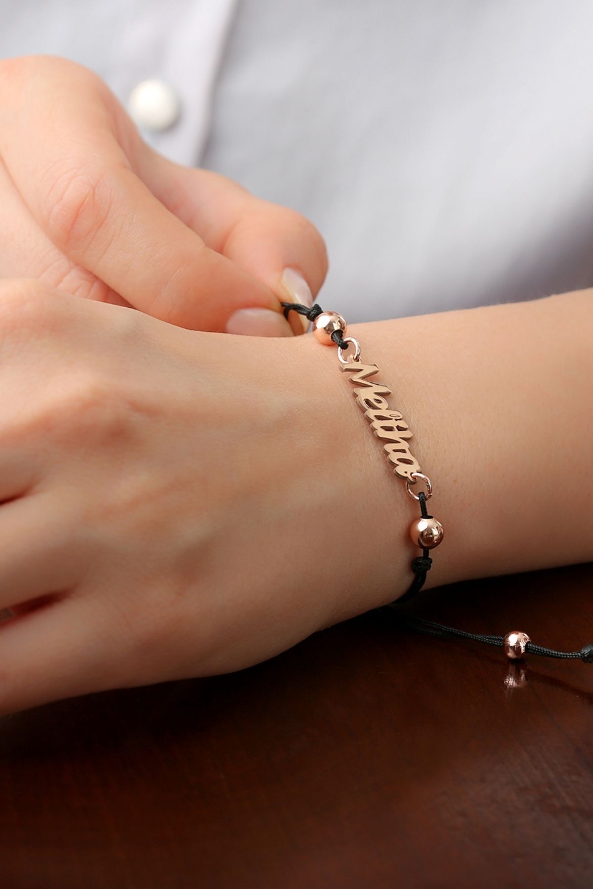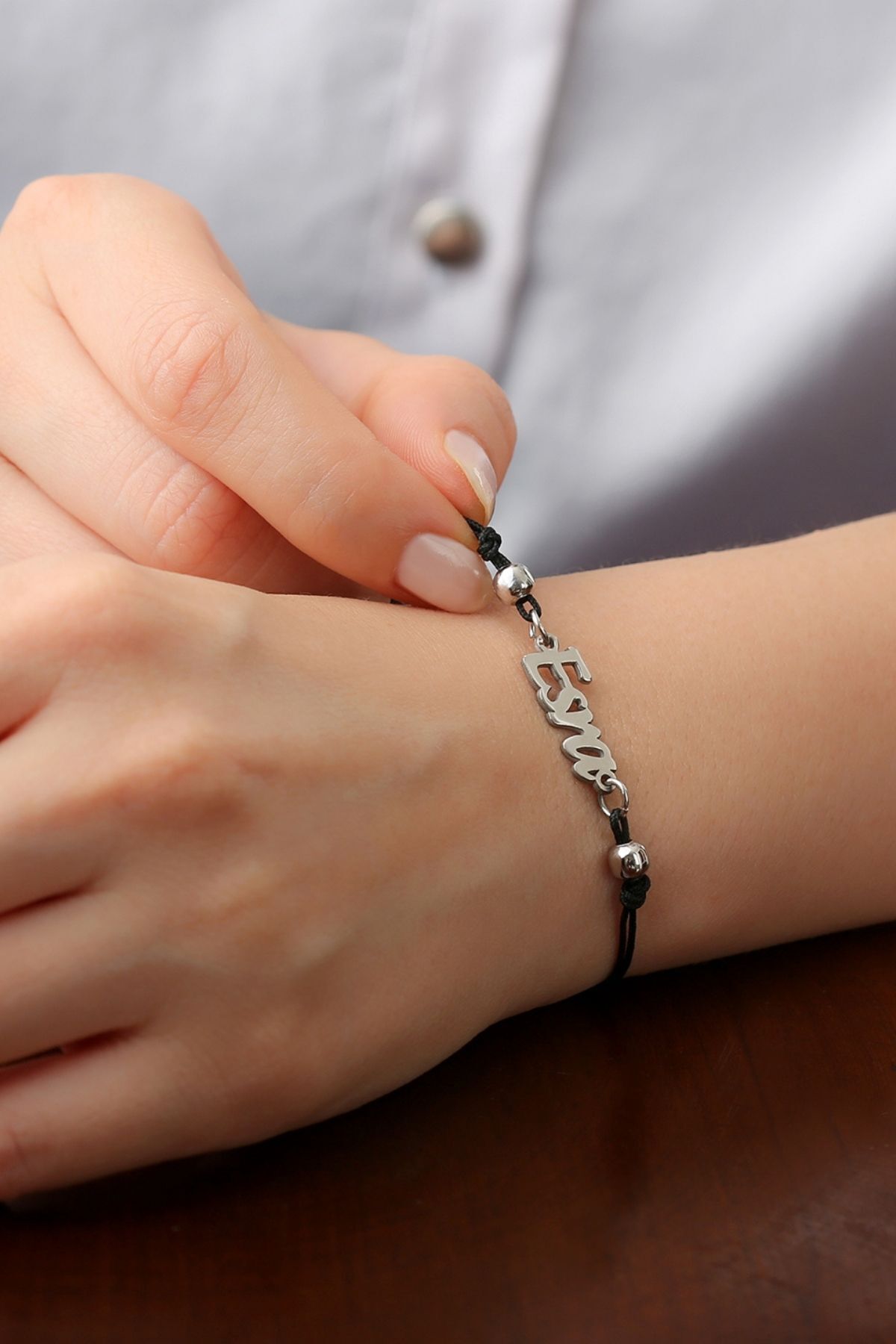 925 Ayar Gümüş Ipli El Yazılı Kişiye Özel Bileklik