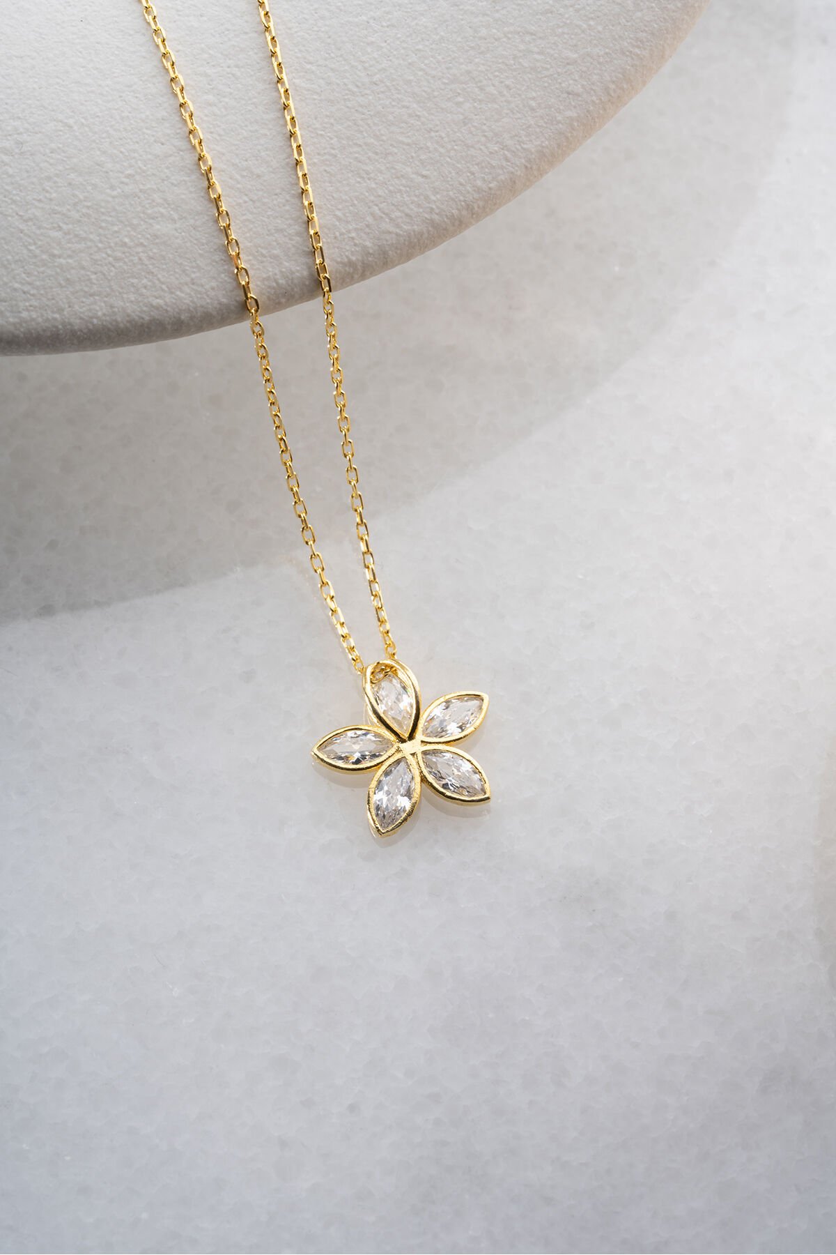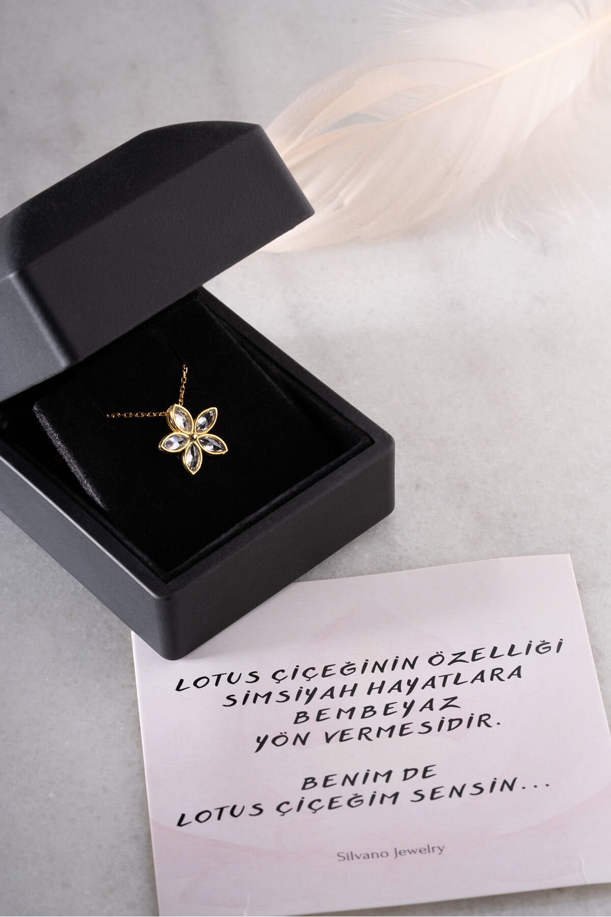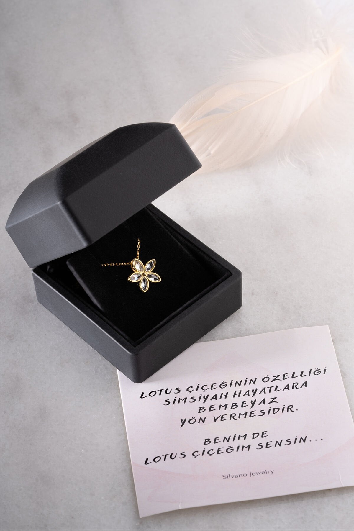 925 Ayar Gümüş Işıklı Kutu Altın Kaplama Nergis Kolye