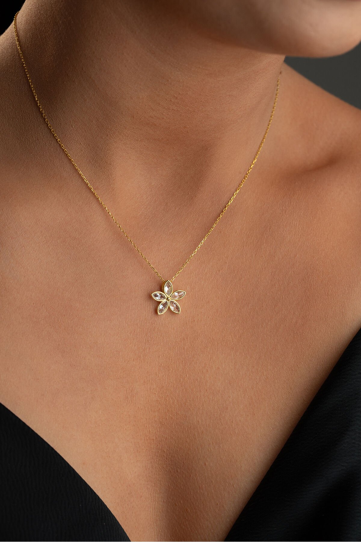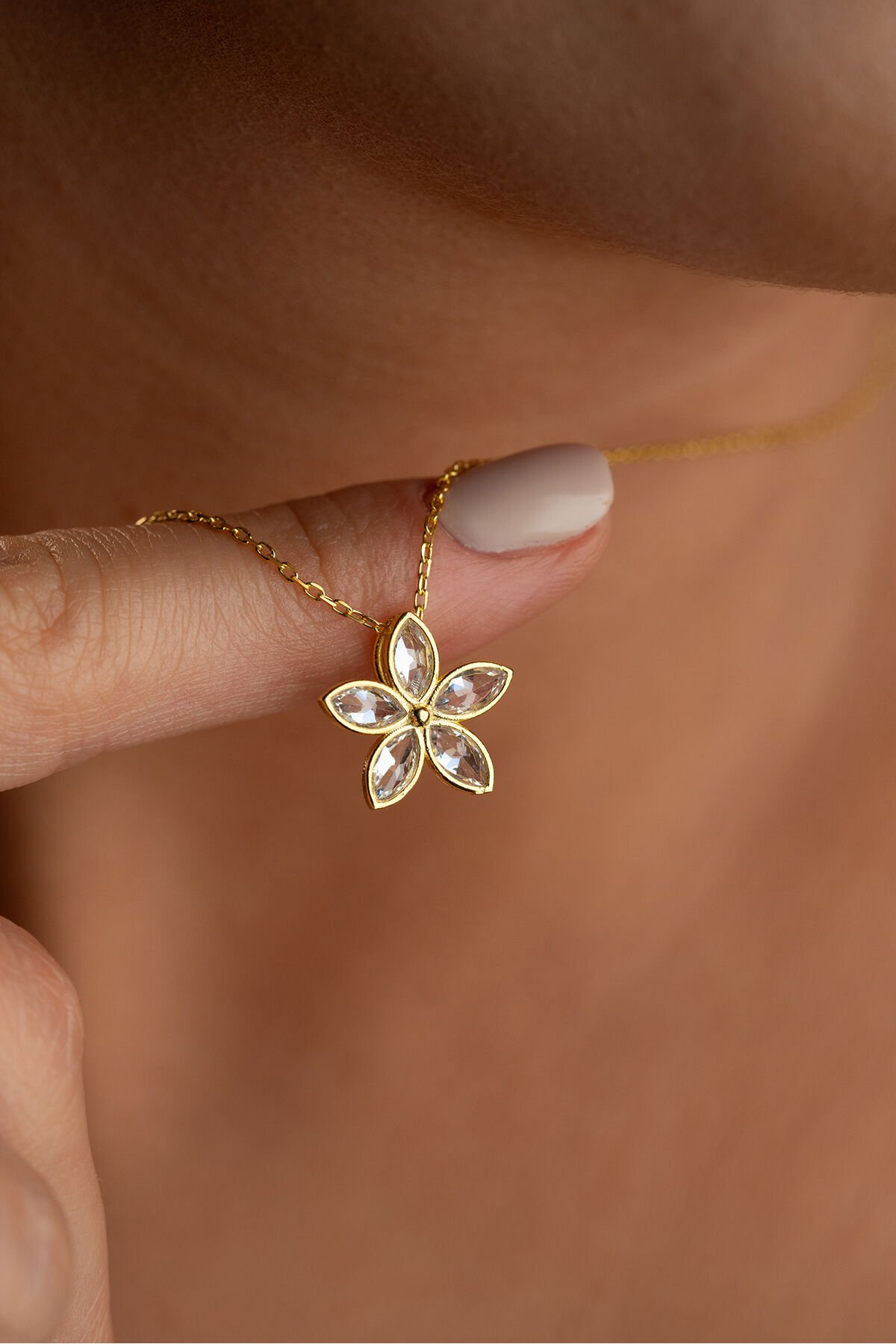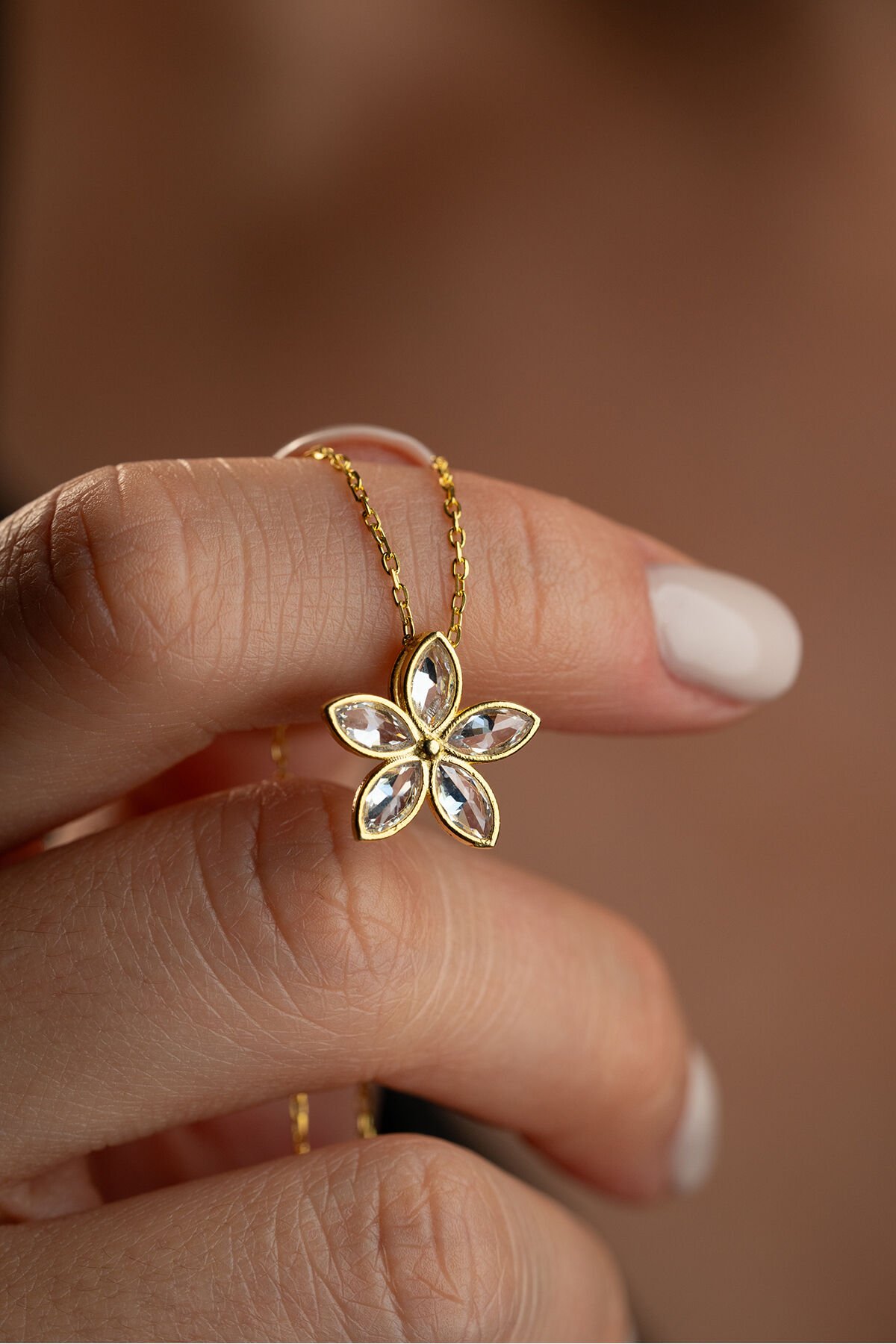 925 Ayar Gümüş Işıklı Kutu Altın Kaplama Nergis Kolye