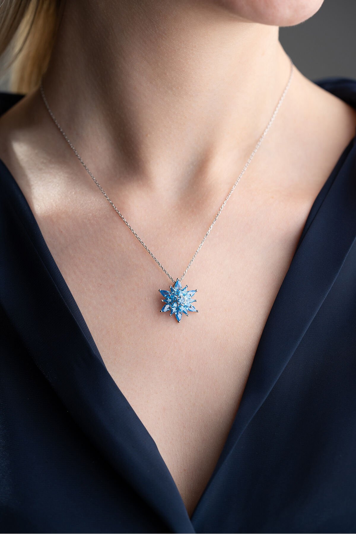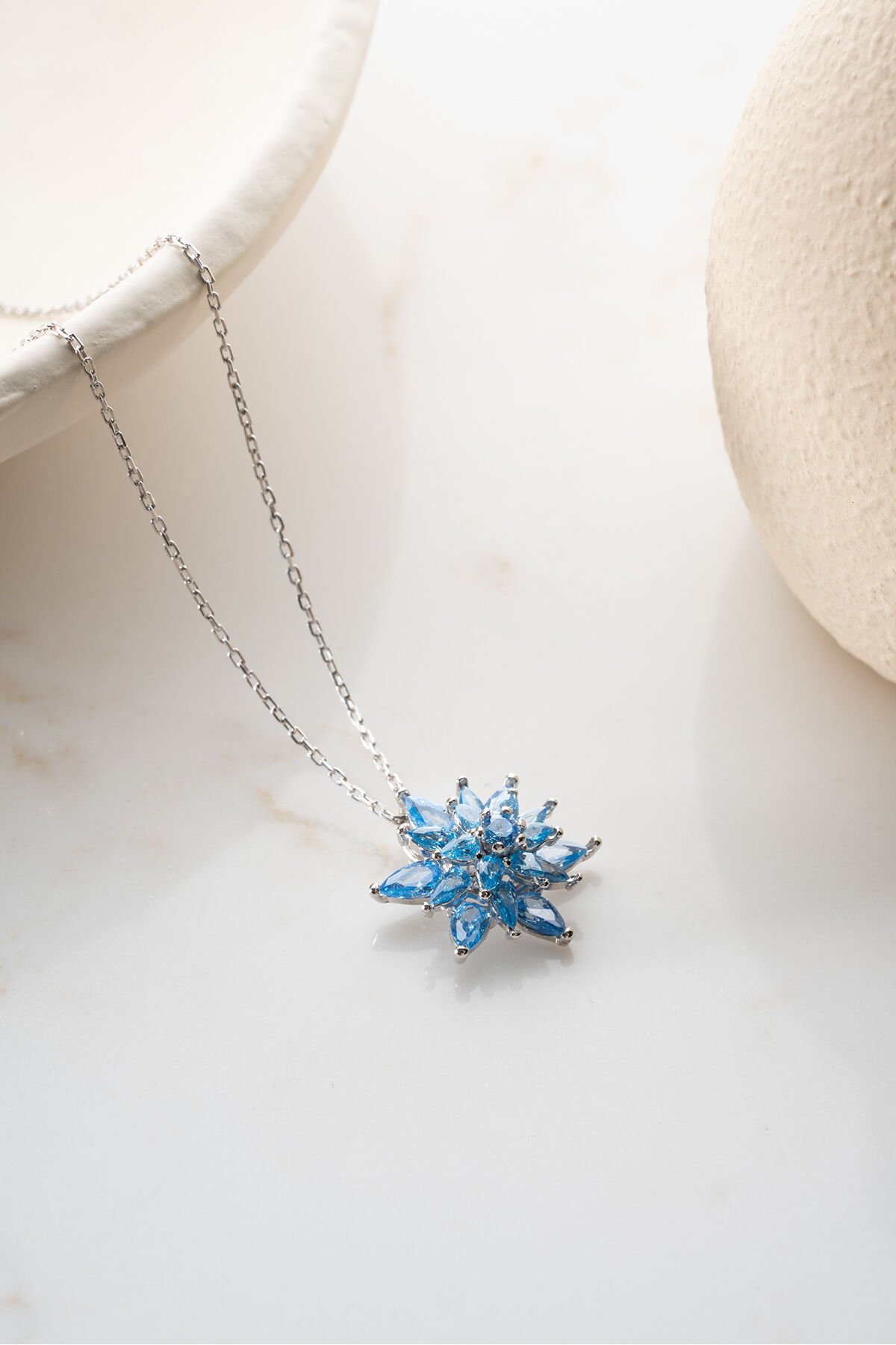 925 Ayar Gümüş Işıklı Kutu Aqua Taşlı Lotus Kolye