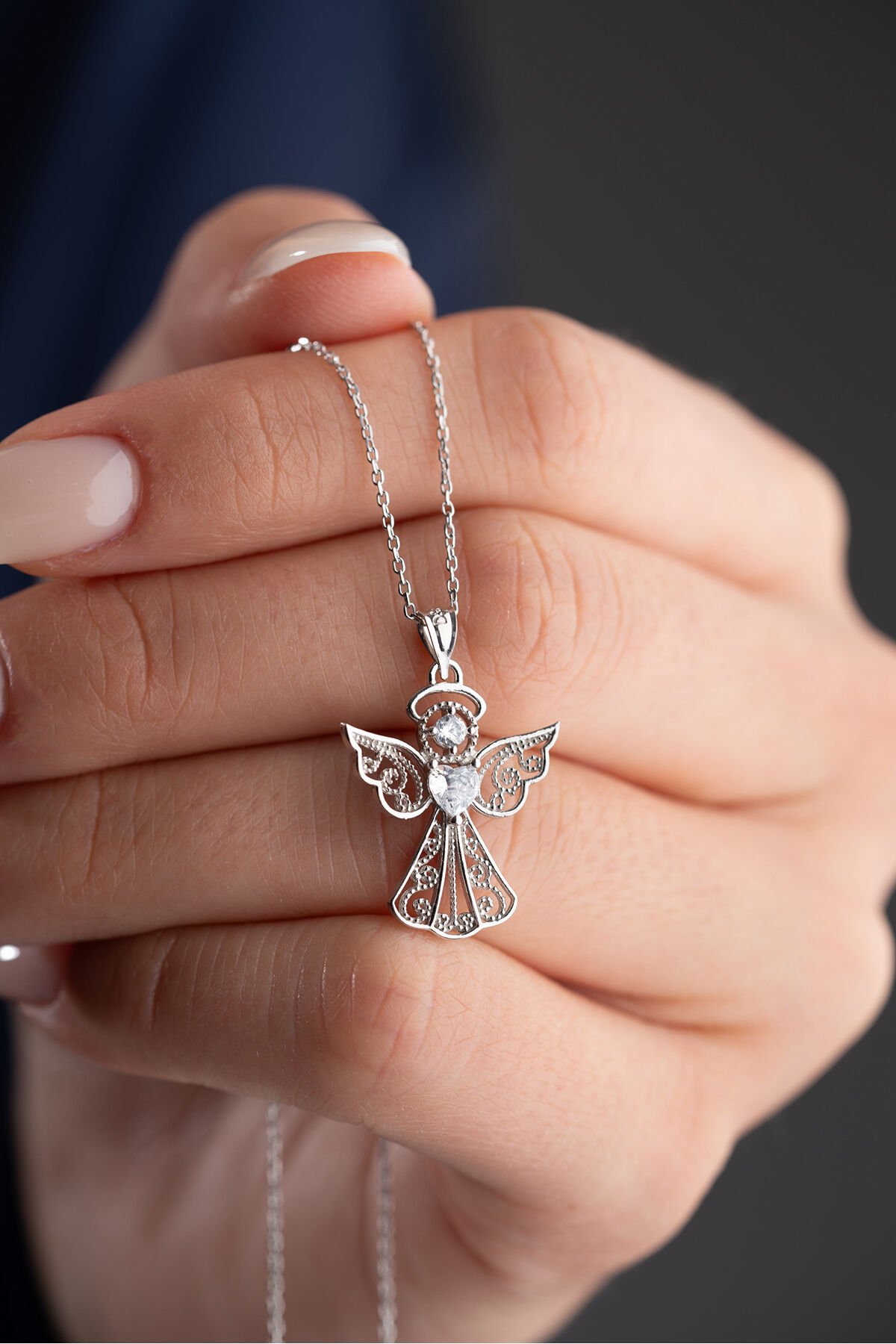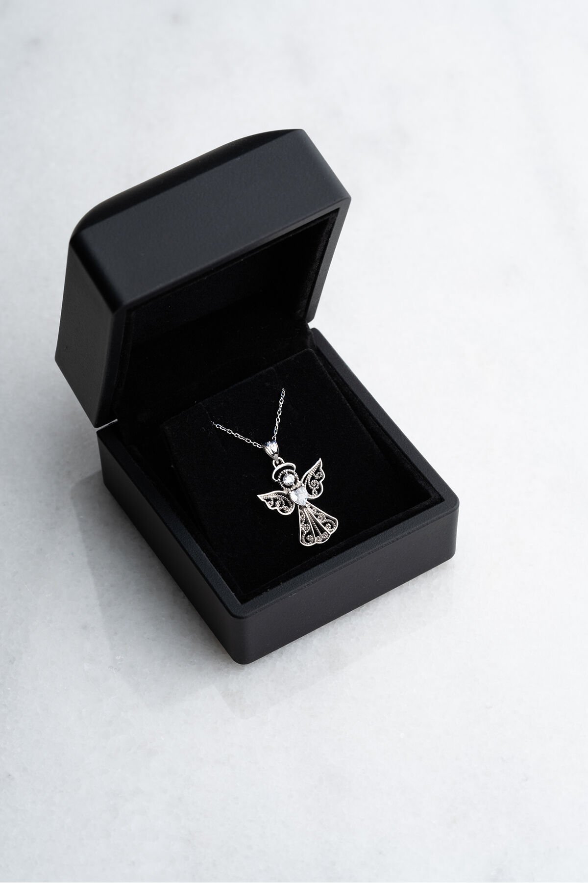 925 Ayar Gümüş Işıklı Kutu Kalp Tektaş Melek Kolye