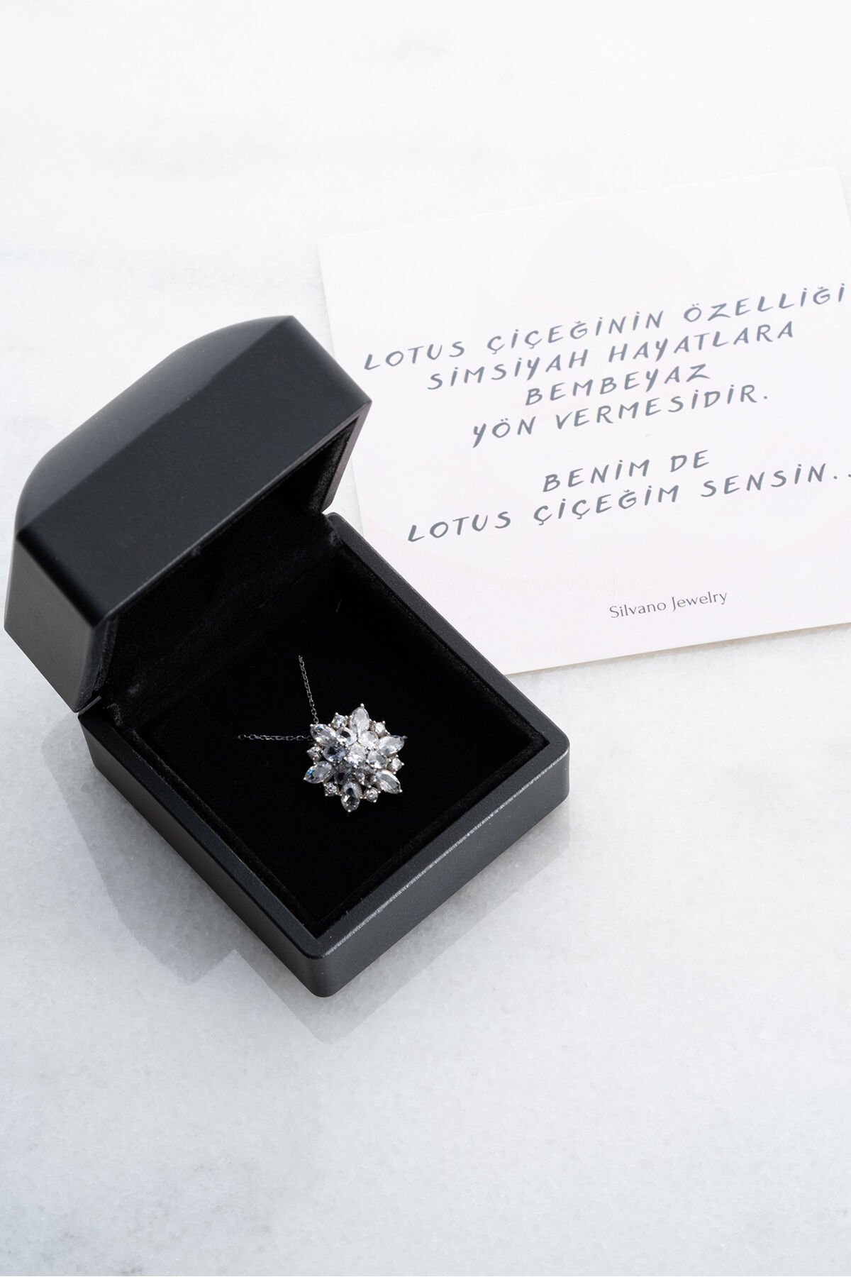 925 Ayar Gümüş Işıklı Kutu Lotus Kolye