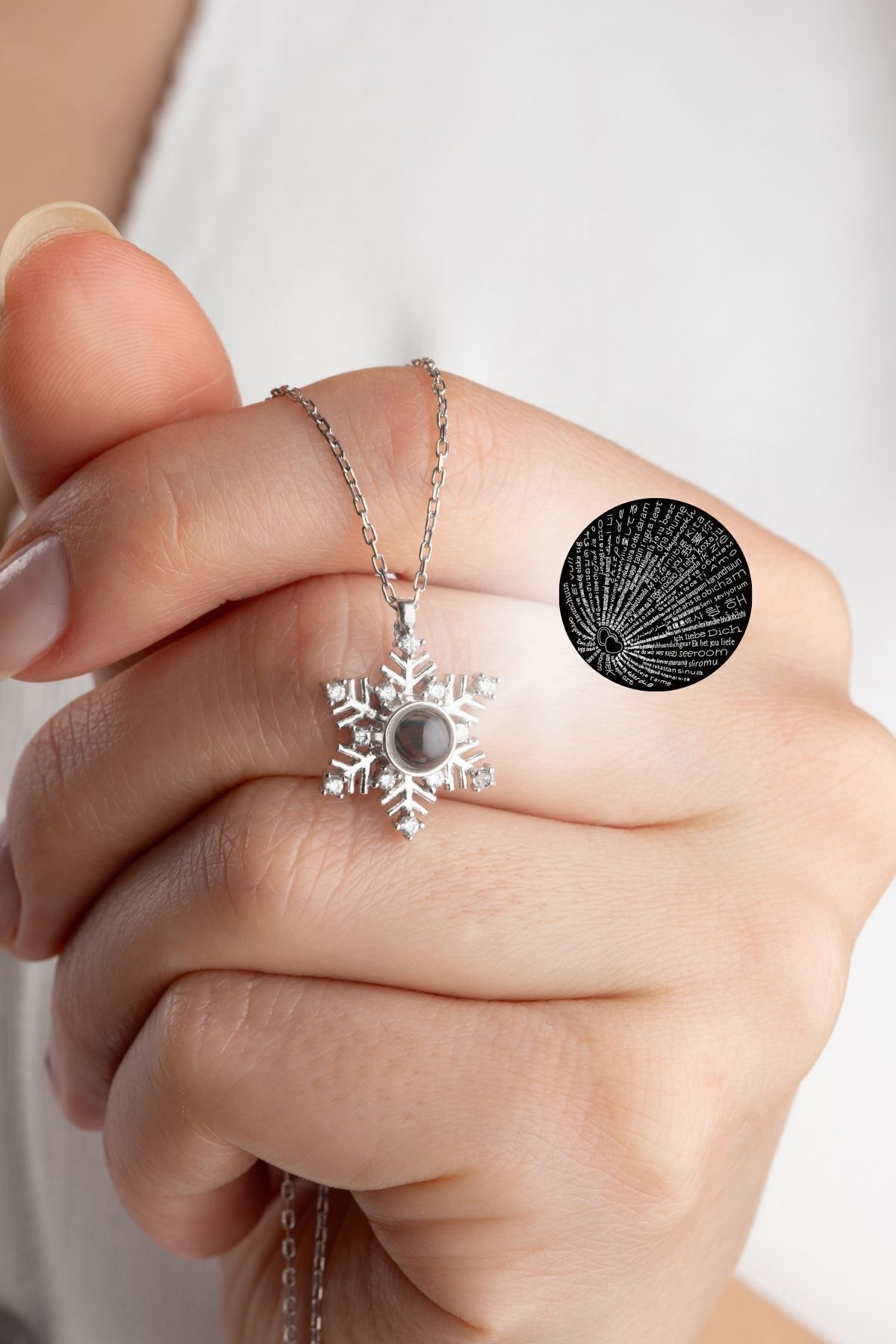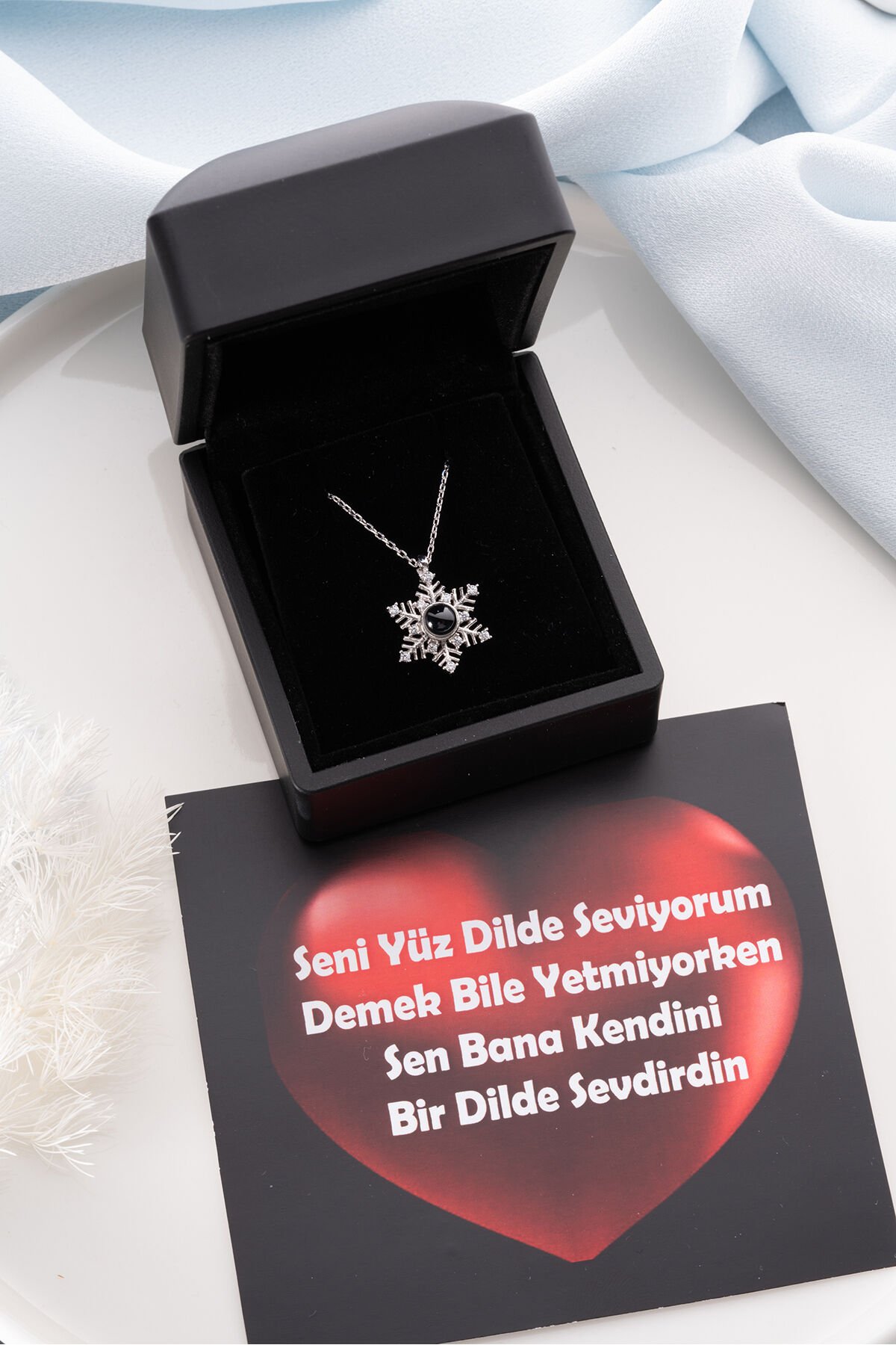 925 Ayar Gümüş Işıklı Kutuda 100 Dilde Seni Seviyorum Kartanesi Kolye