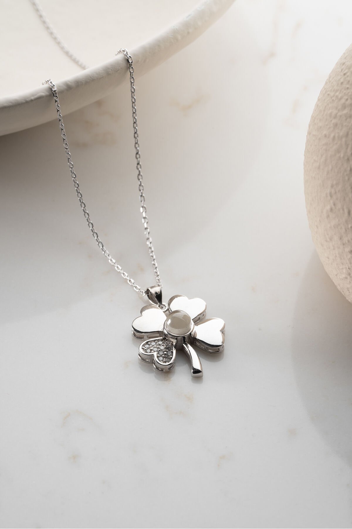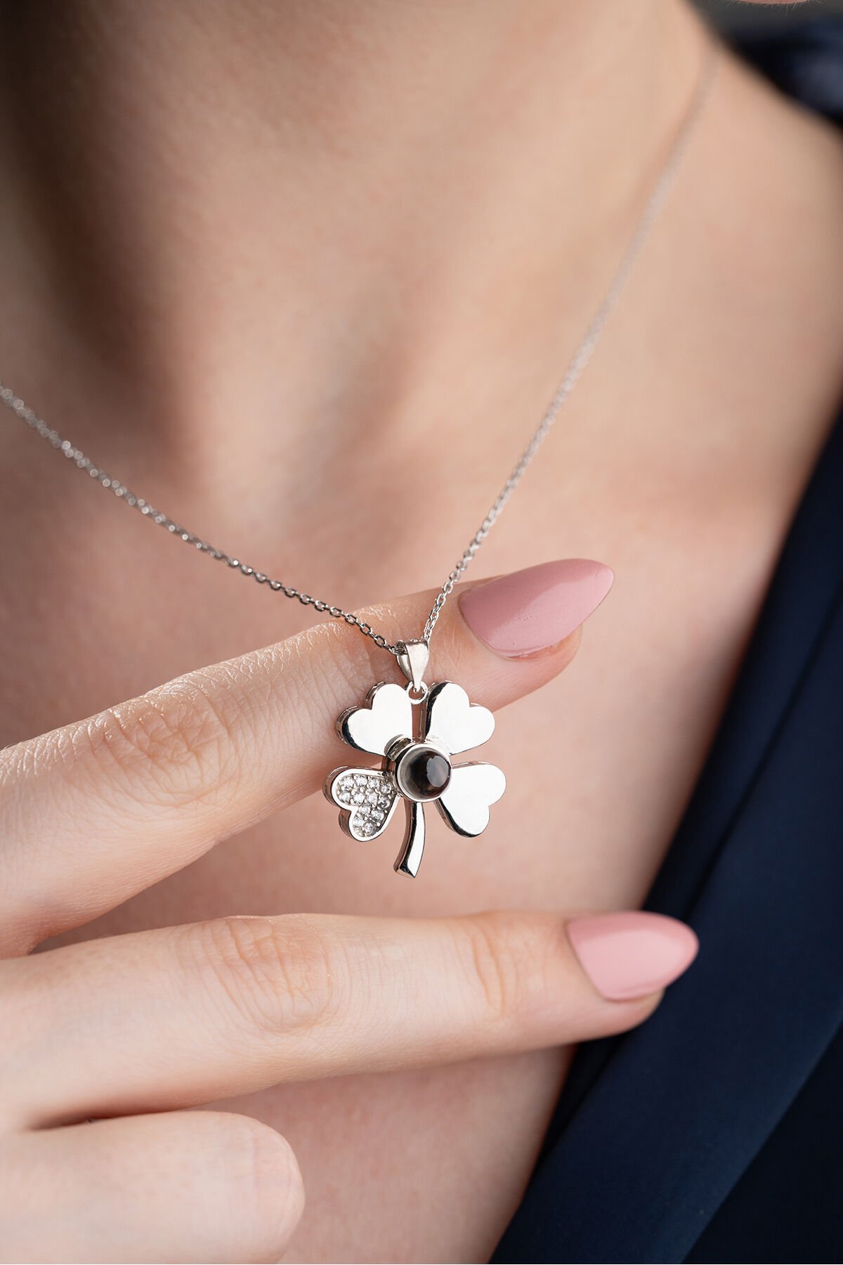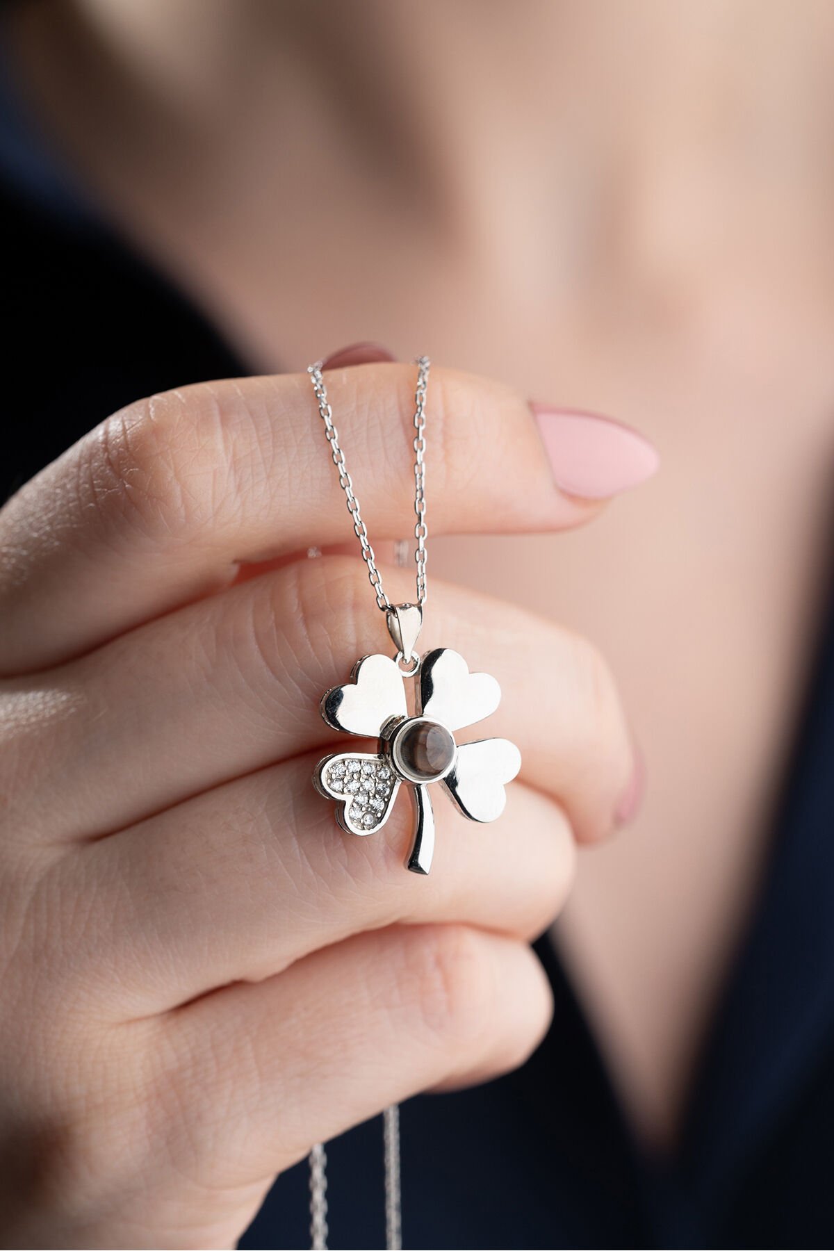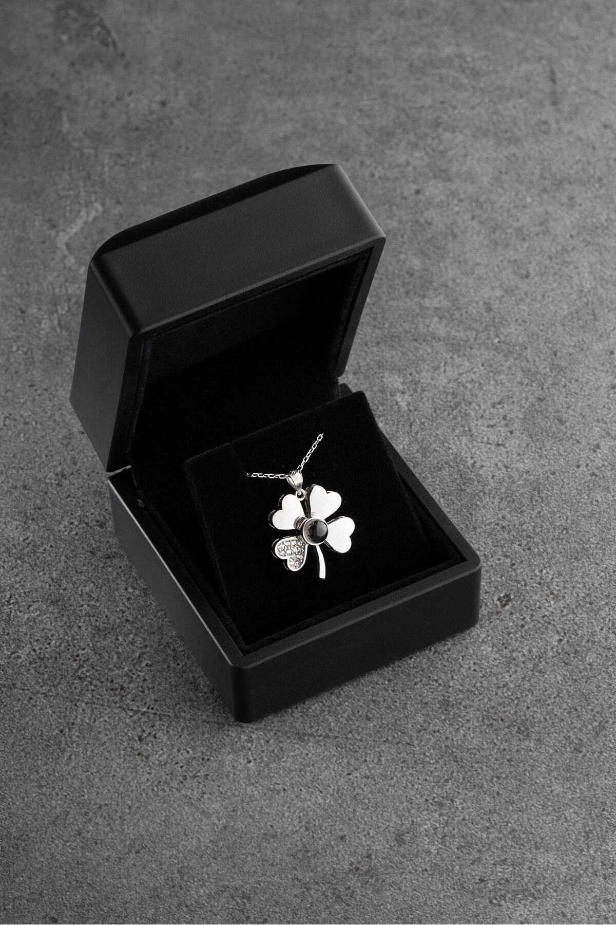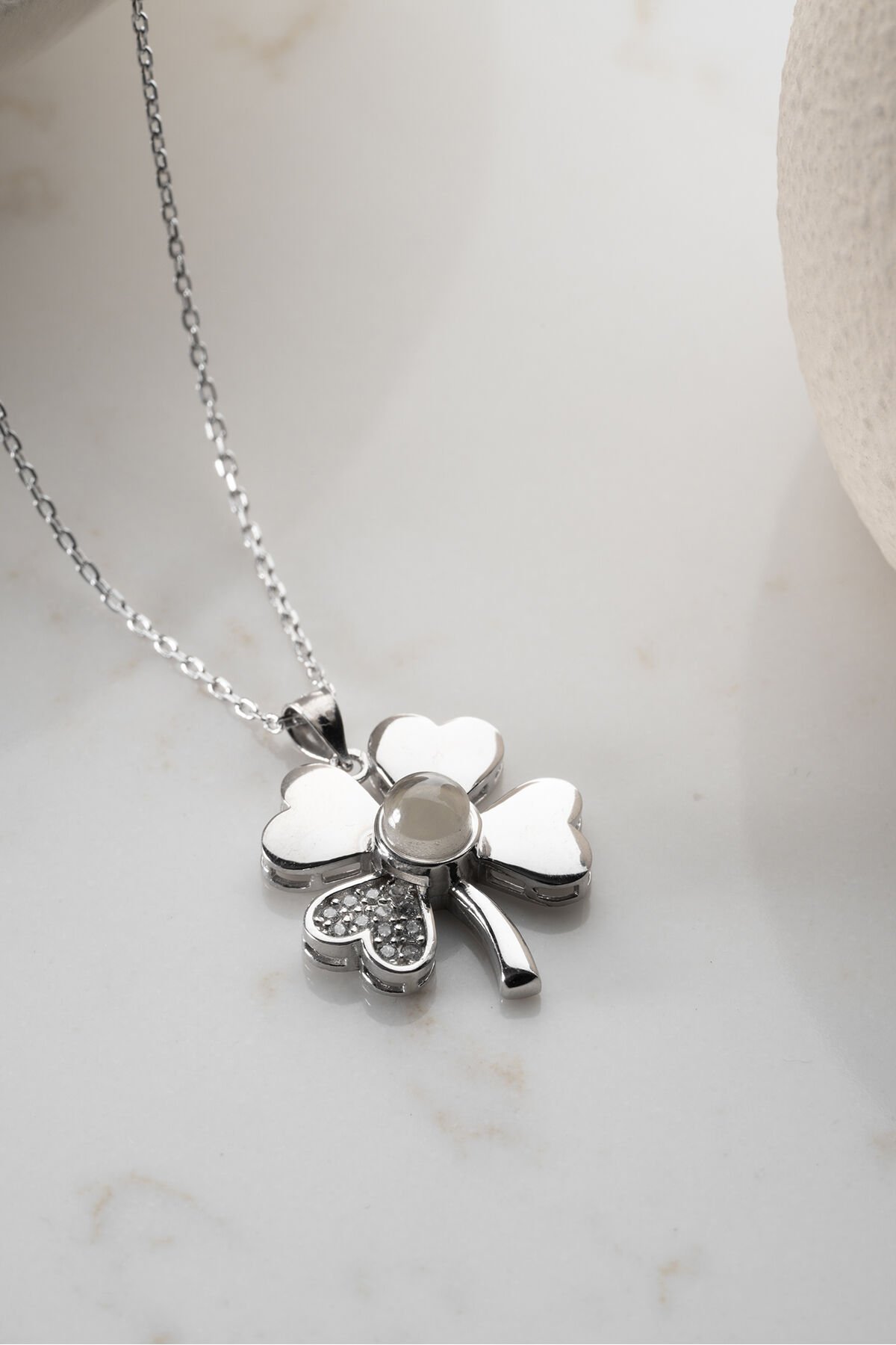 925 Ayar Gümüş Işıklı Kutuda 100 Dilde Seviyor Yonca Kolye