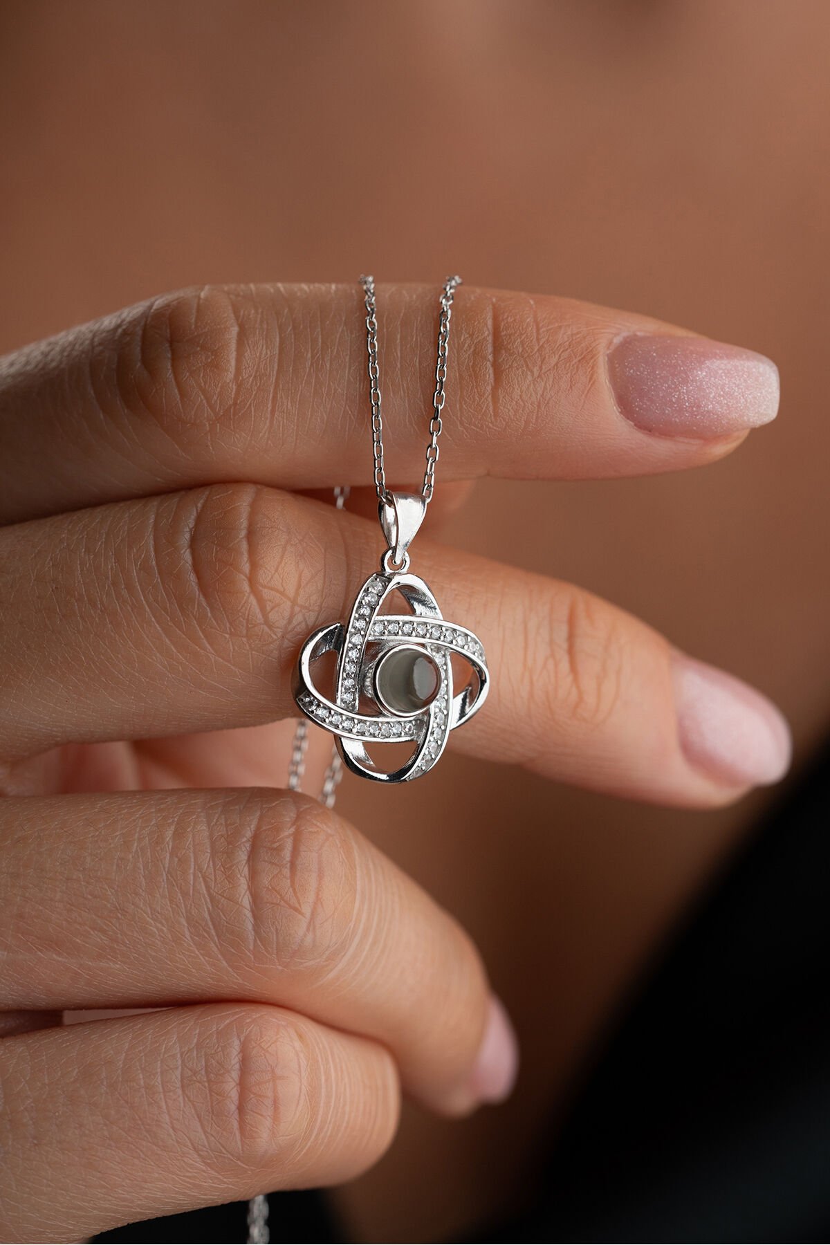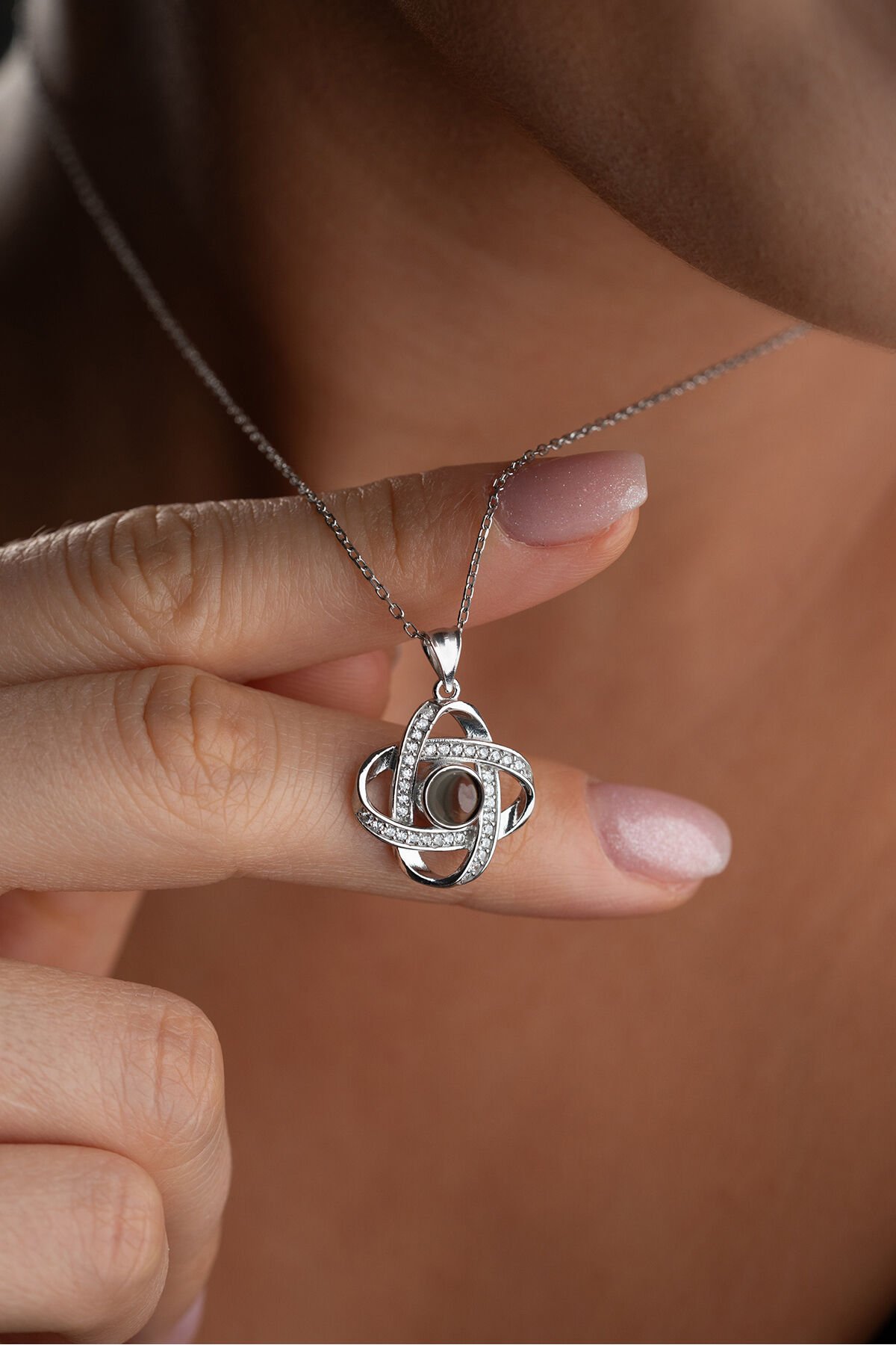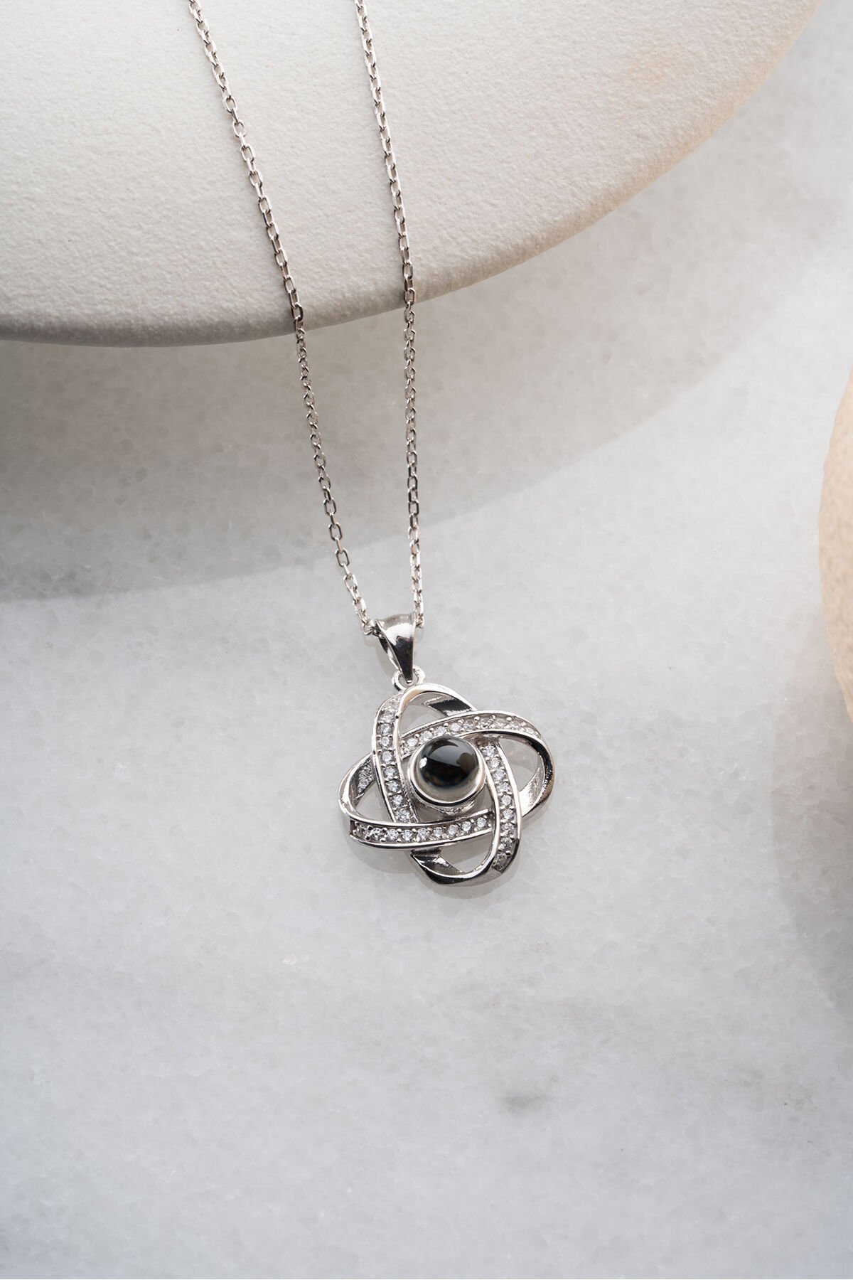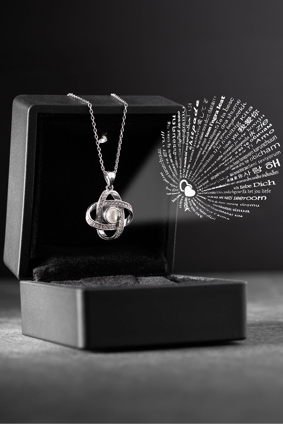 925 Ayar Gümüş Işıklı Kutuda Aşk Düğümü 100 Dilde Seviyor Kolye