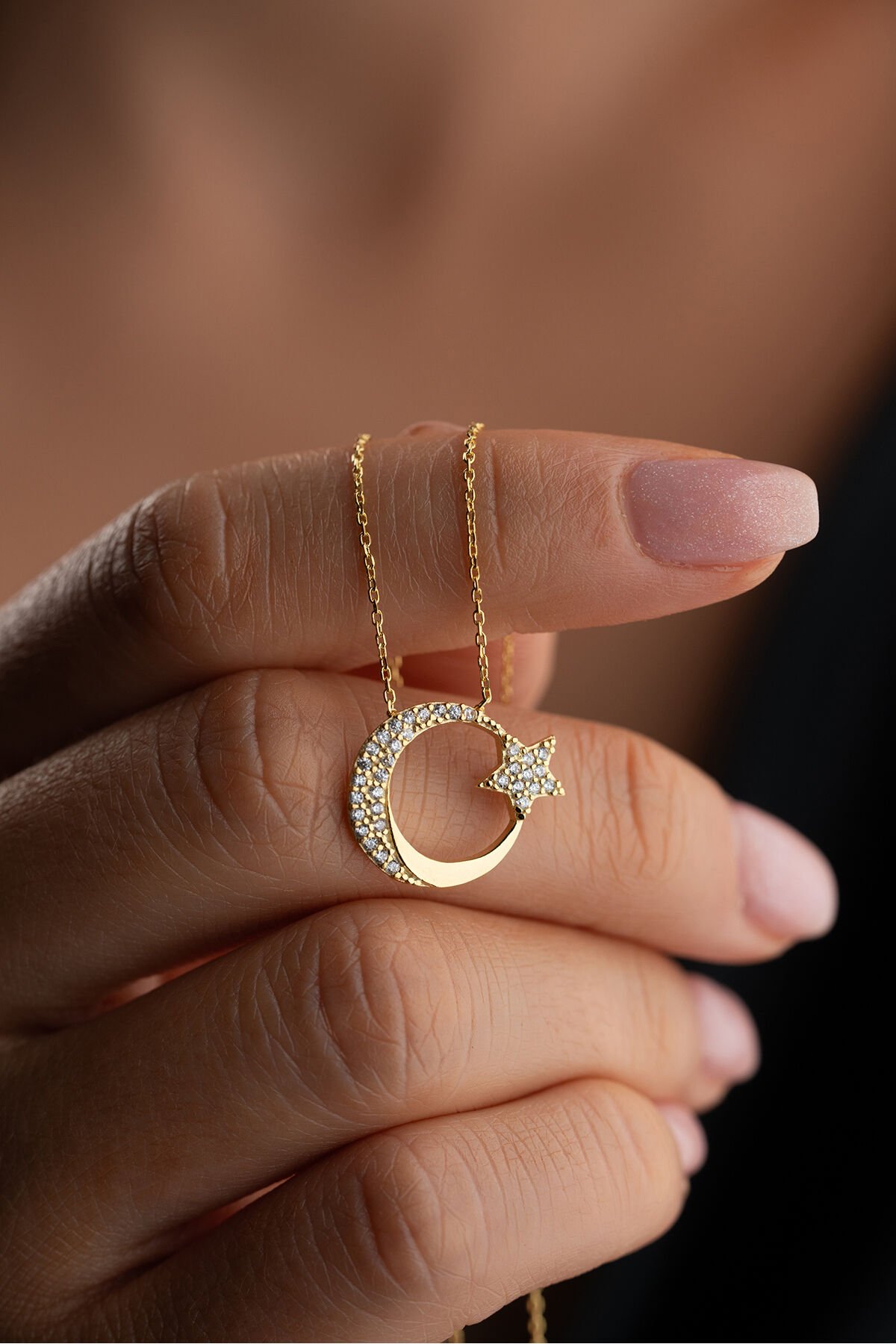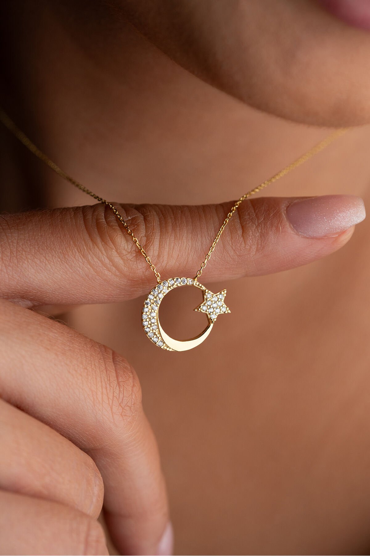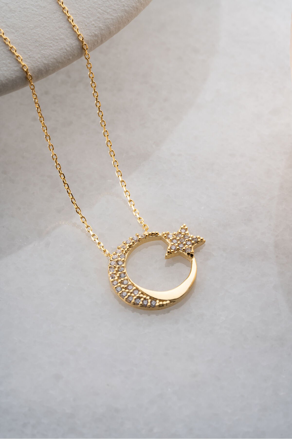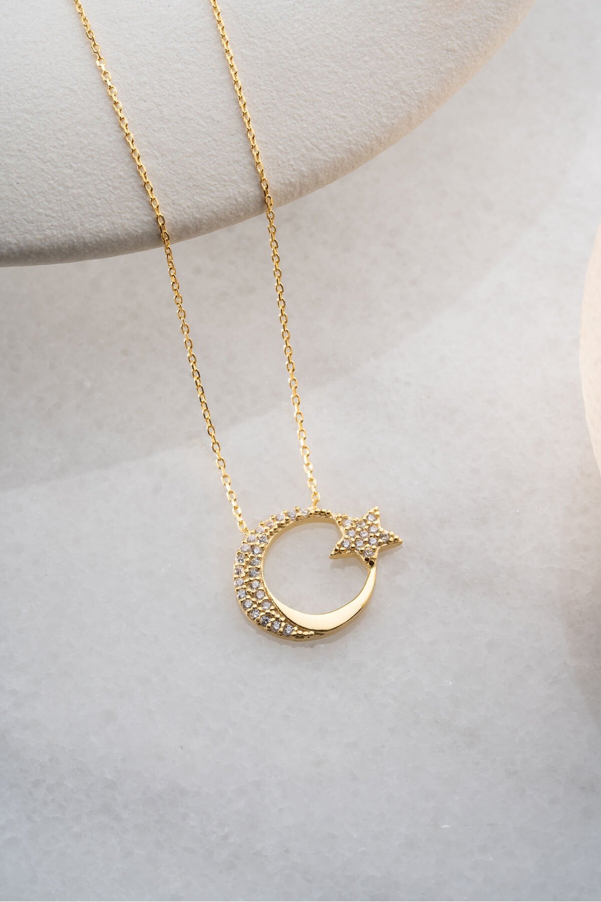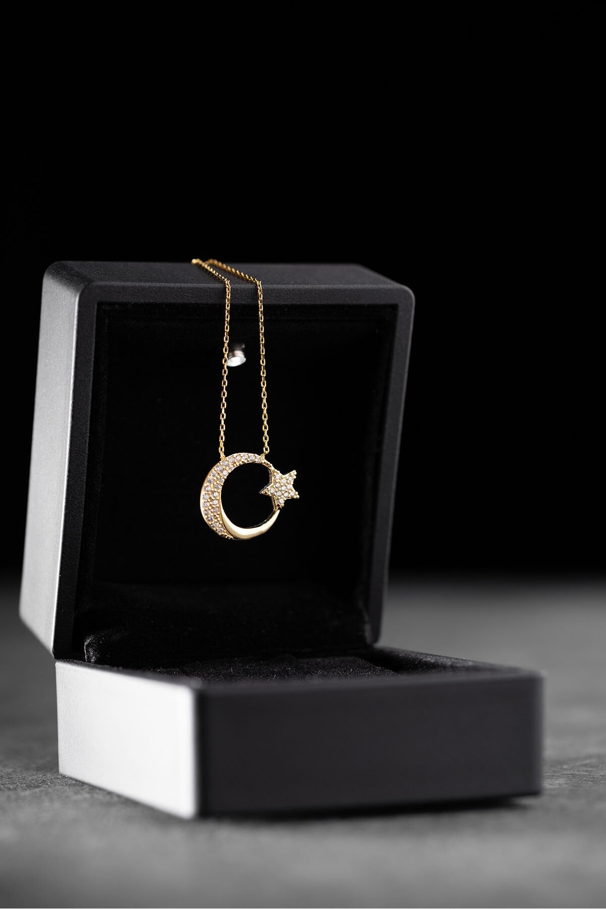 925 Ayar Gümüş Işıklı Kutuda Ayyıldız Kolye