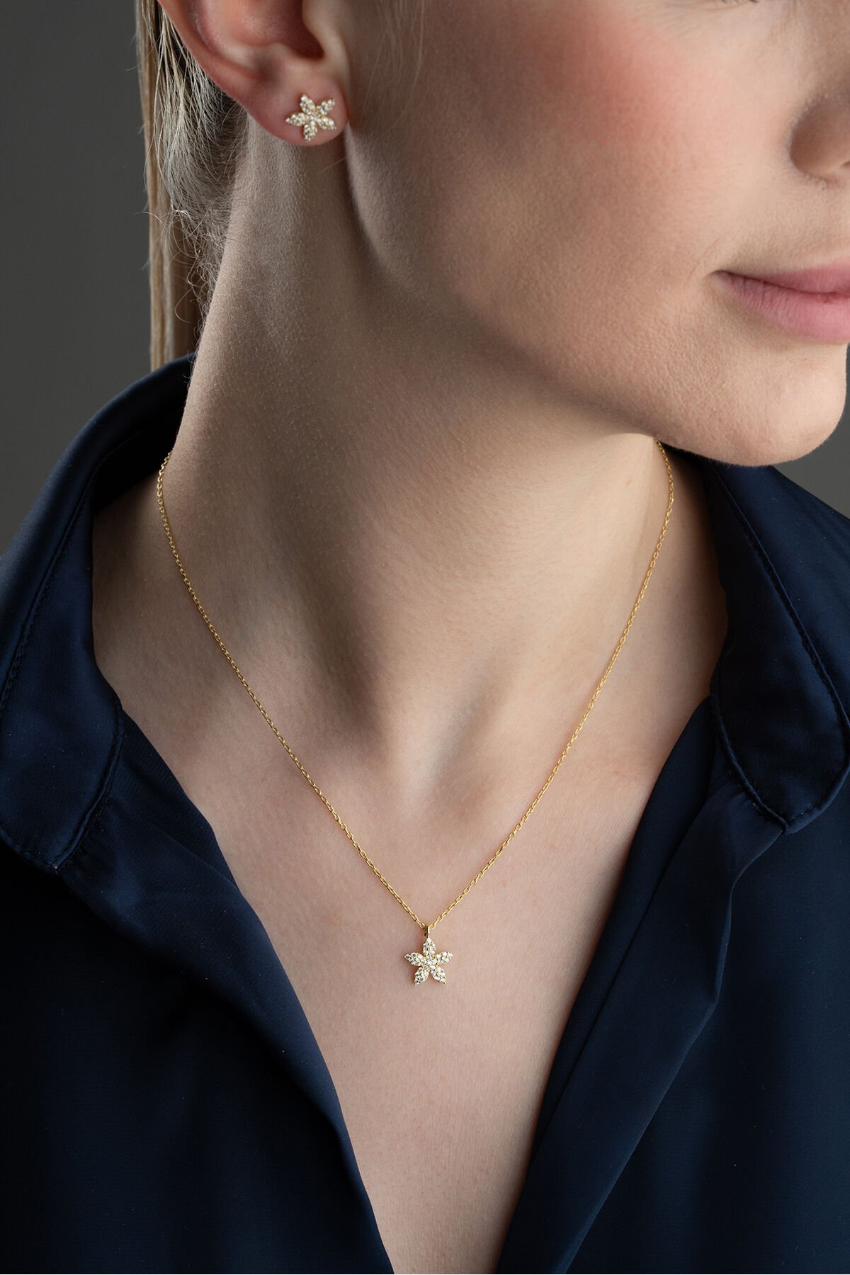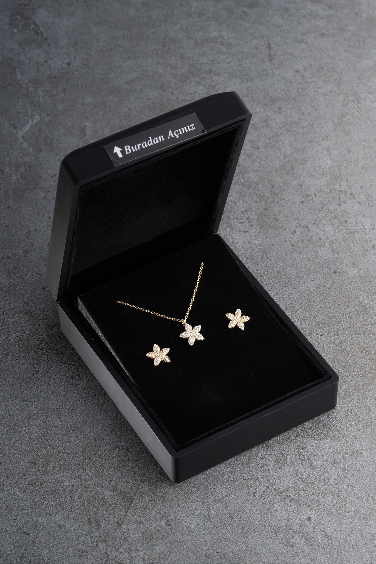 925 Ayar Gümüş Işıklı Kutuda Çiçek Model Takı Seti