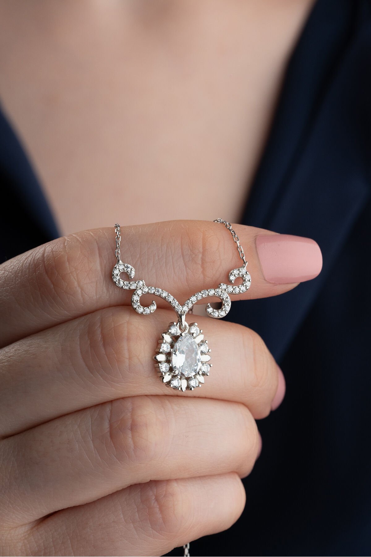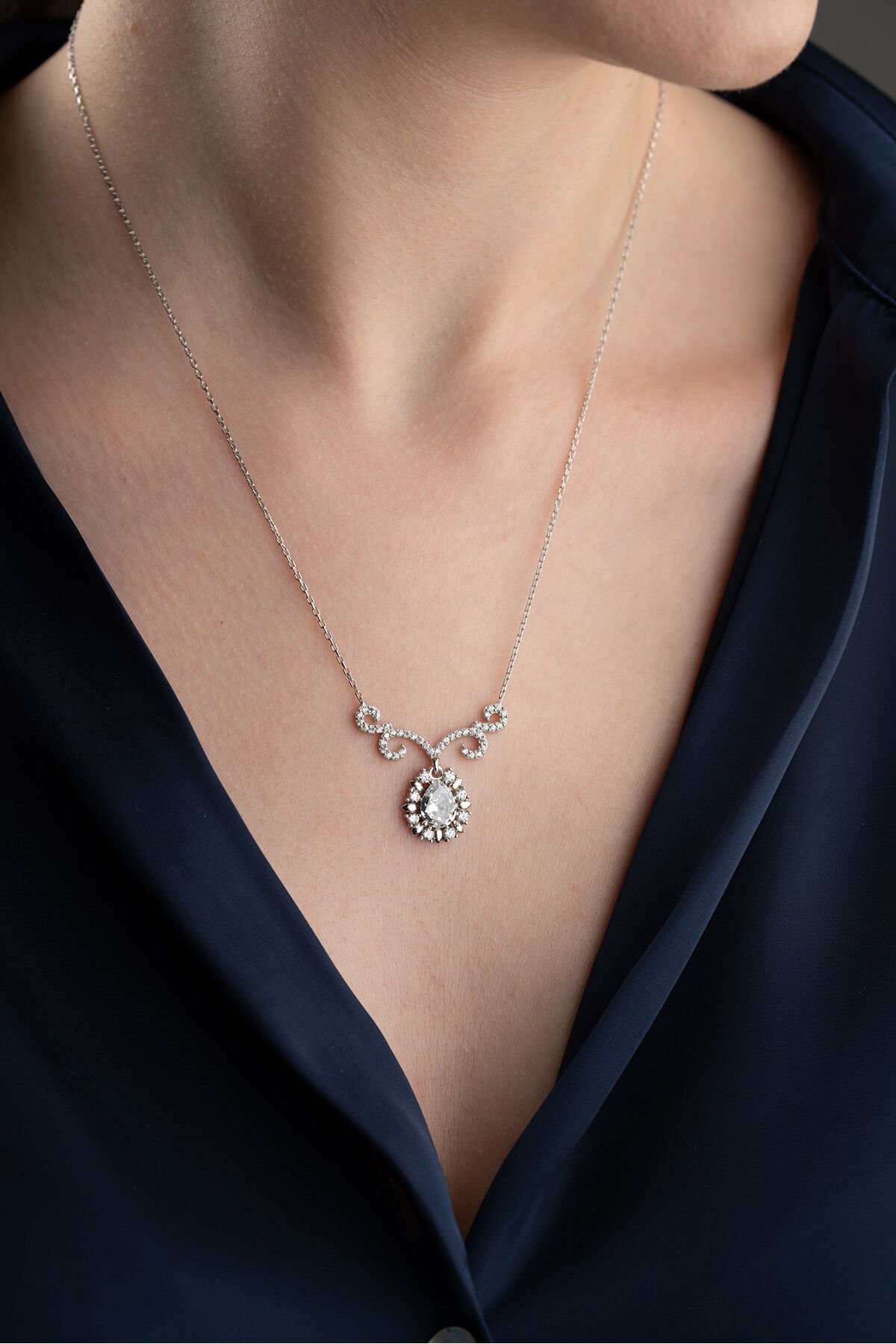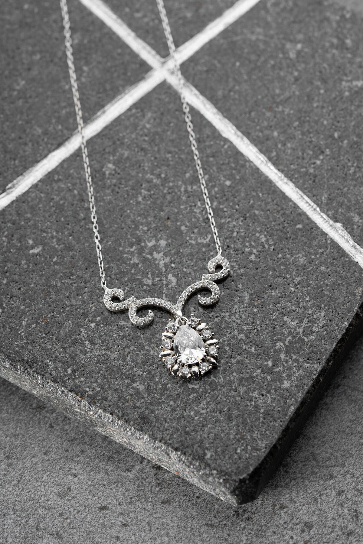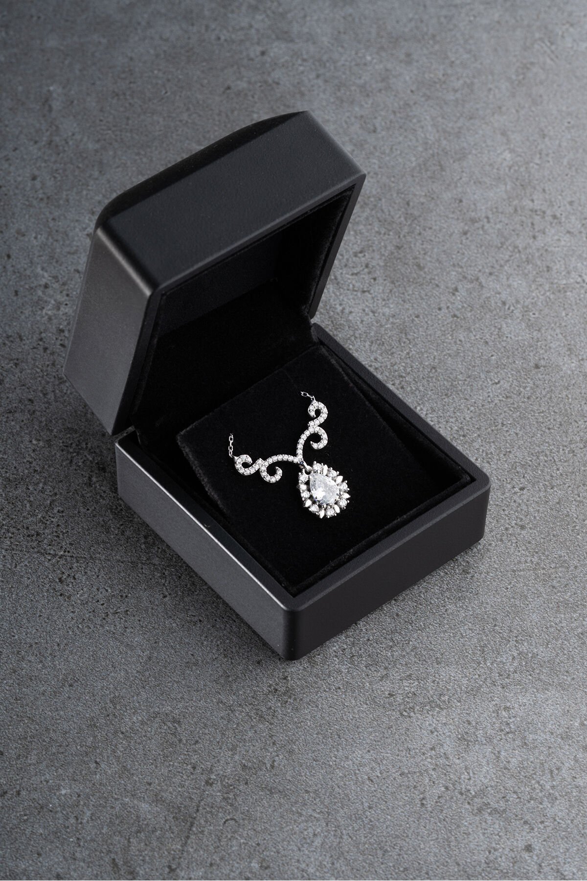 925 Ayar Gümüş Işıklı Kutuda Elmas Model Kolye