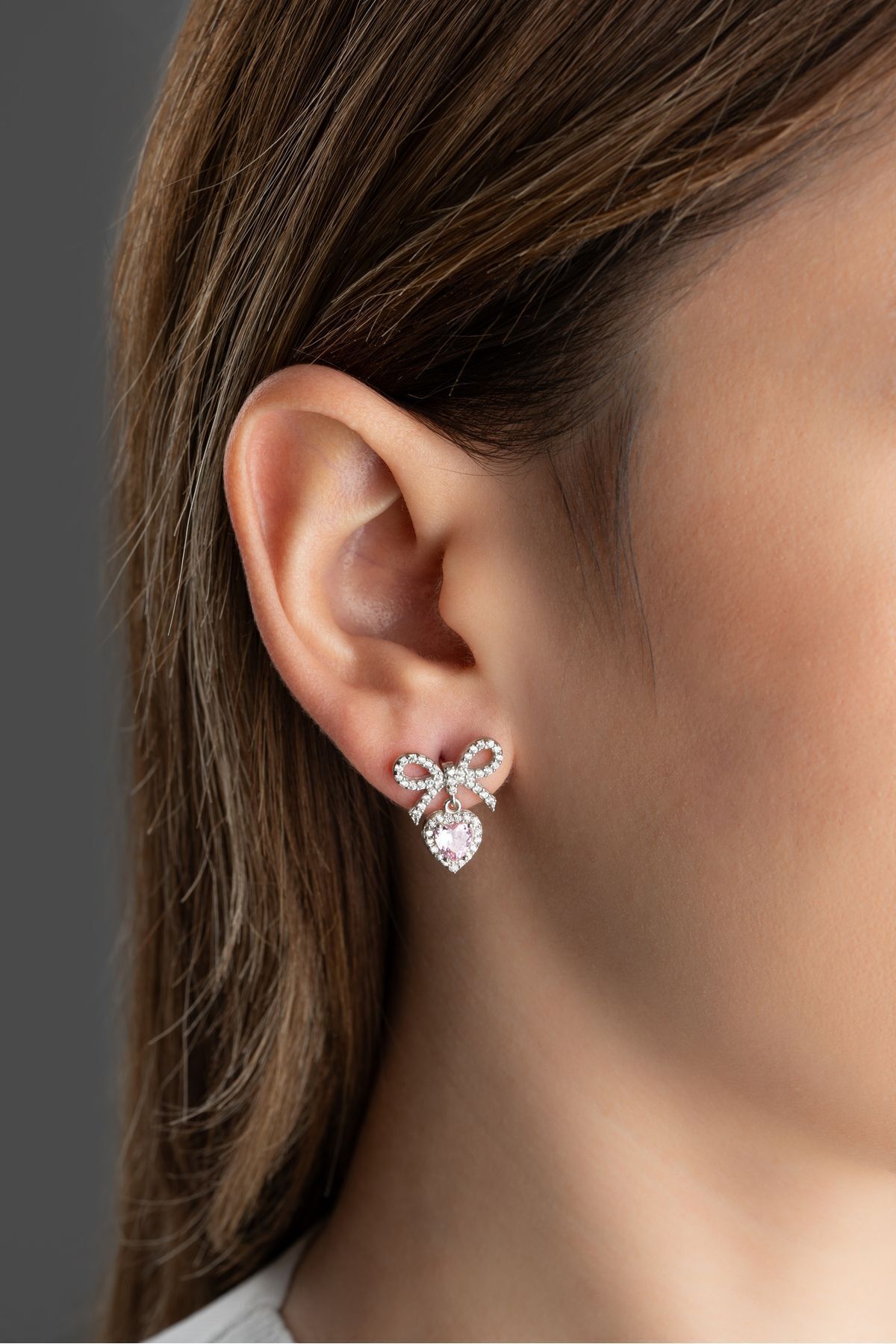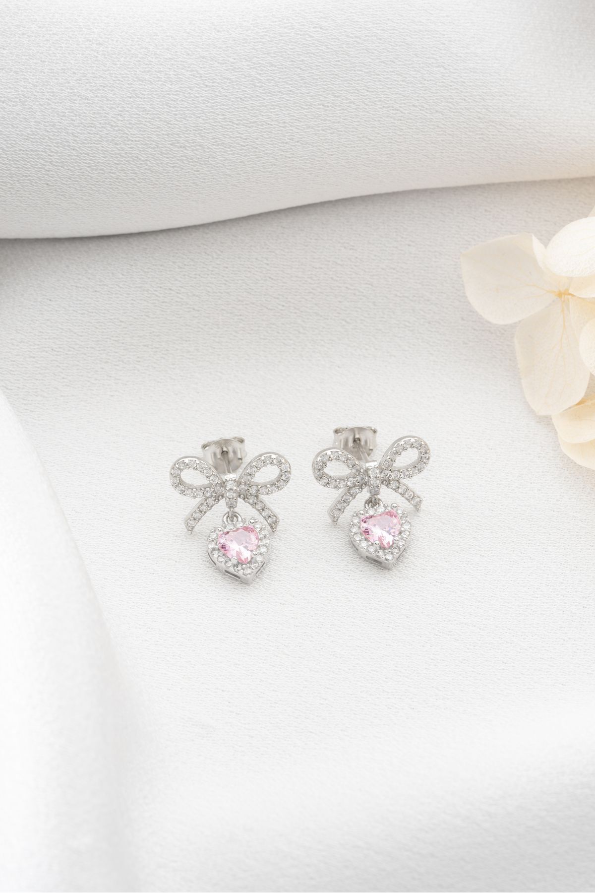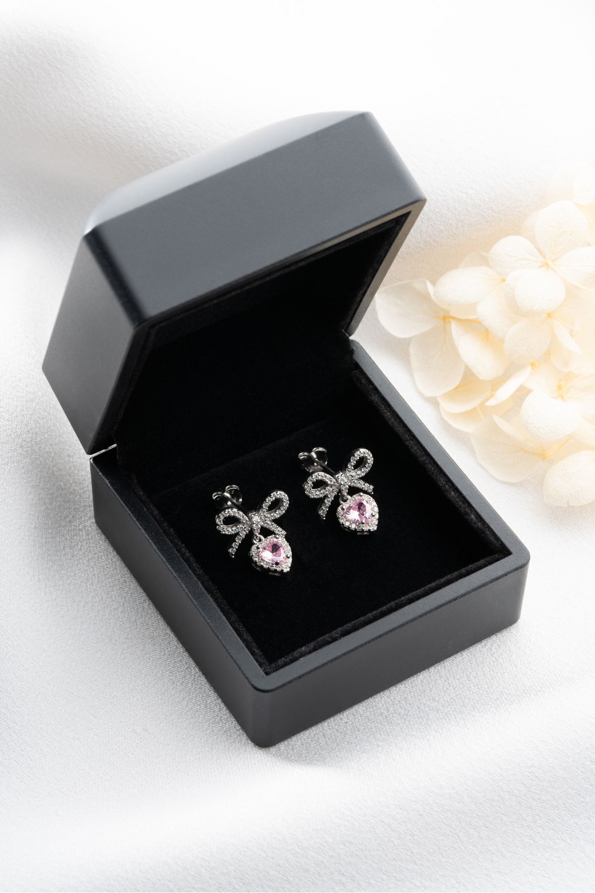 925 Ayar Gümüş Işıklı Kutuda Fiyonklu Kalp Küpe